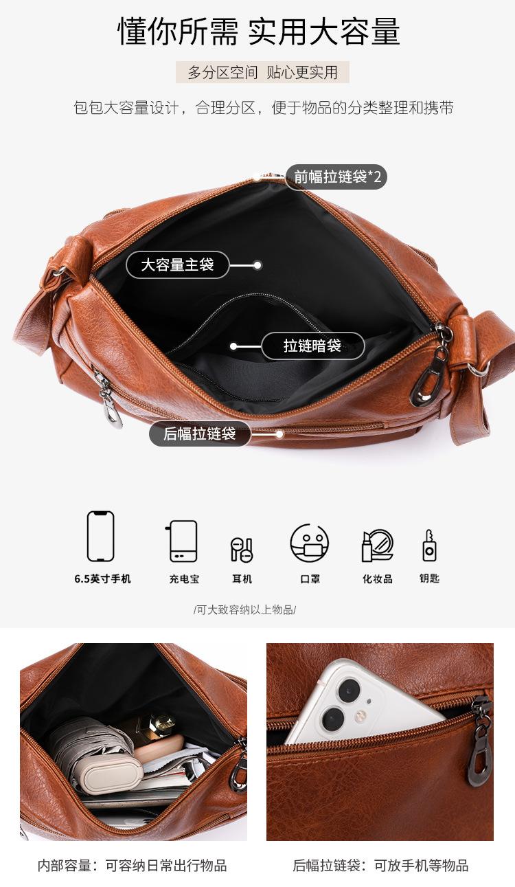 2023 Nova Textura de Couro Macio Moda Simples Bolsa Transversal Feminina Bolsa de Ombro Retrô da Moda Casual Grande Capacidade Bolsa de Mãe