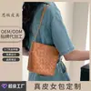 Bolsa Balde Pequena de Ombro em Couro de Vaca Camada Superior 2025 Novo Estilo de Férias de Verão Couro Genuíno Bolsa Tecida Artesanal Bolsa Transversal Feminina
