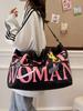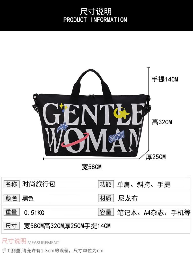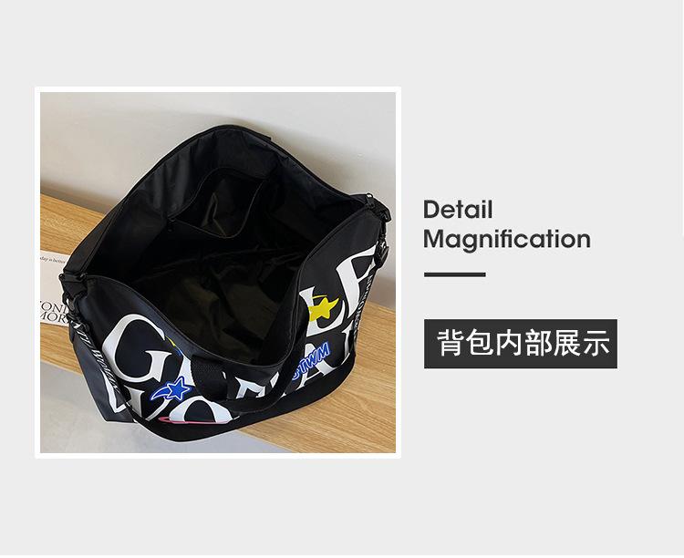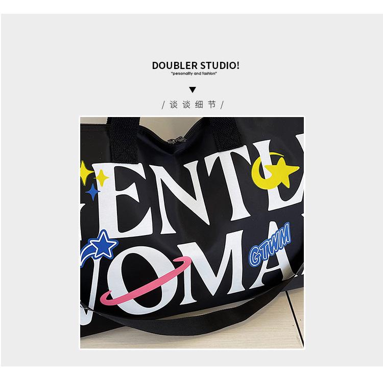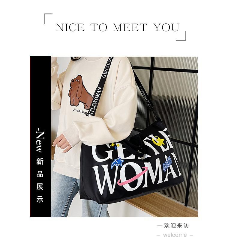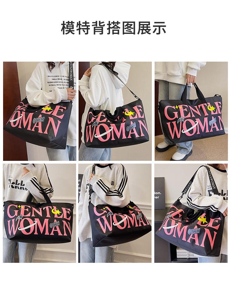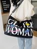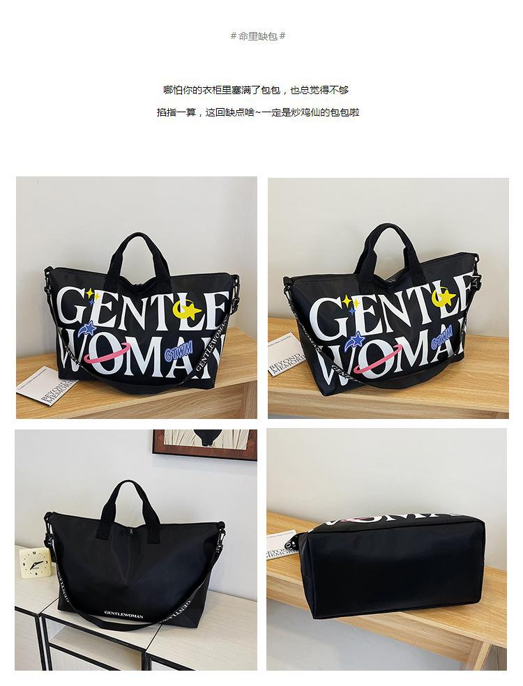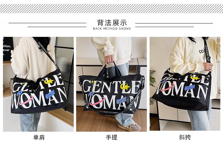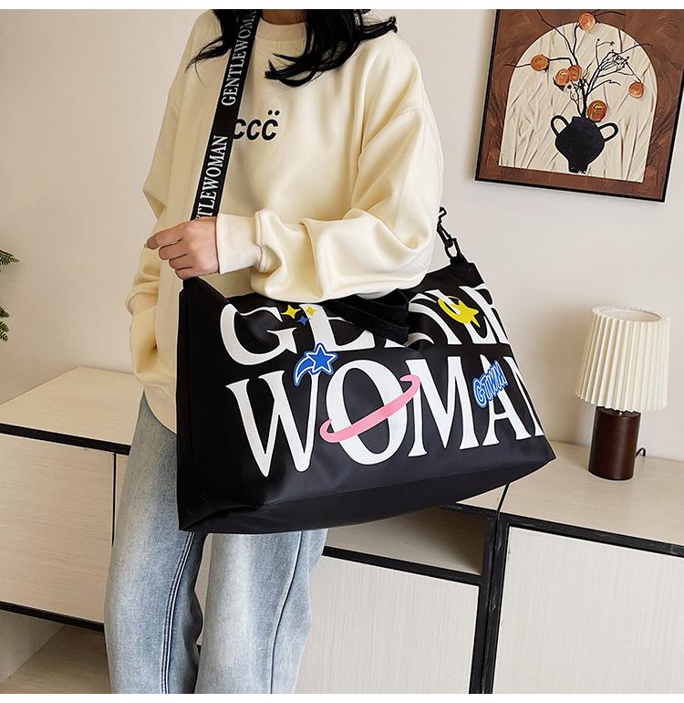 Bolsa de viagem fitness de grande capacidade para mulher gentil, nova bolsa de ombro impermeável com letras de tecido de nylon 2024