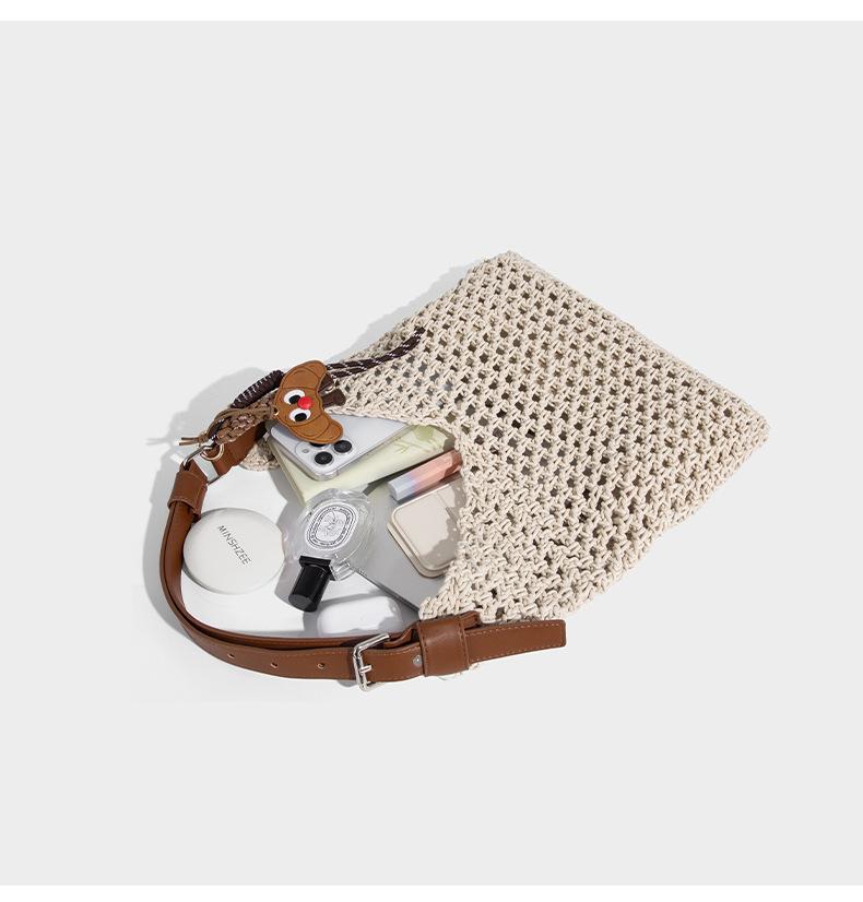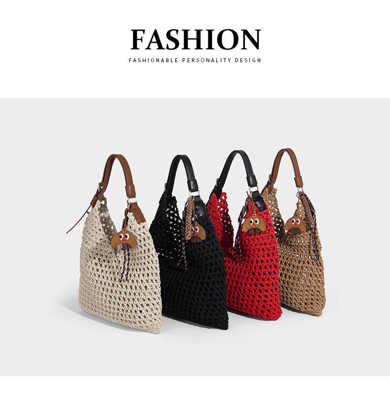 Bolsa de Palha Tecida à Mão Feminina Grande Capacidade 2025 Nova Verão Ombro Transversal Férias Beira-Mar Praia Bolsa Tote