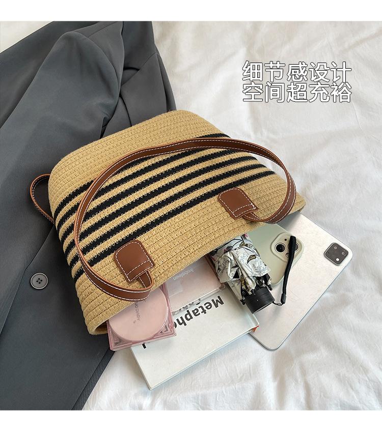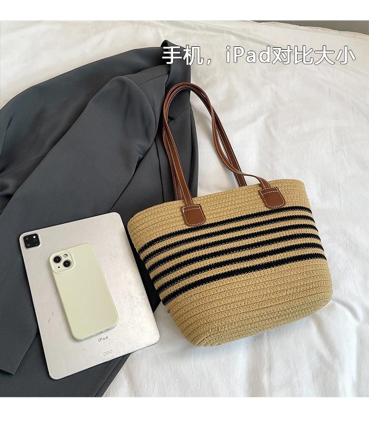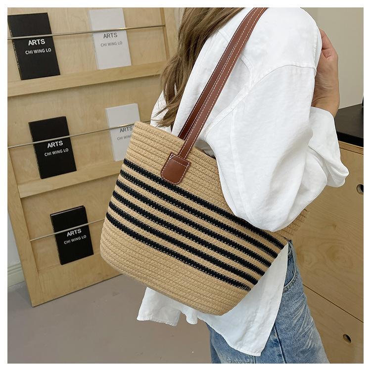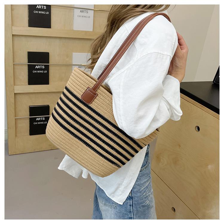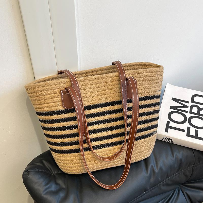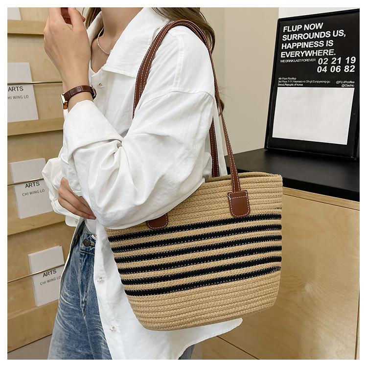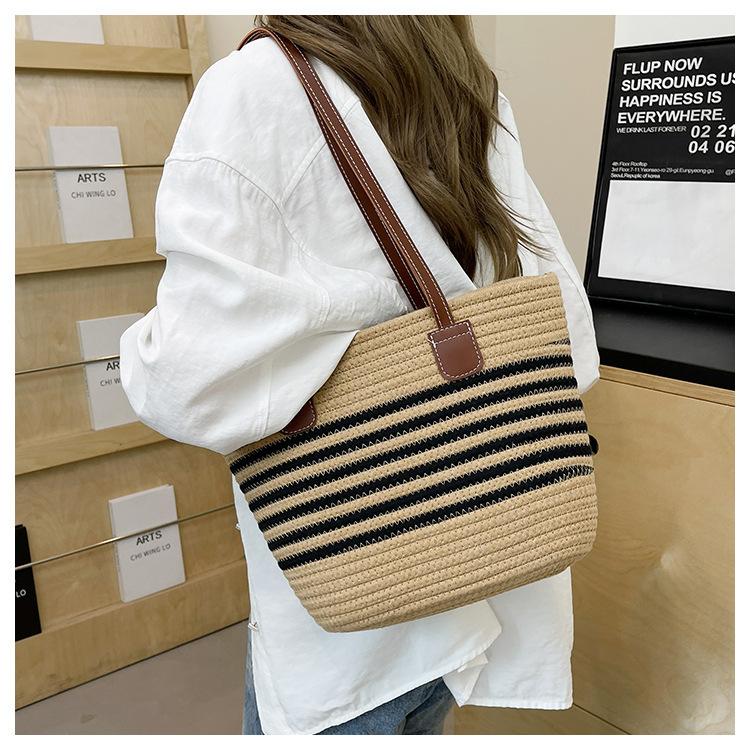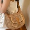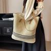 Bolsa de Palha Trançada Feminina Grande Capacidade 2024 Nova Verão Versátil Bolsa de Ombro Textura Trabalho Praia Beira-Mar