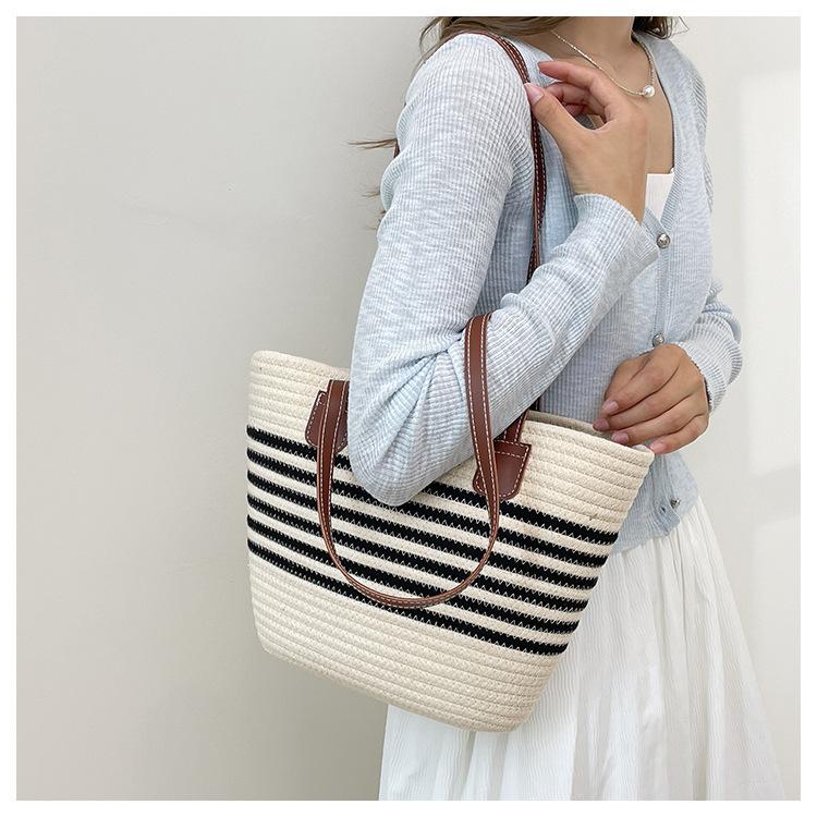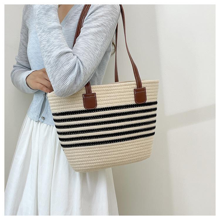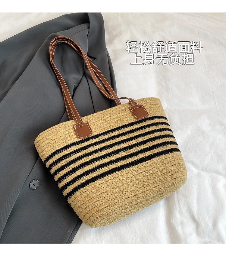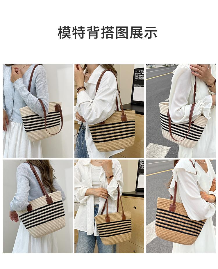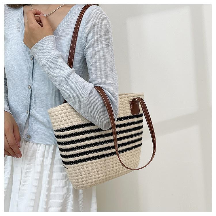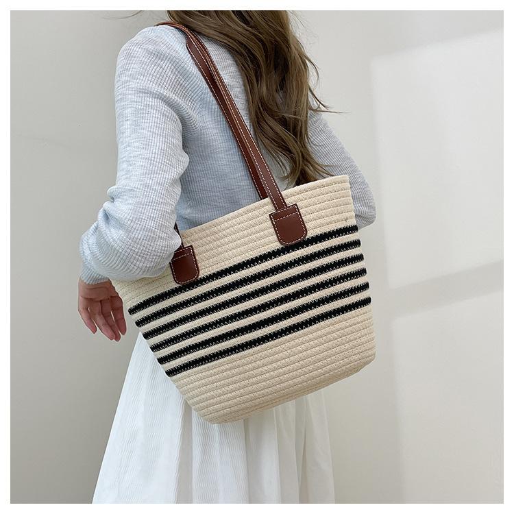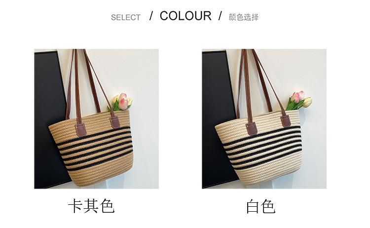 Bolsa de Palha Trançada Feminina Grande Capacidade 2024 Nova Verão Versátil Bolsa de Ombro Textura Trabalho Praia Beira-Mar
