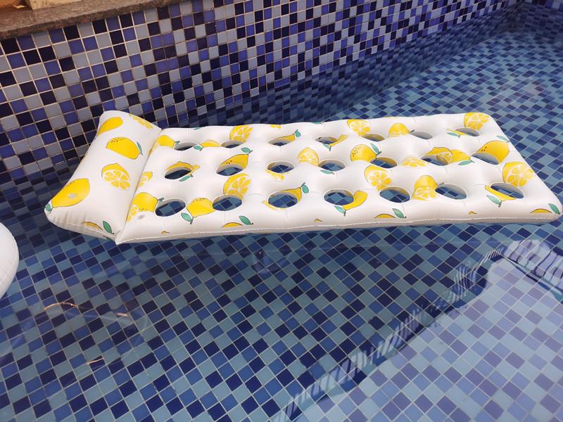 Boia Inflável Limão com Furo PVC Água Natação Lazer Cama Flutuante Reclinável Festa Piscina Externa Boia Telada