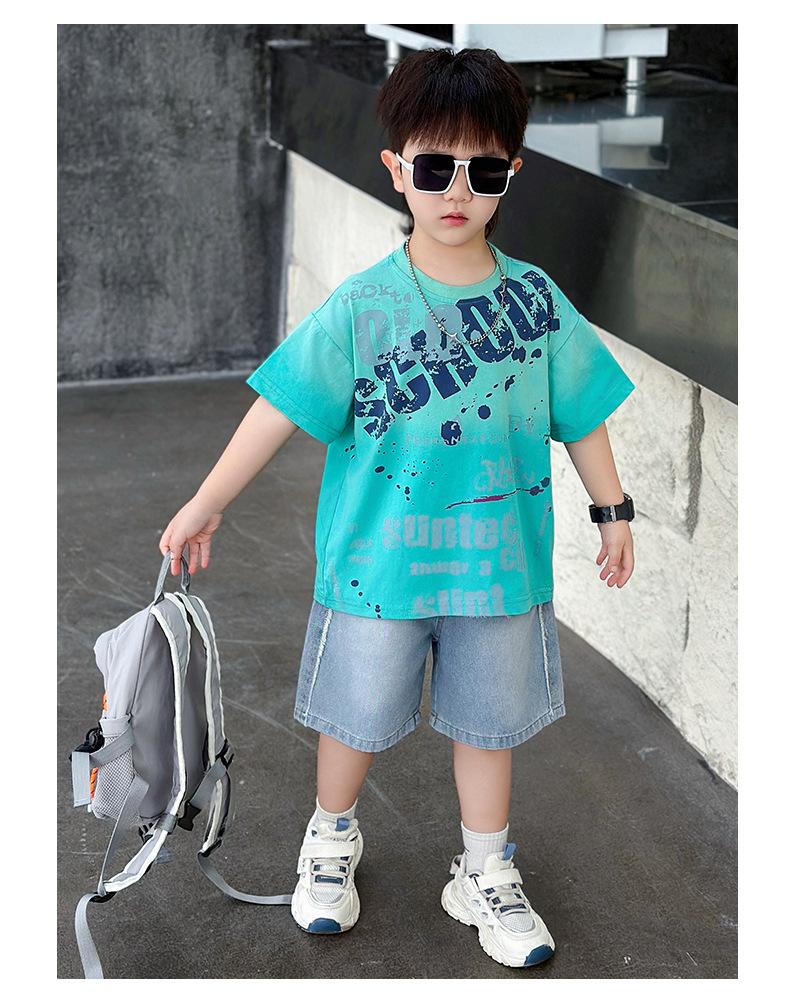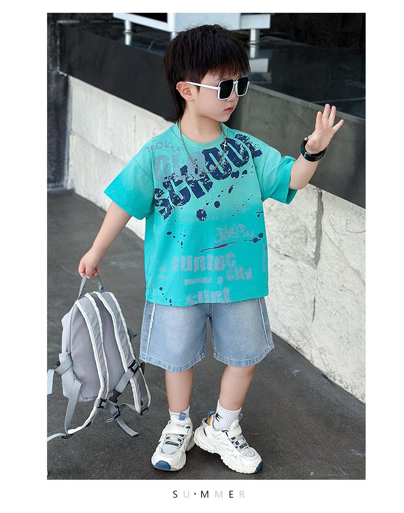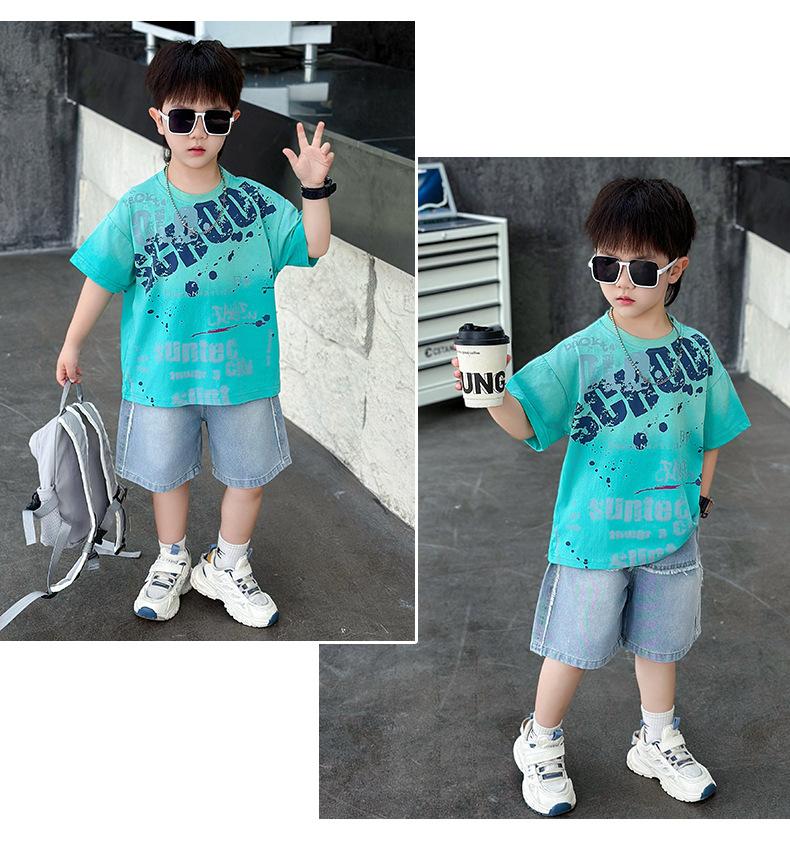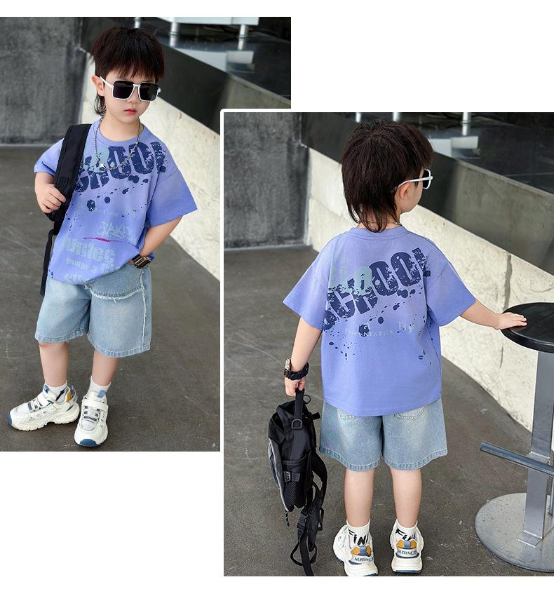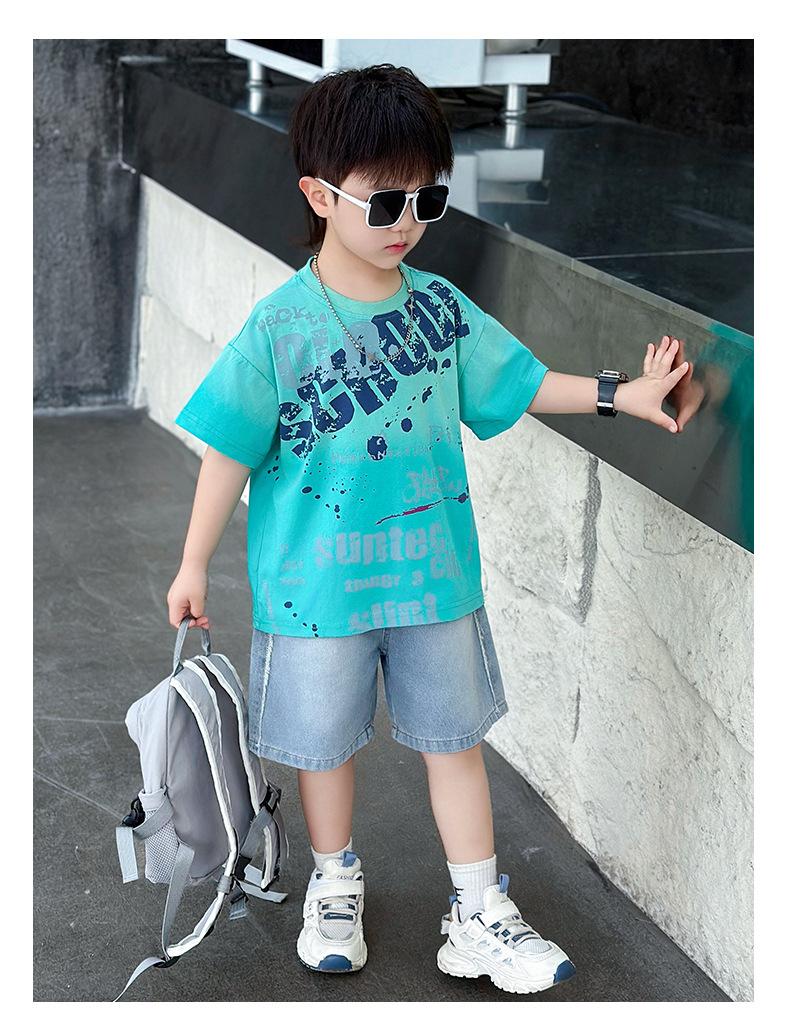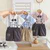 Terno de Verão para Meninos 2025 Novo Bonito Infantil Bebê Manga Curta Moda Casual Roupas Roupas de Verão para Meninos Roupas Infantis