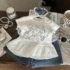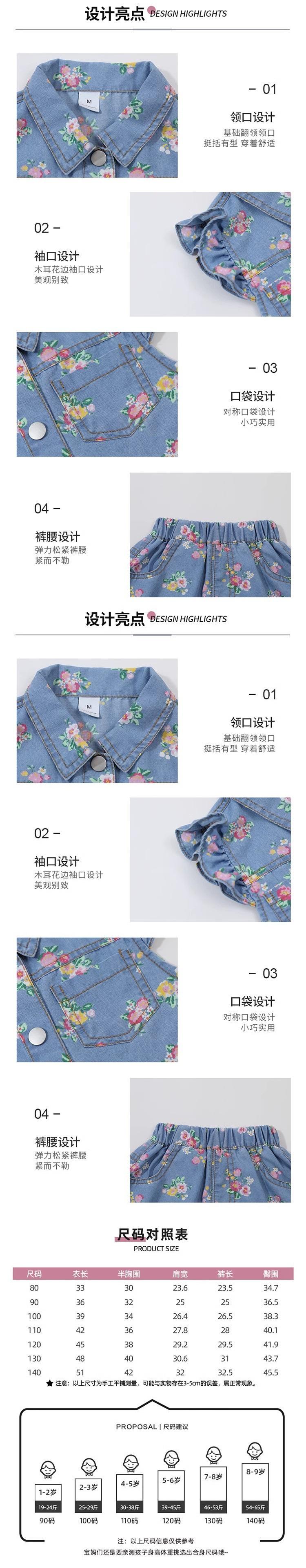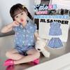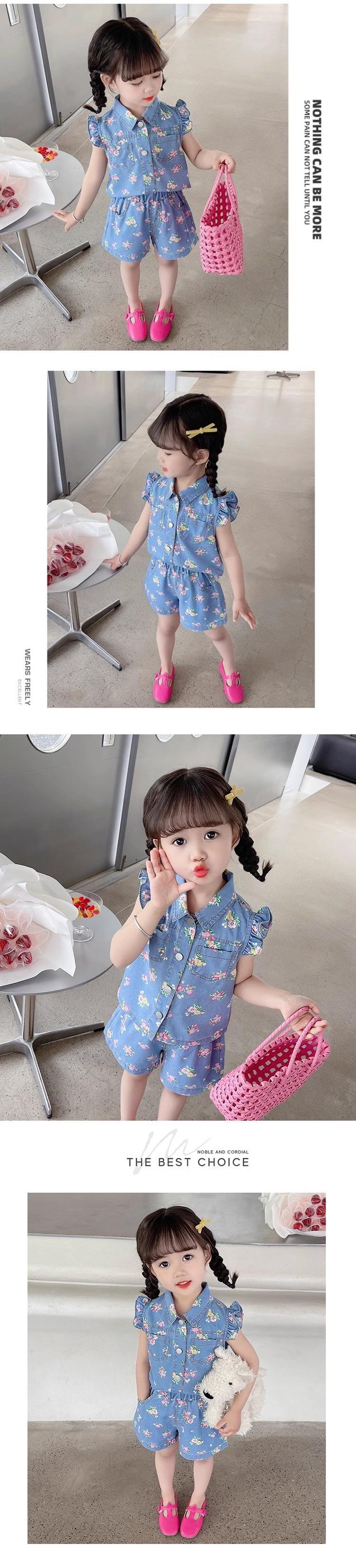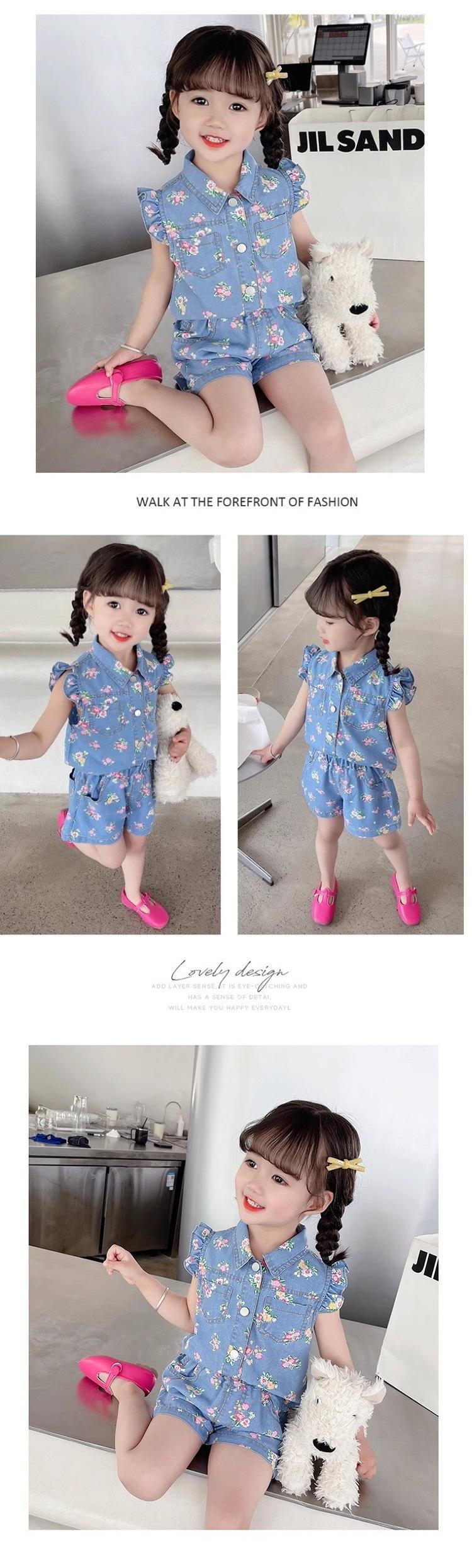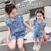 Conjunto Infantil 2024 Roupas de Verão Novas Estilo de Verão Infantil Manga Curta Bebê Menina Fino Floral Jeans Conjunto de Duas Peças