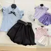 2025 Verão Meninas Nova Roupa Infantil Menininha Moda Coelho Paetês Manga Curta Calças Laço Conjunto de Duas Peças