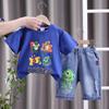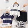 Terno de Verão de Manga Curta para Meninos 2025 Novo Vestido de Verão Infantil Estilo Ocidental Bebê Fino Conjunto Esportivo de Duas Peças