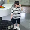 Conjunto de Verão para Meninos Camiseta Listrada de Manga Curta Duas Peças 2026 Novo Estilo de Verão Roupas Infantis de Manga Meia