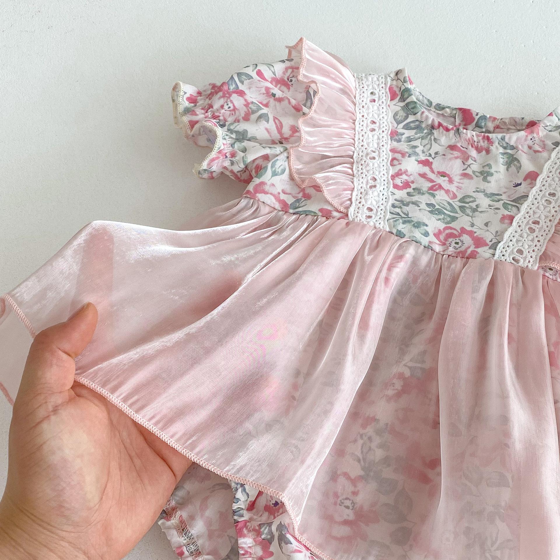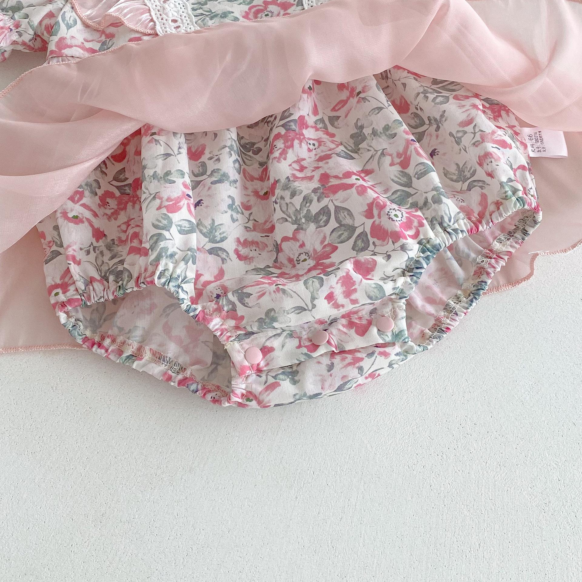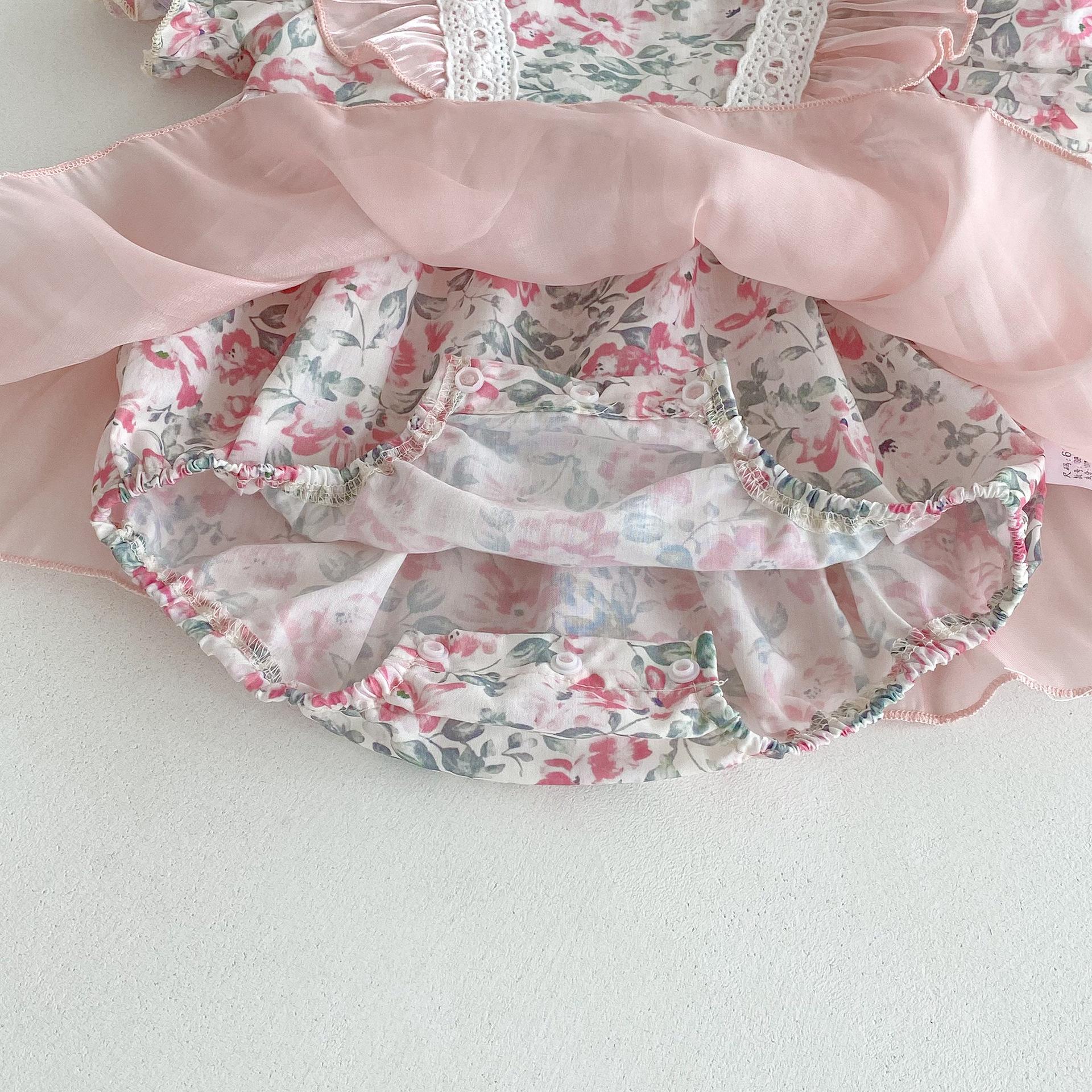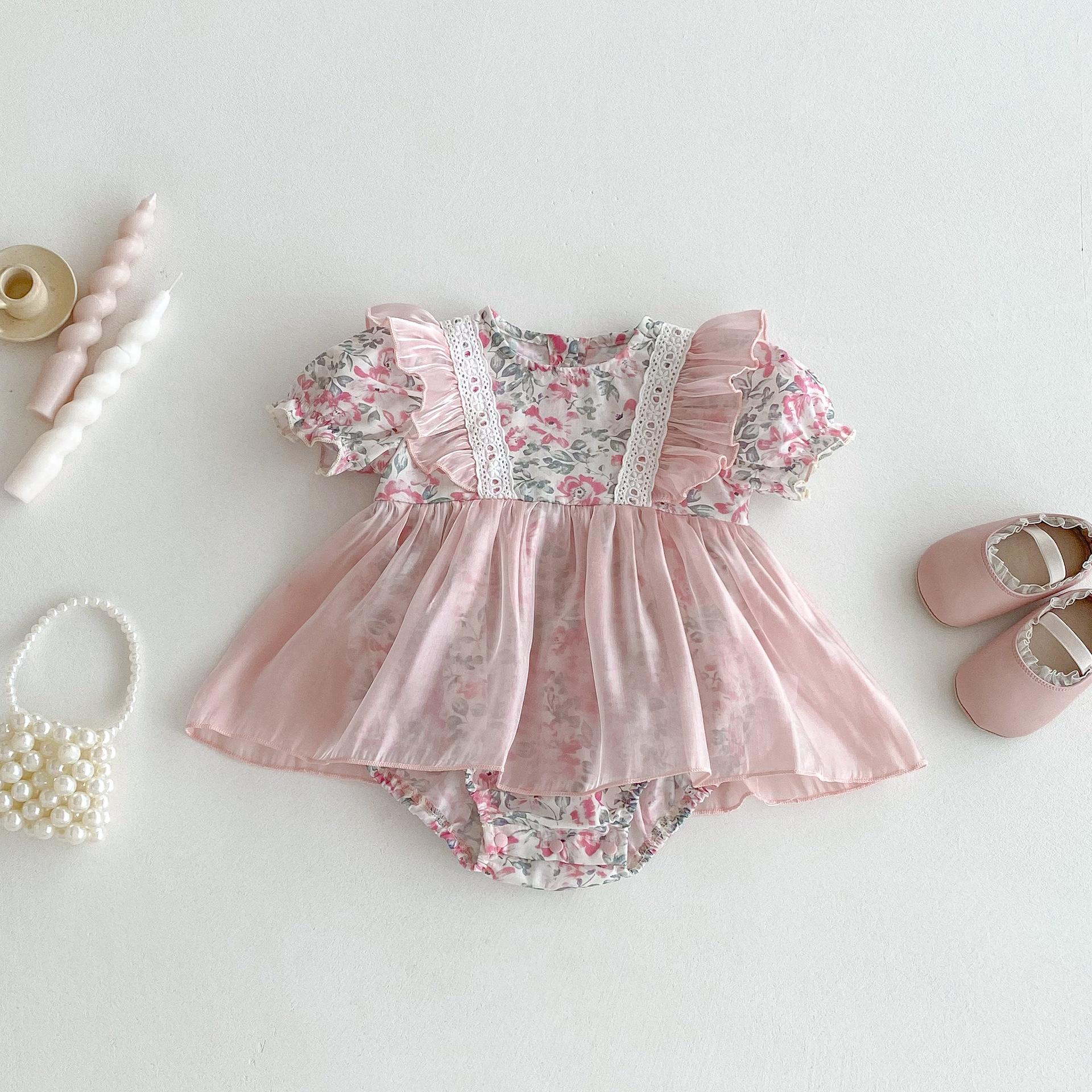 2025 Bebê Floral Bolsa Saia Verão Bebê Menina Macacão de Malha Super Fofo Vestido de Um Ano Roupa de Rastejar de Verão