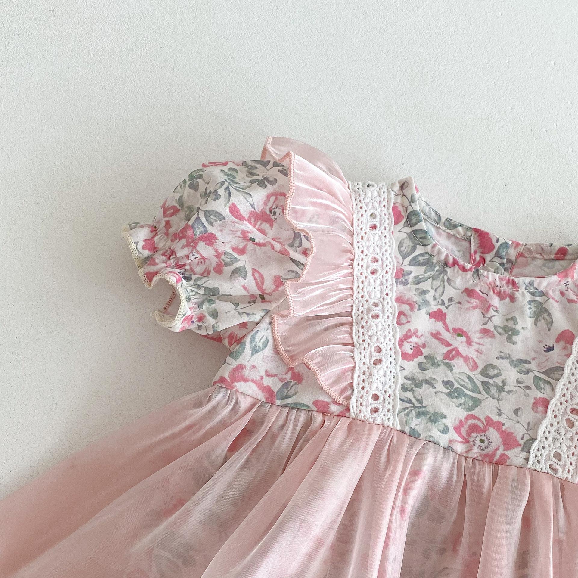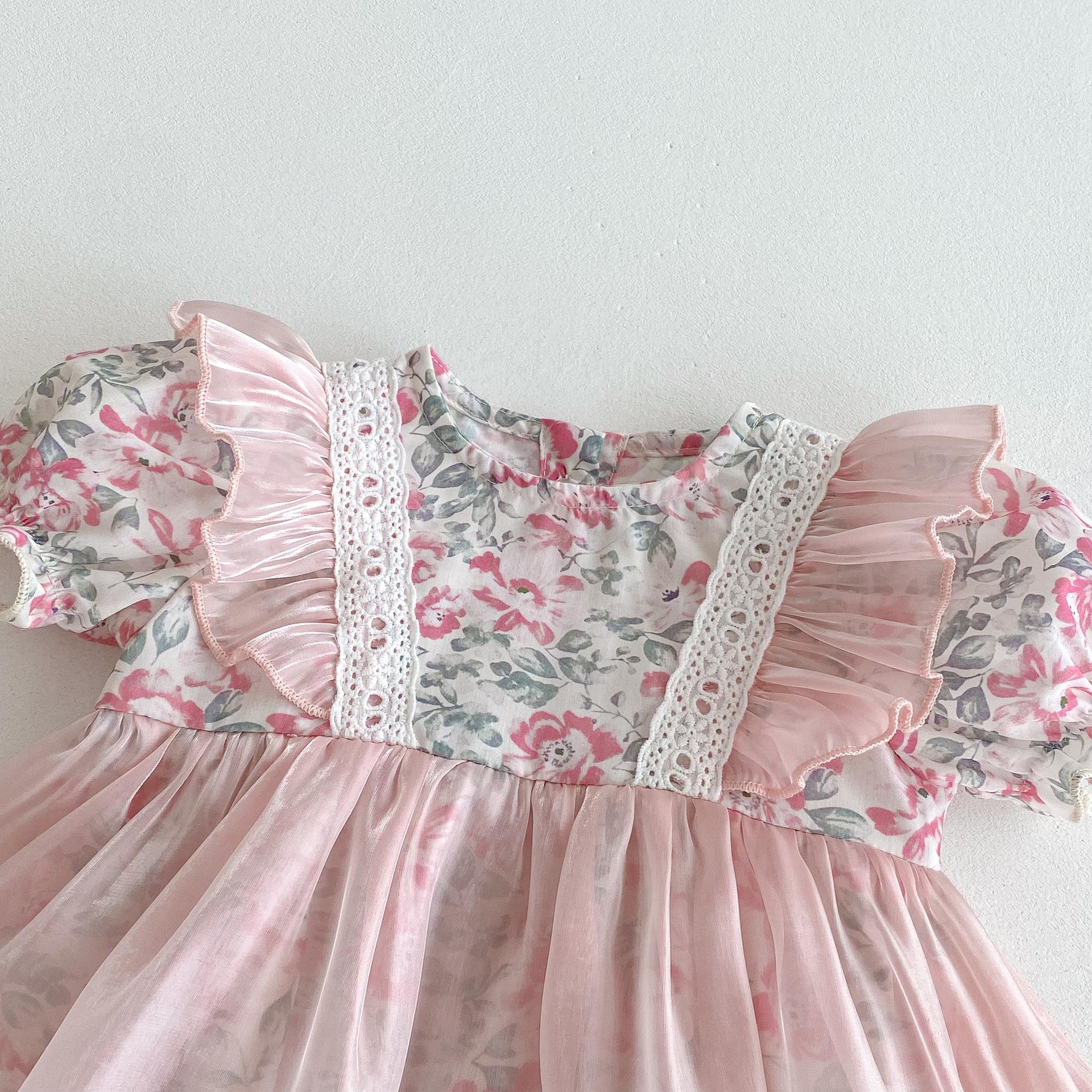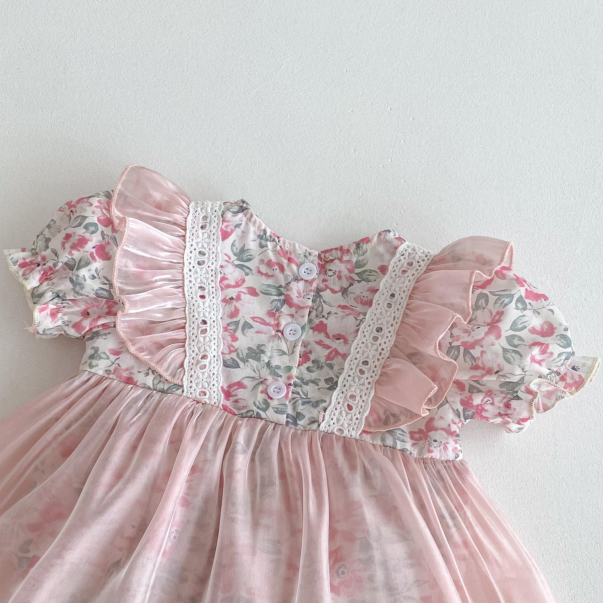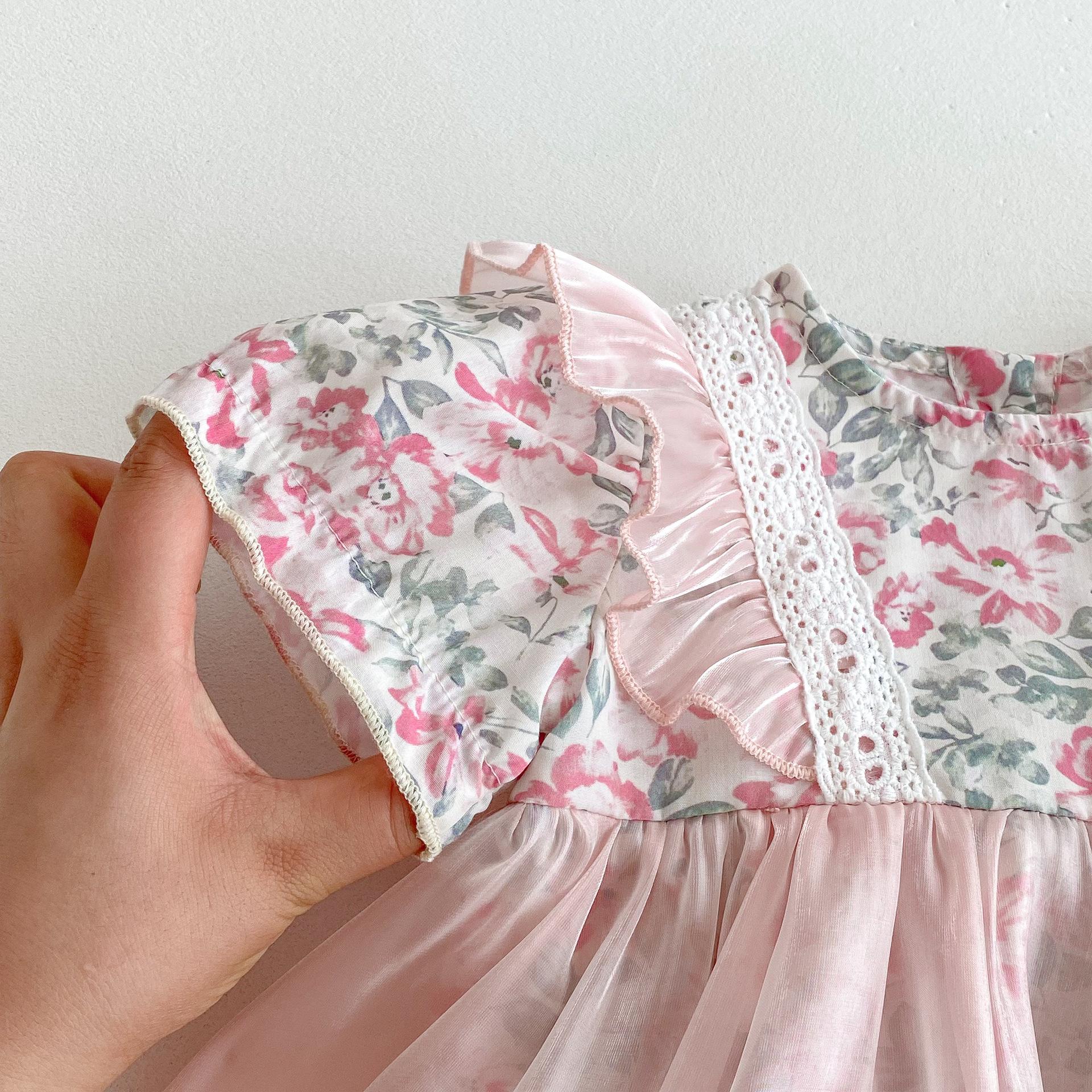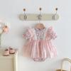 2025 Bebê Floral Bolsa Saia Verão Bebê Menina Macacão de Malha Super Fofo Vestido de Um Ano Roupa de Rastejar de Verão