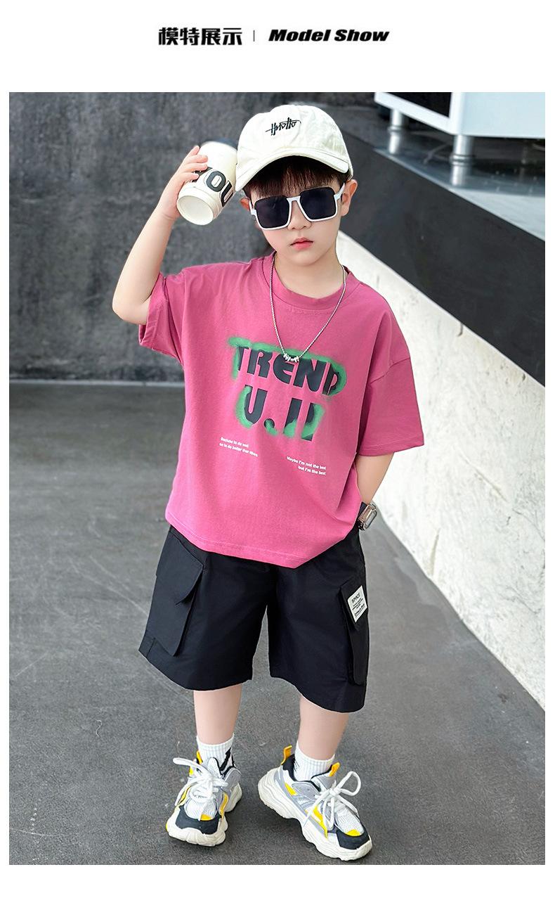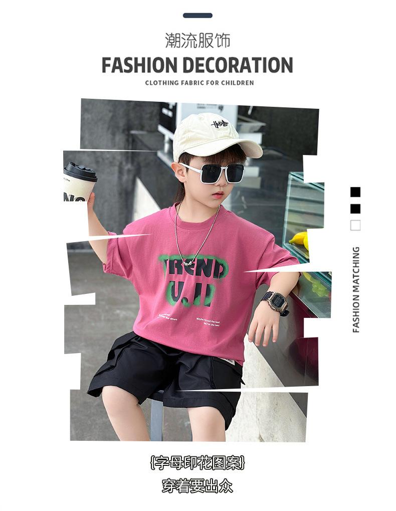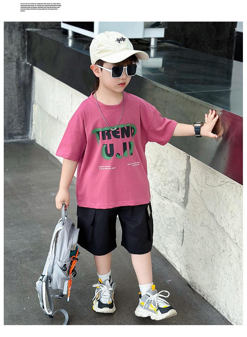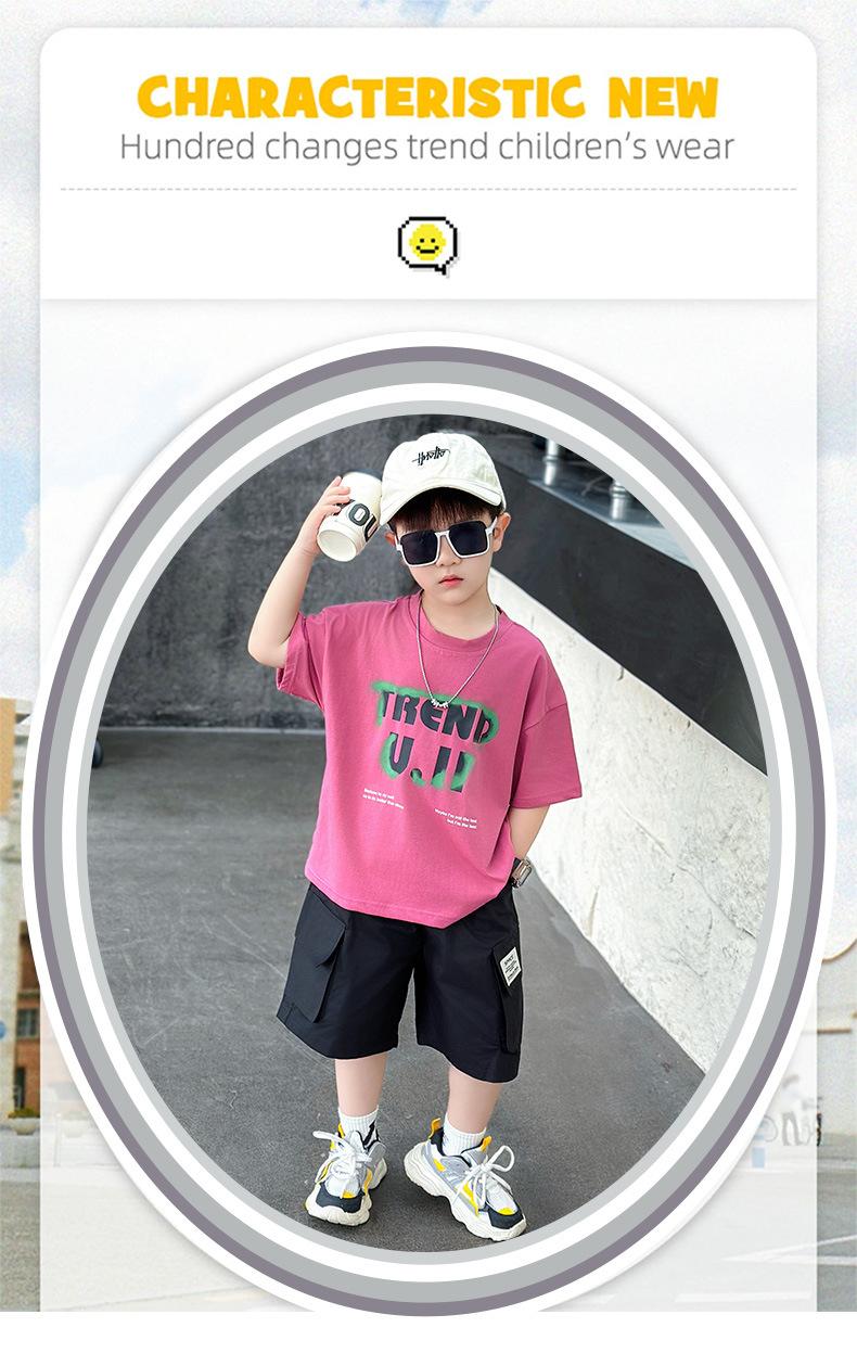 Terno de Verão para Meninos 2025 Novo Estilo Roupas Esportivas de Verão para Crianças de Pequeno e Médio Porte Meninos Verão Manga Curta Bonito e Moderno