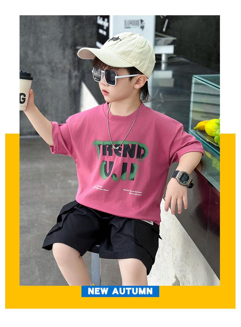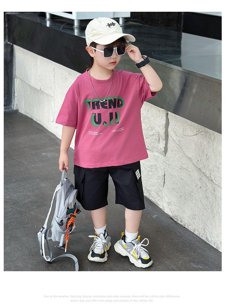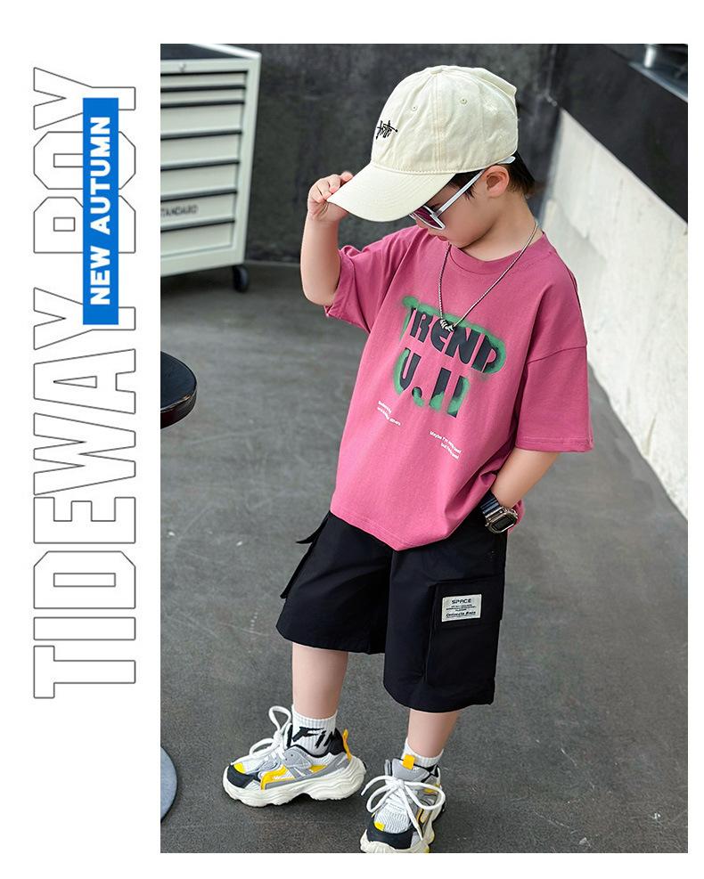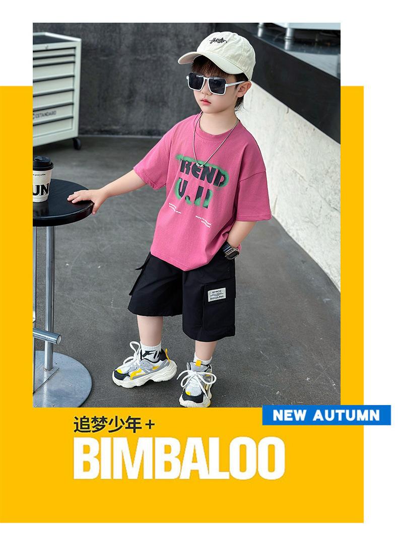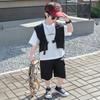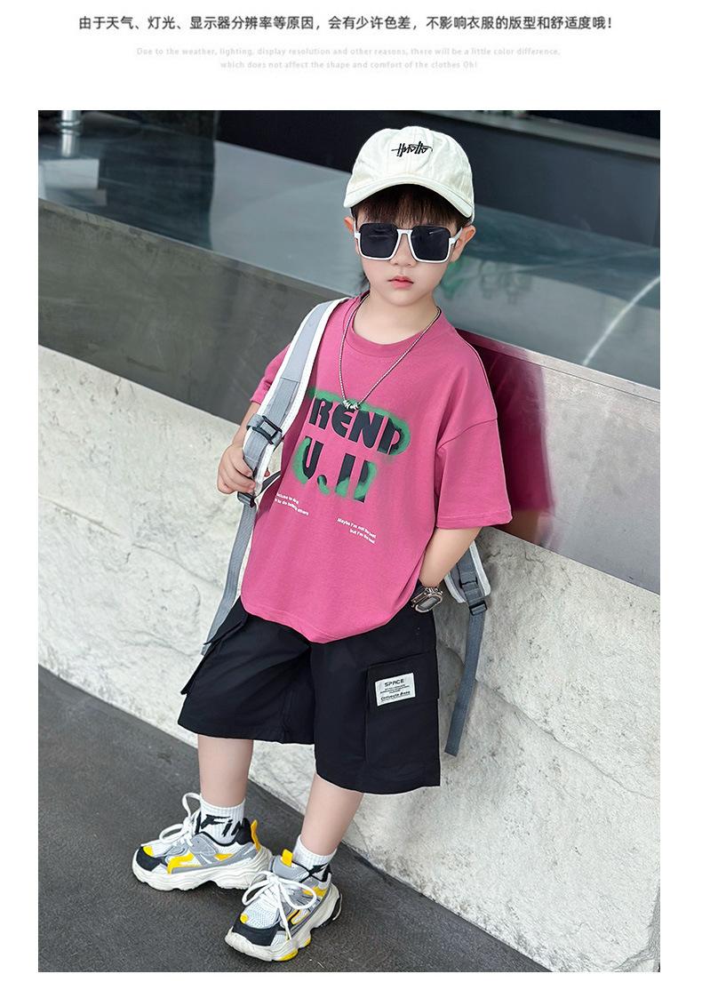 Terno de Verão para Meninos 2025 Novo Estilo Roupas Esportivas de Verão para Crianças de Pequeno e Médio Porte Meninos Verão Manga Curta Bonito e Moderno