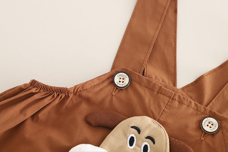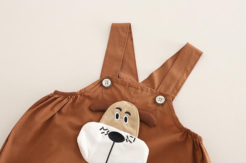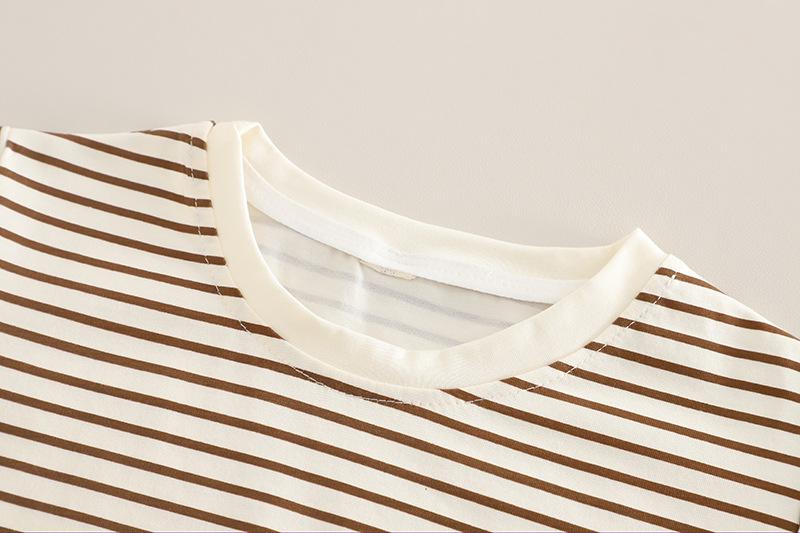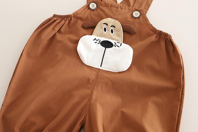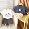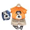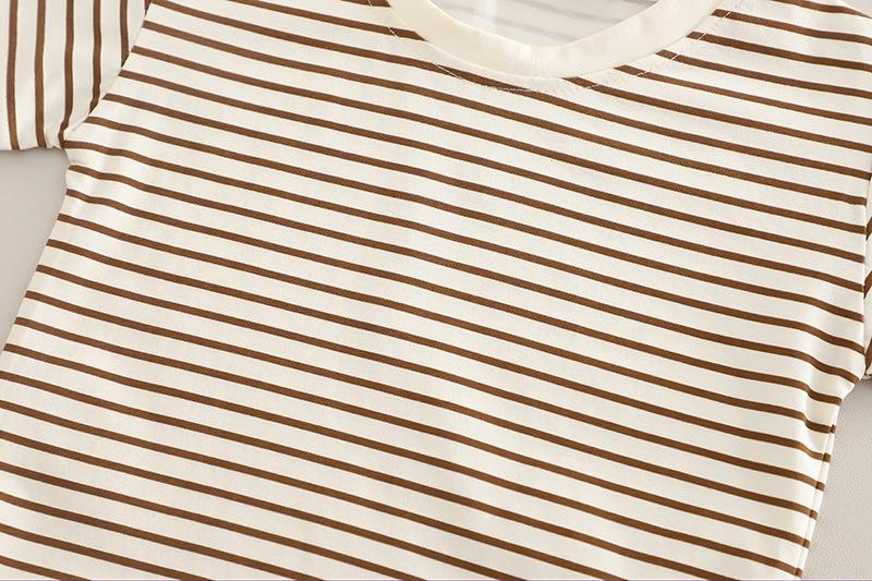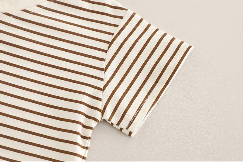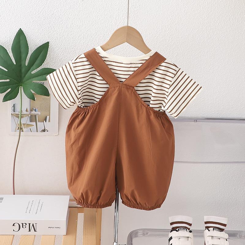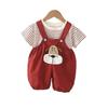 Desenho animado infantil verão listrado cachorro suspensórios manga curta terno 2025 novo meninos listrado duas peças roupa de verão