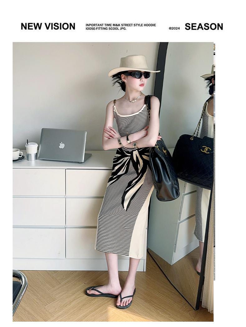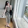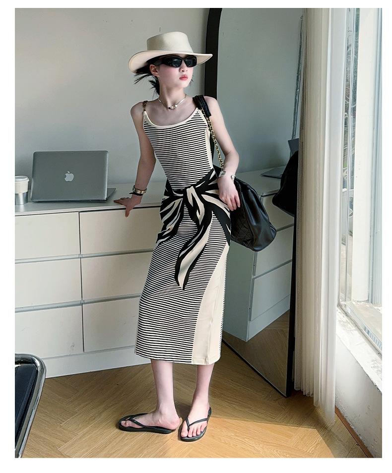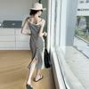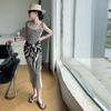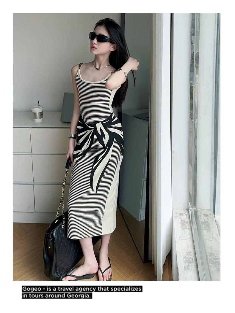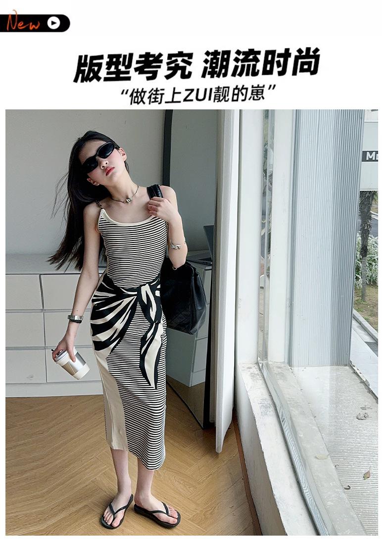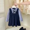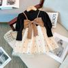 Vestido de Verão para Meninas 2025 Nova Moda Meninas Estilo Coreano Estampado com Laço Vestido Longo Infantil Médio e Grande