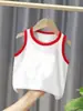 Verão Infantil Gola Redonda Sem Mangas Versátil Regatas Bebê Cor Pura Camisetas Gola Redonda para Meninos e Meninas Vestir em Casa e Fora