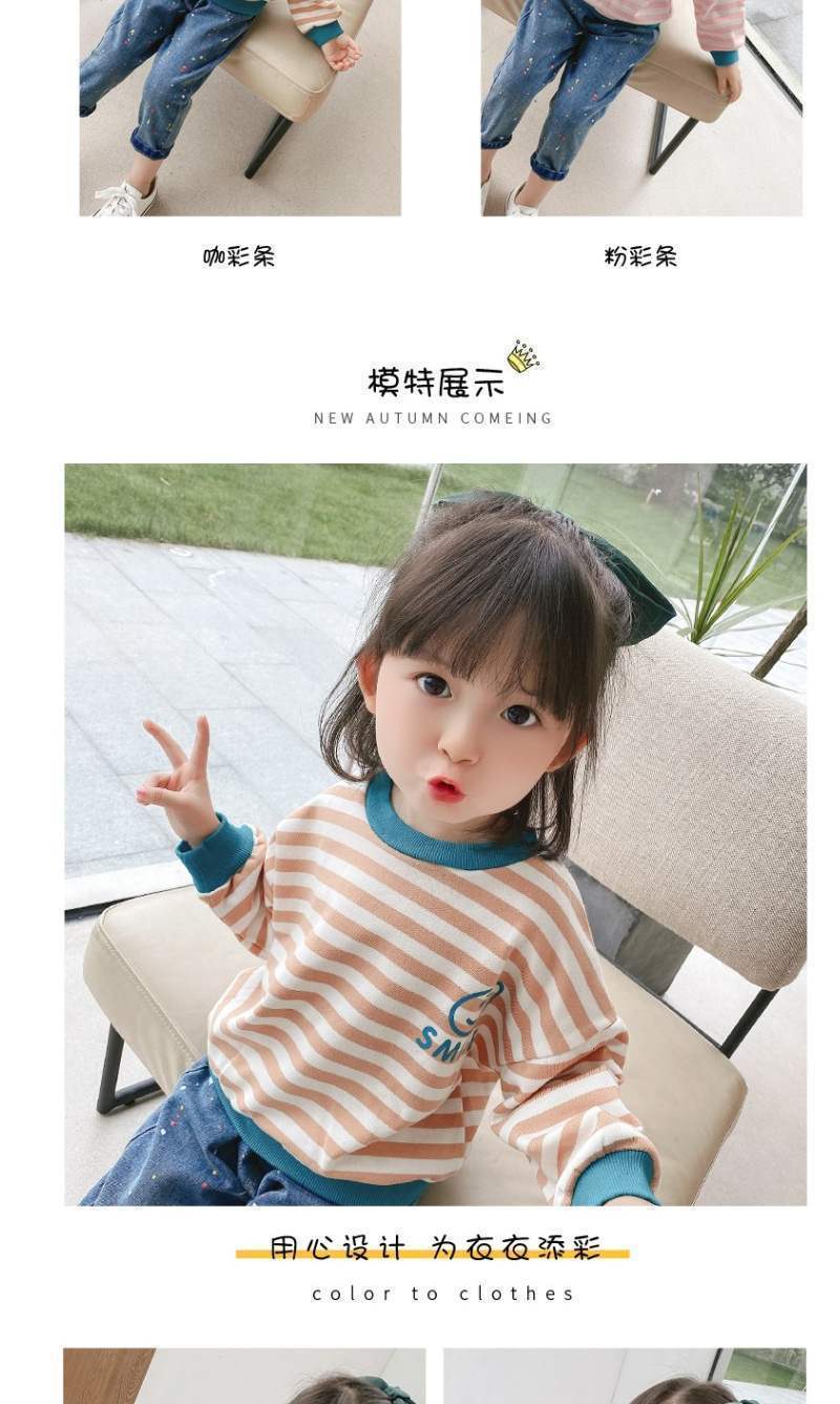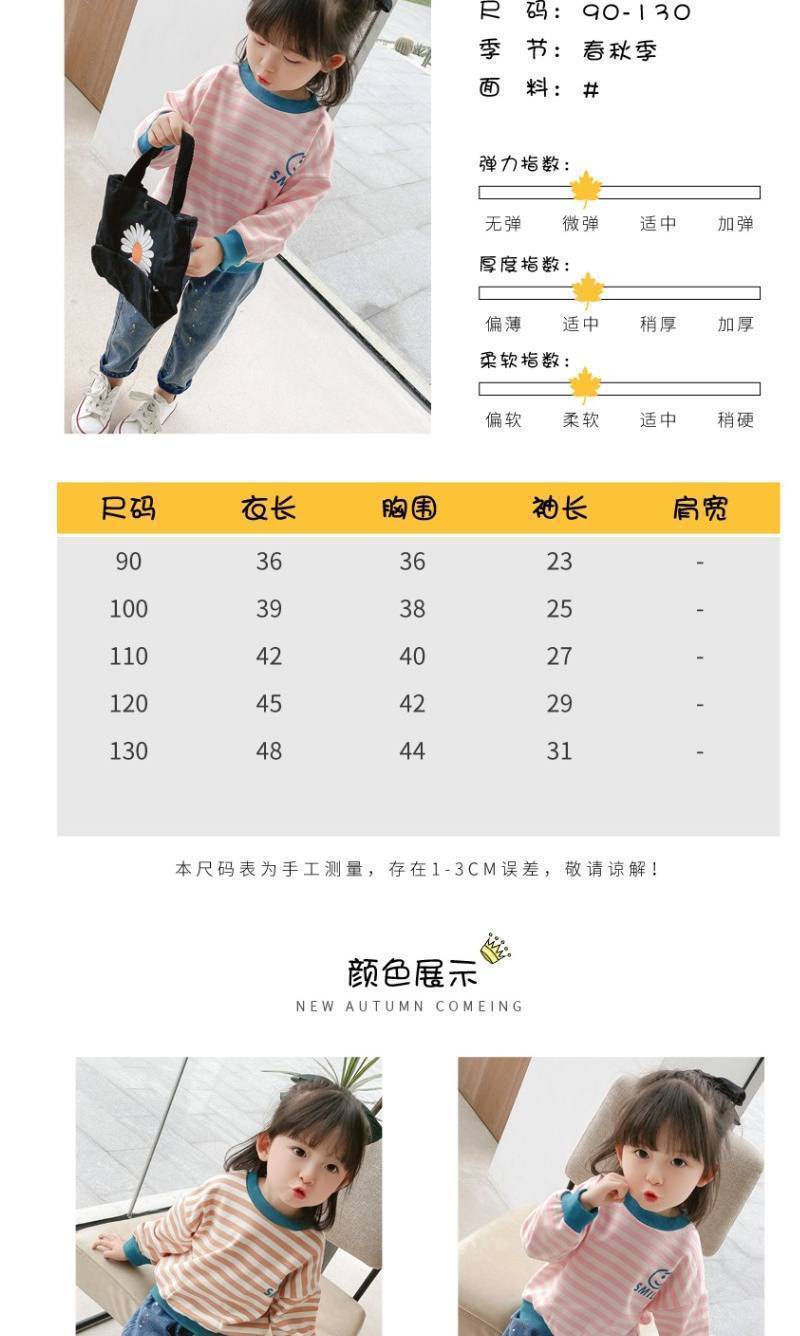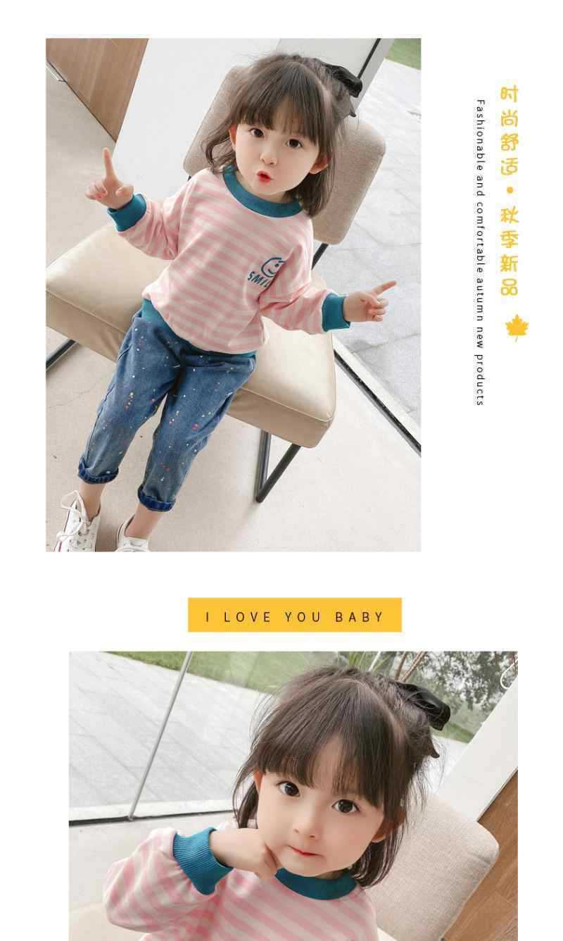 Compre Camiseta de manga comprida para meninas, tops infantis, Primavera e Outono, Novo, Camiseta básica, primavera e outono, fina, listrada, suéter para bebês meninas no atacado no Joom.pro