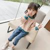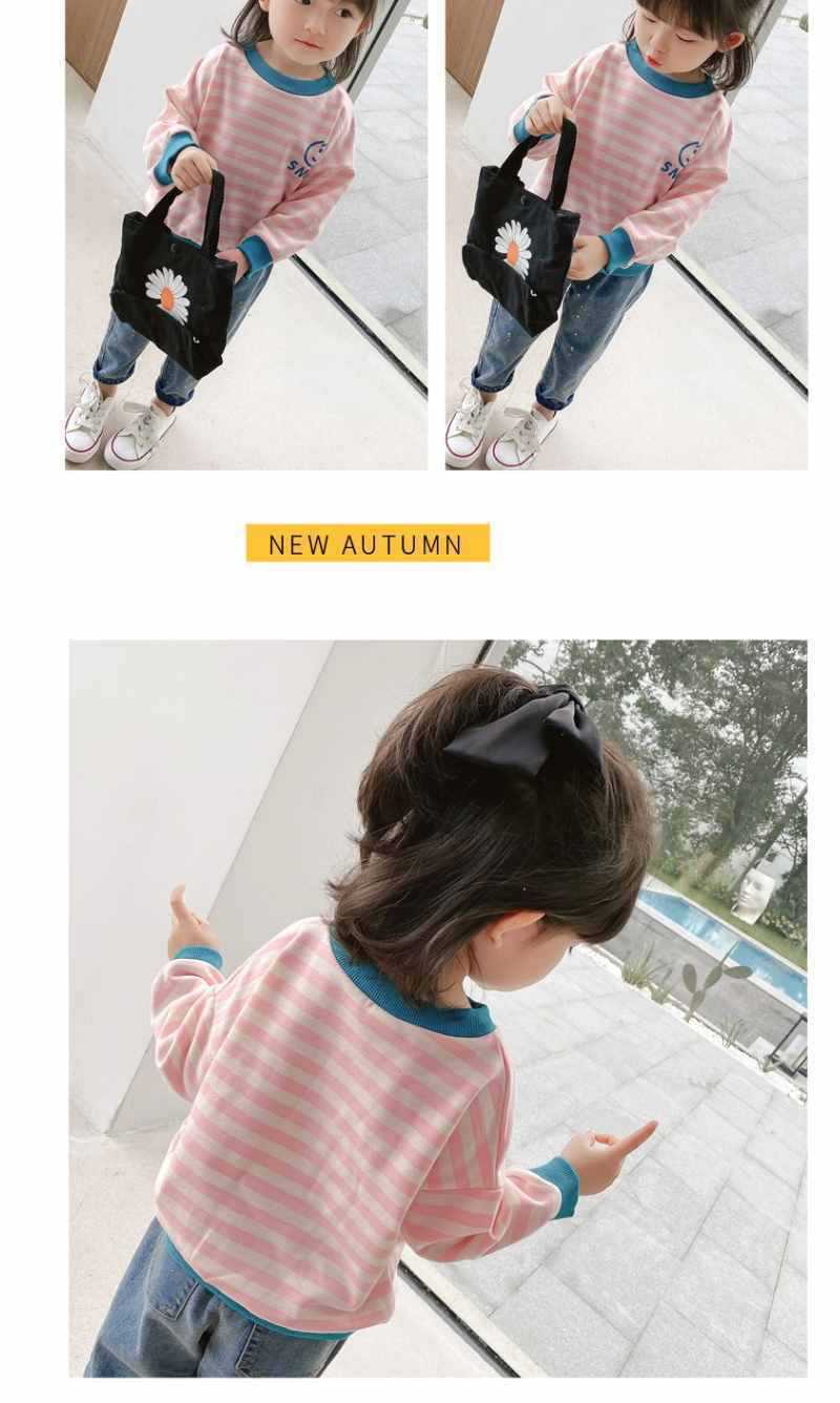Camiseta de manga comprida para meninas, tops infantis, Primavera e Outono, Novo, Camiseta básica, primavera e outono, fina, listrada, suéter para bebês meninas