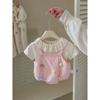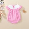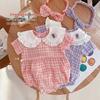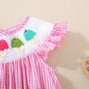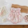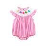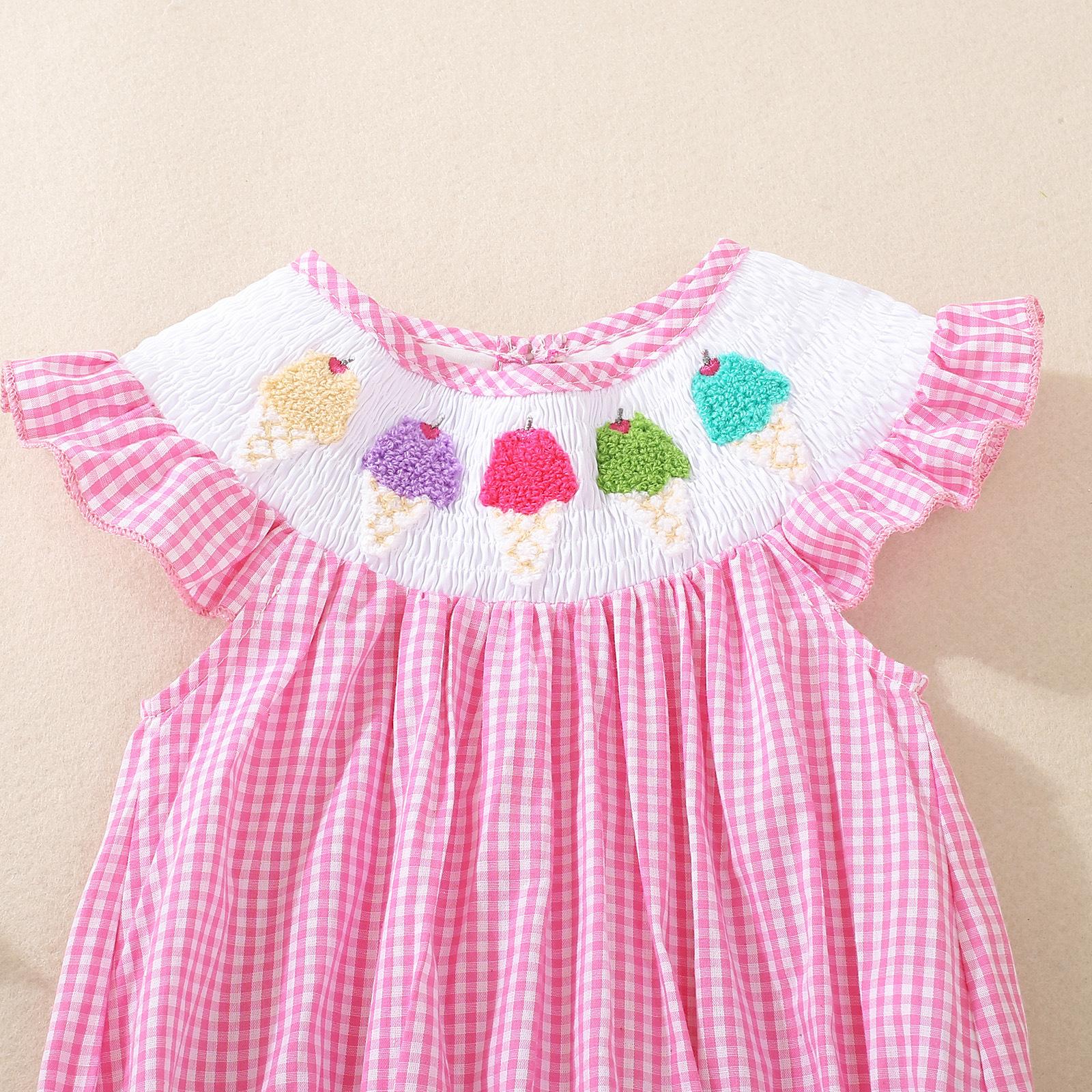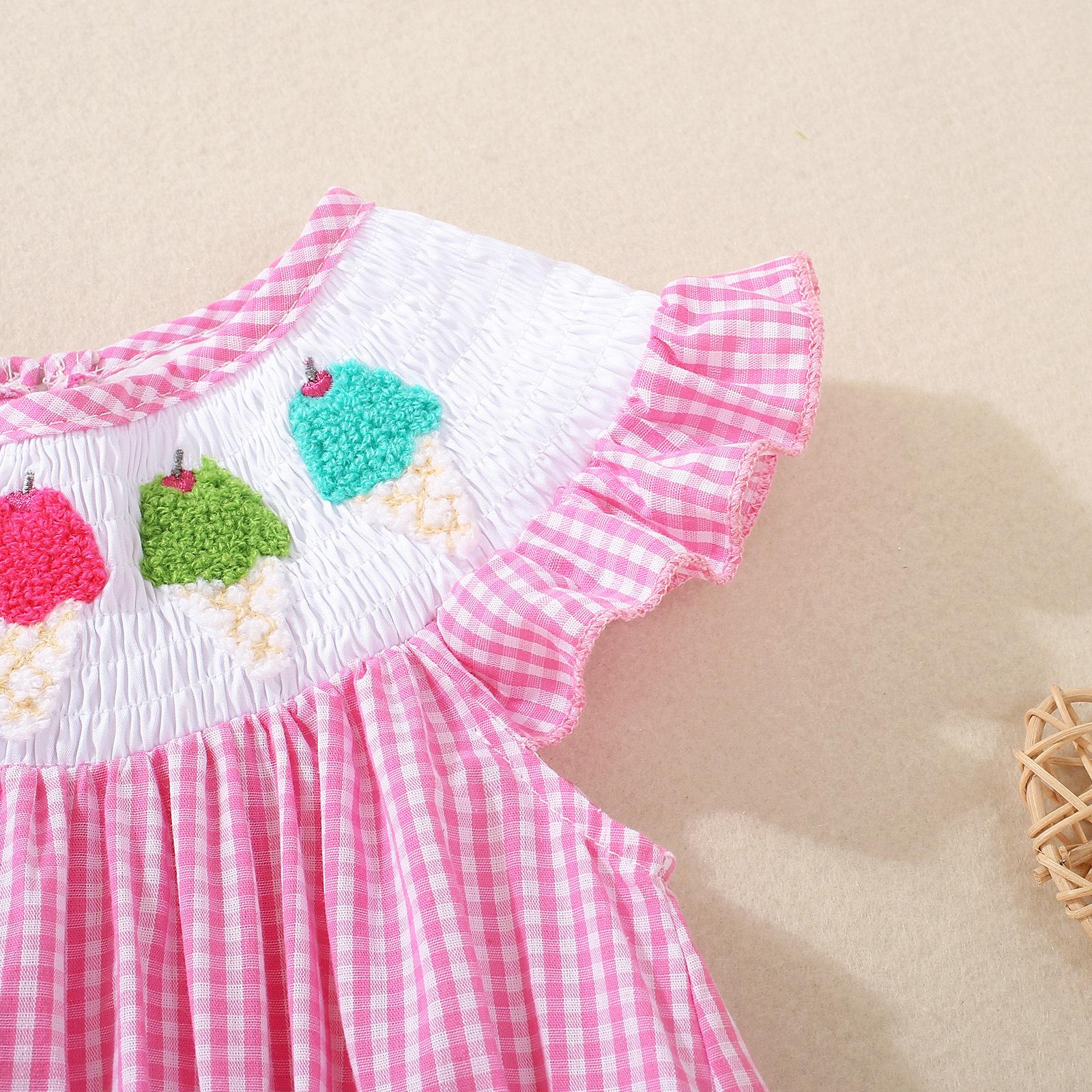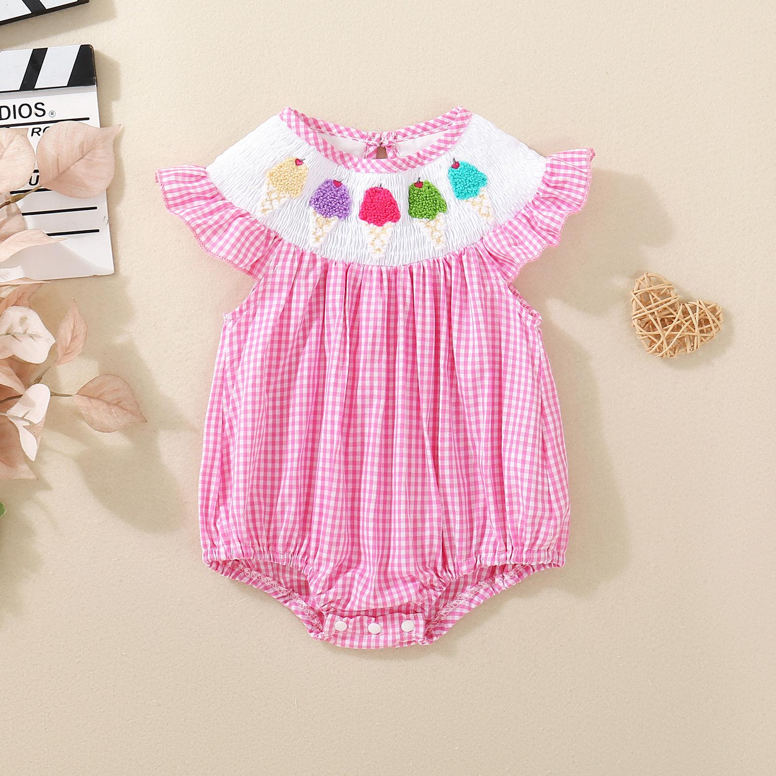 Macacão Infantil Sem Mangas Bordado com Sorvete para Bebê Menina Verão 2025 com Gola de Boneca e Manga Babado