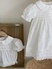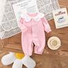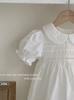 25 Macacão de Renda com Gola de Boneca de Verão para Meninas Estilo Coreano Infantil Macacão Branco Fashion Roupas para Bebê Recém-Nascido