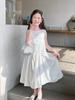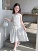 Saia Longa Branca da Moda para Meninas Vestido Estilo Infantil Roupas para Crianças Grandes Vestido Colete de Princesa Verão 2025 Novo Estilo