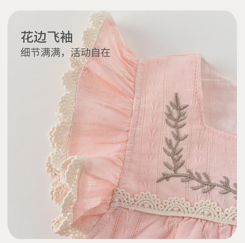 Embroidered flying sleeves short climb-pink