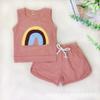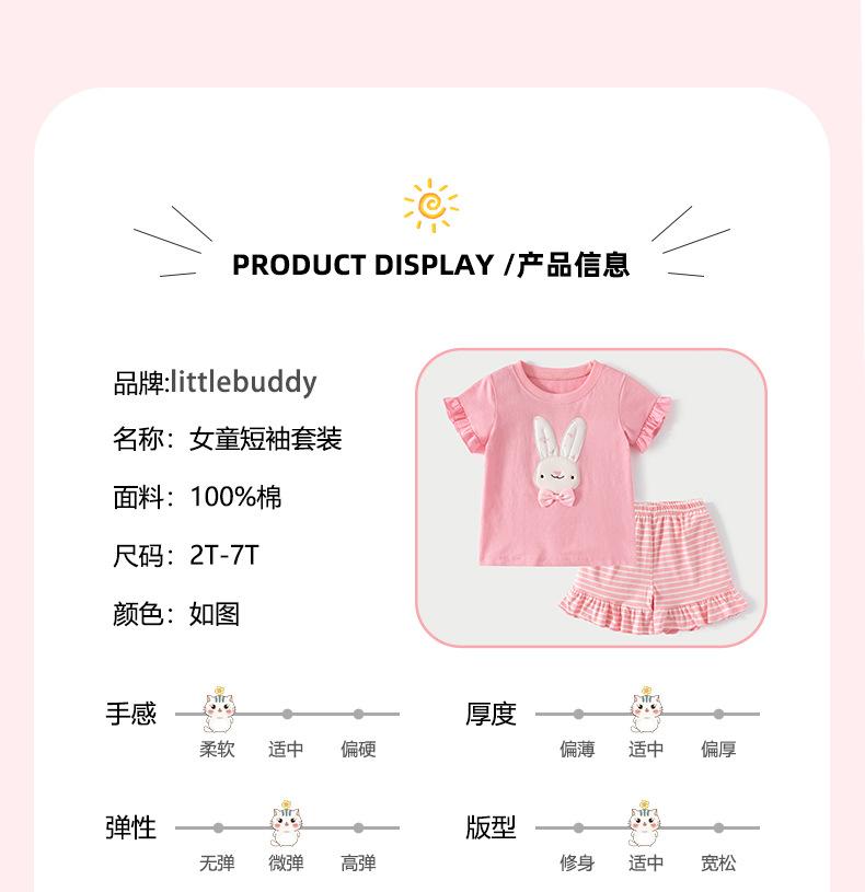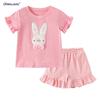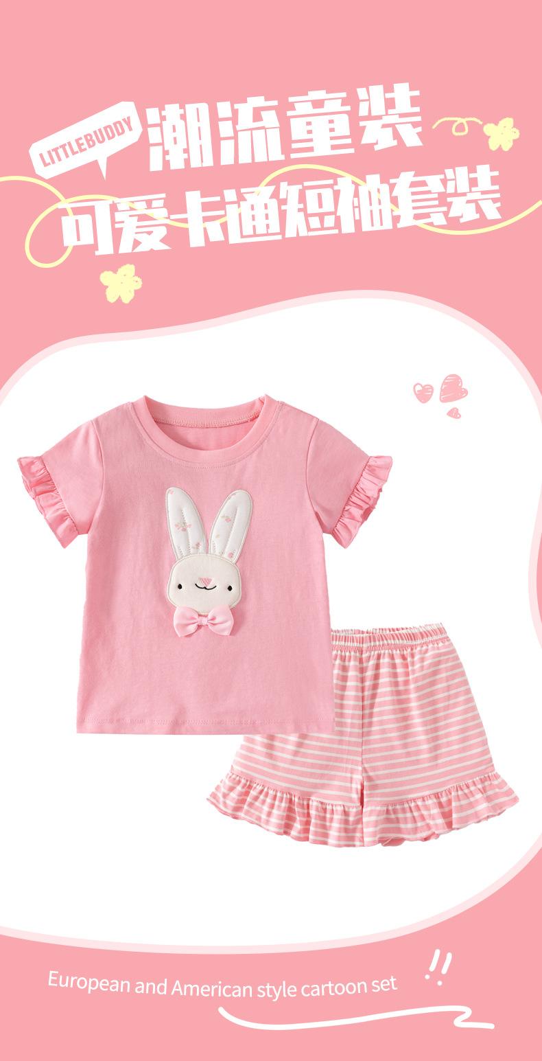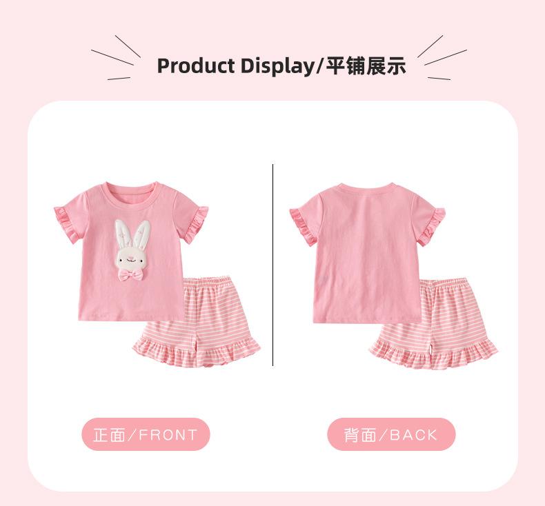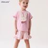 Conjuntinho infantil fofo europeu e americano verão manga curta para meninas desenho animado listrado roupa infantil atacado
