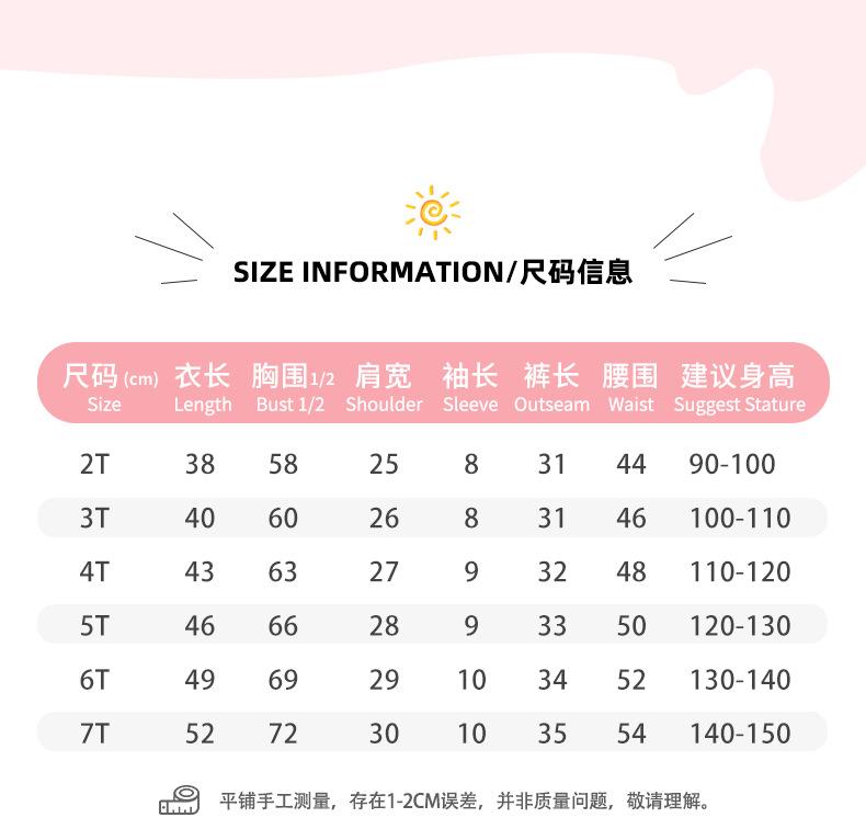 2T/90cm, 3T/100cm, 4T/110cm, 5T/120cm, 6T/130cm, 7T/140cm