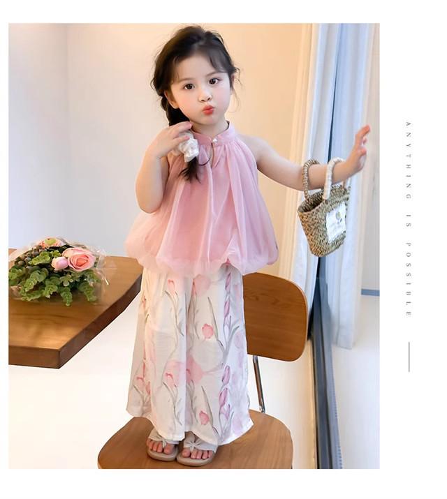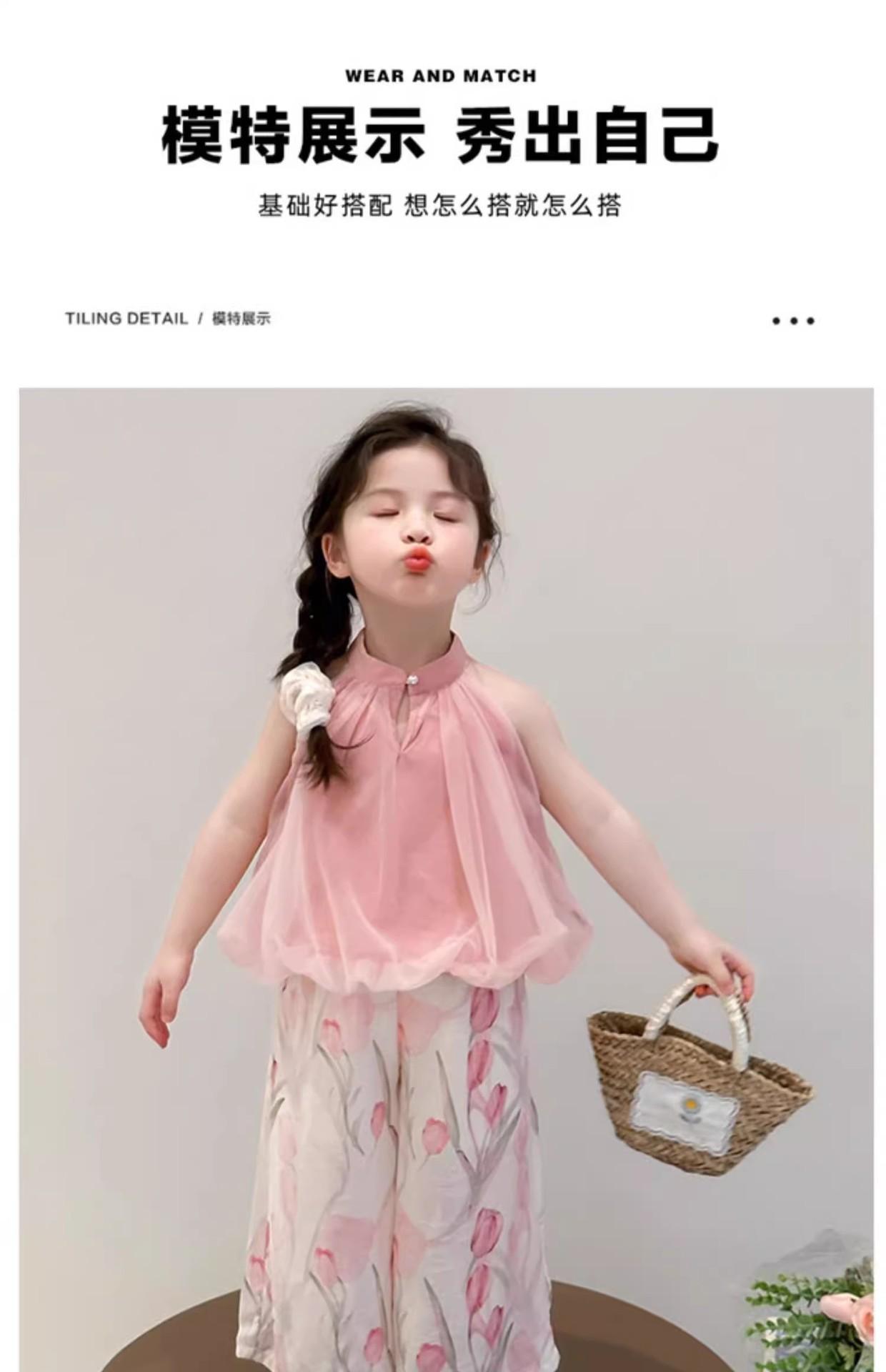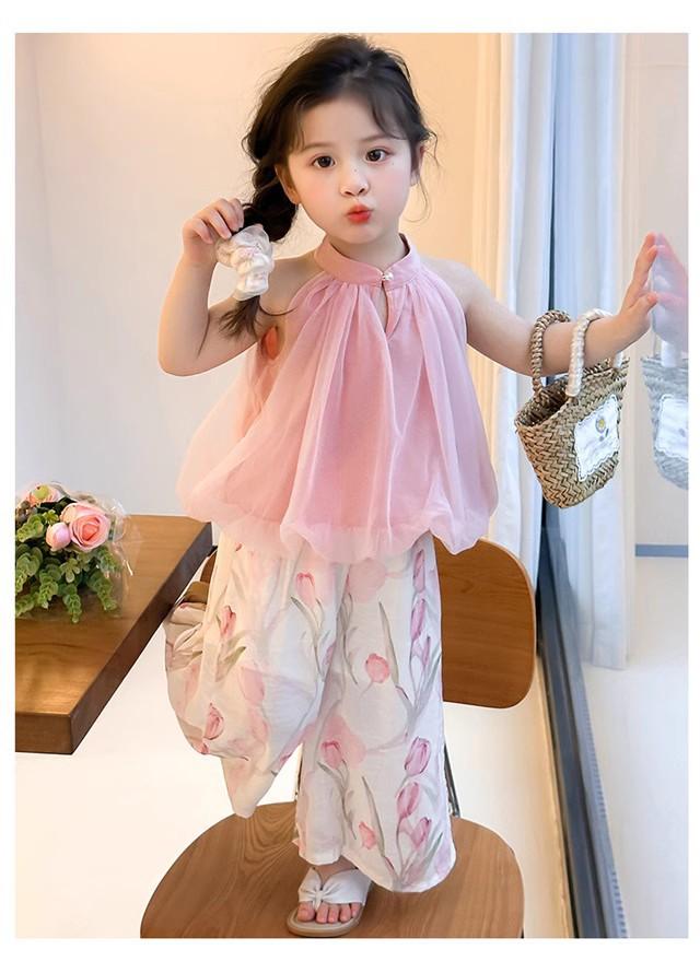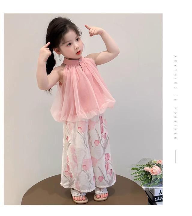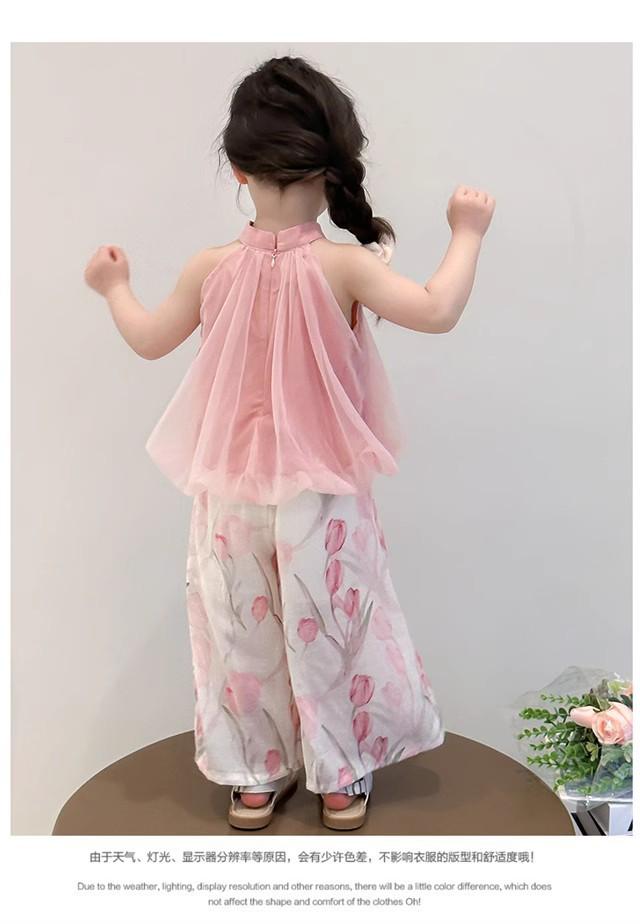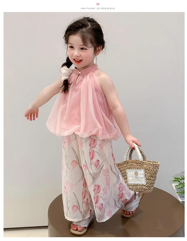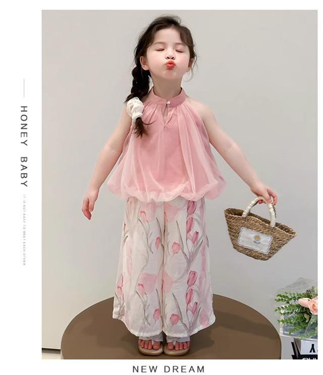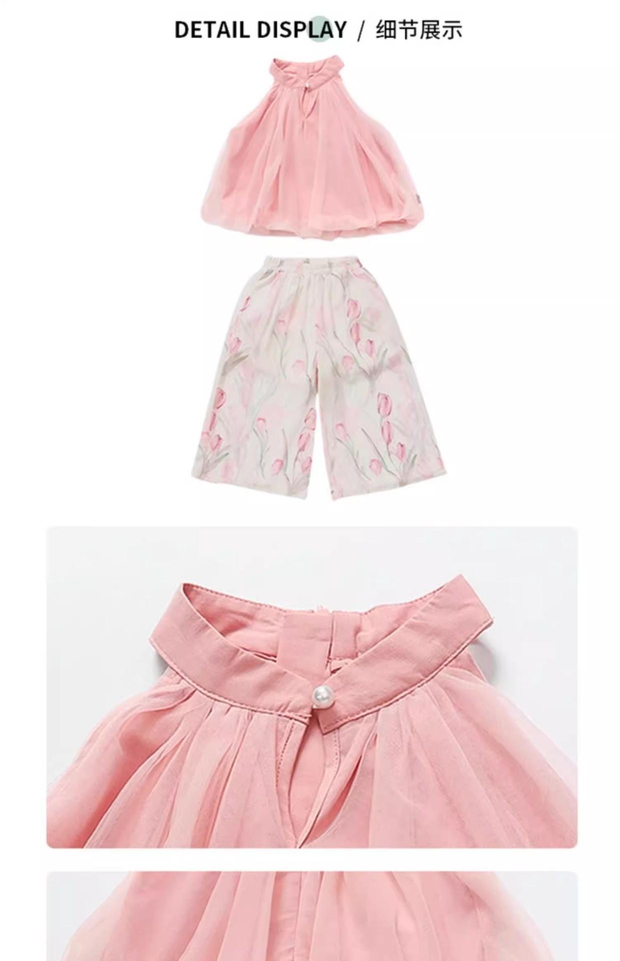 Two piece set, Pink halter top [single piece], Floral wide-leg pants [single piece], 5832-pink