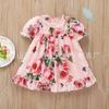 Vestido de Princesa de Verão Europeu e Americano Atacado Transfronteiriço para Bebê Menina Manga Bufante Laço Saia Estampada Roupa Infantil