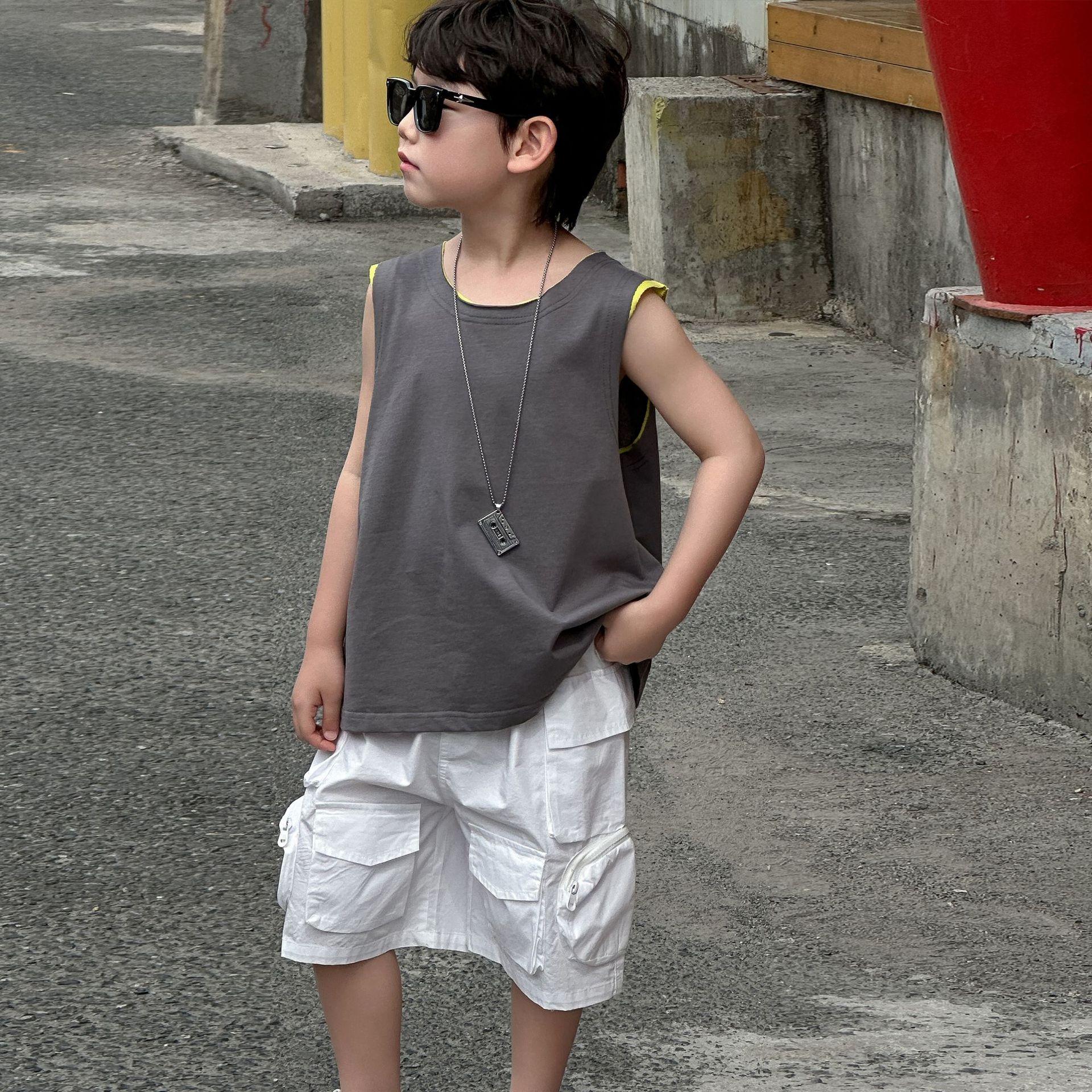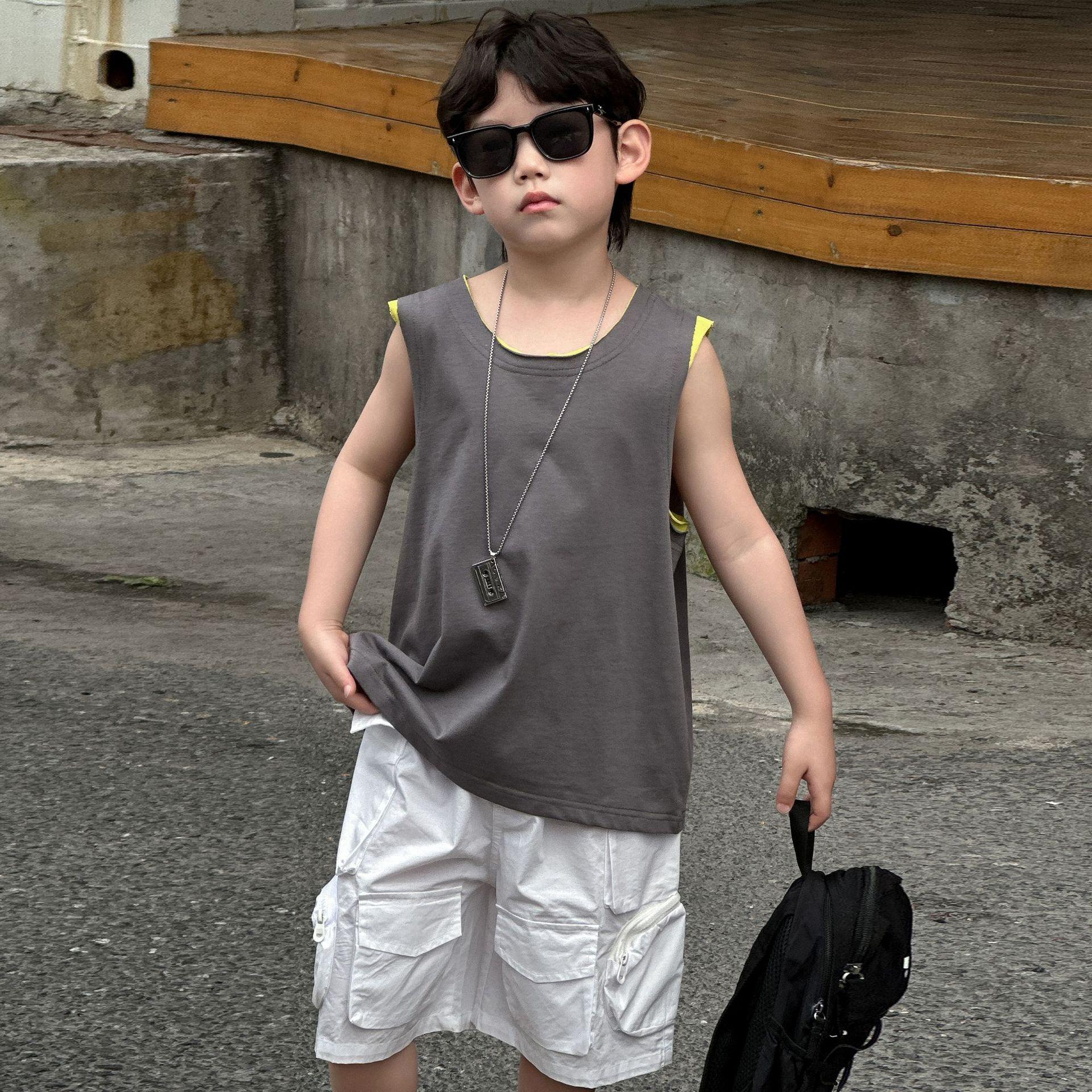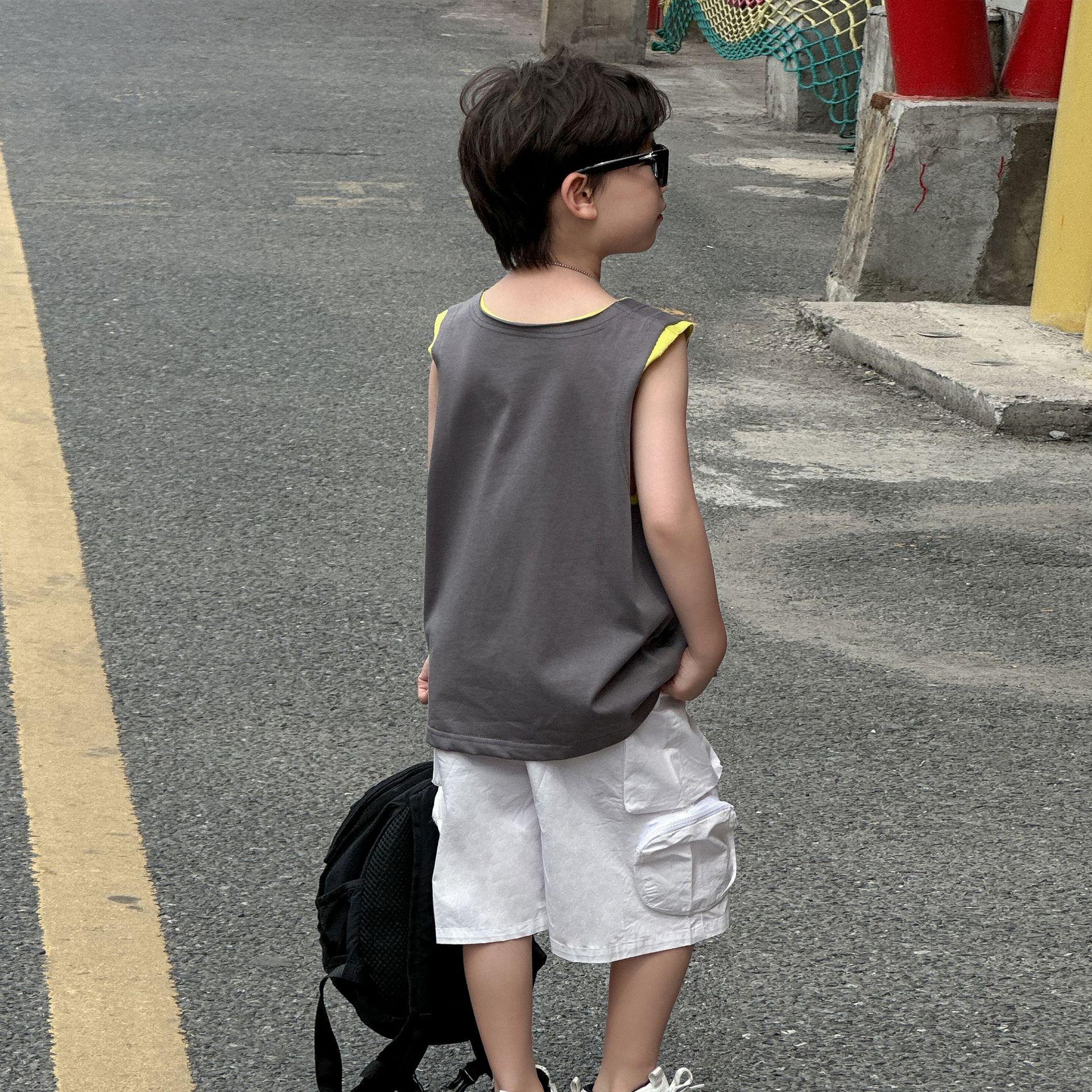 Colete de Verão Solto para Meninos 2025 Verão Novo Estilo Camiseta Regata Fina de Algodão Puro Infantil Roupas Infantis 6