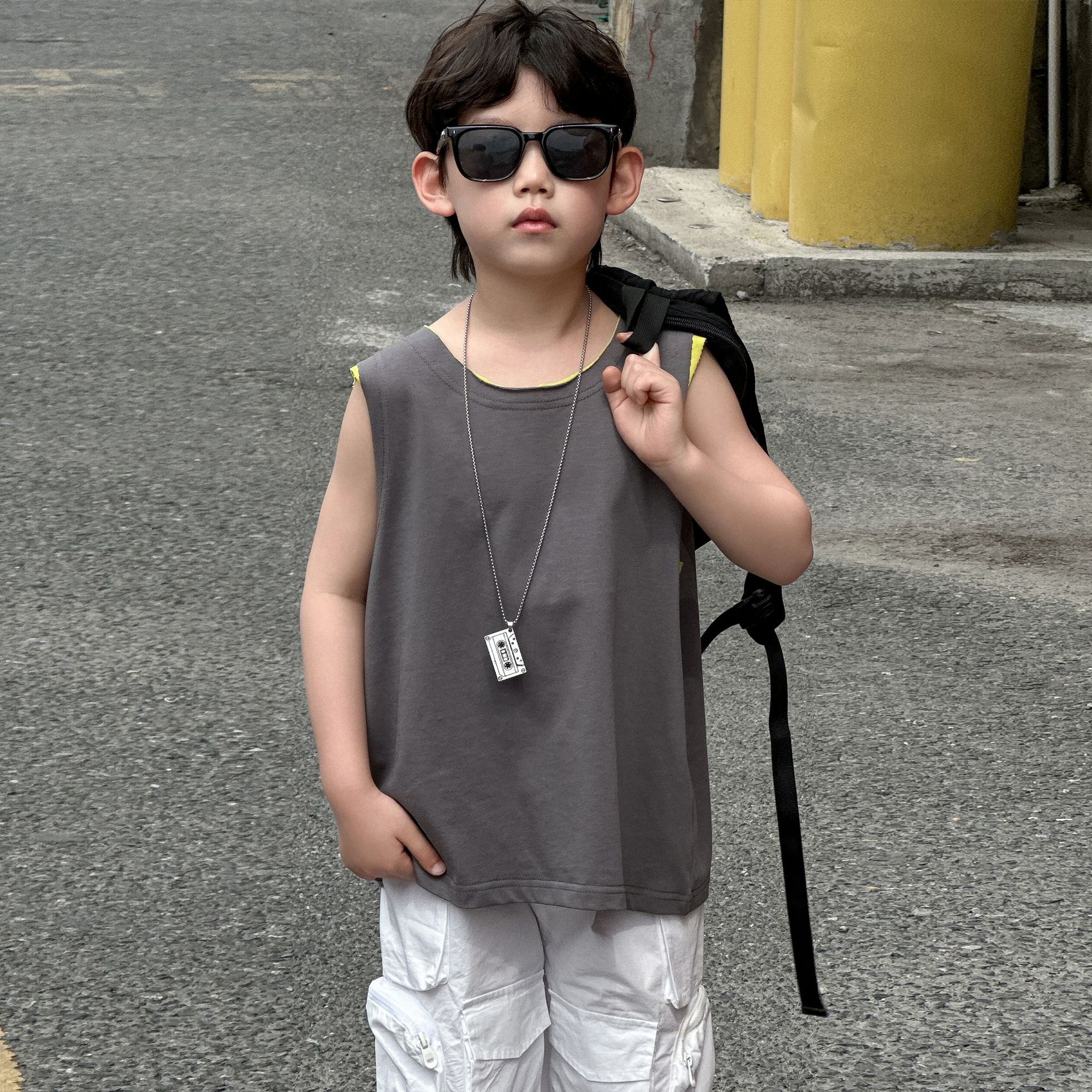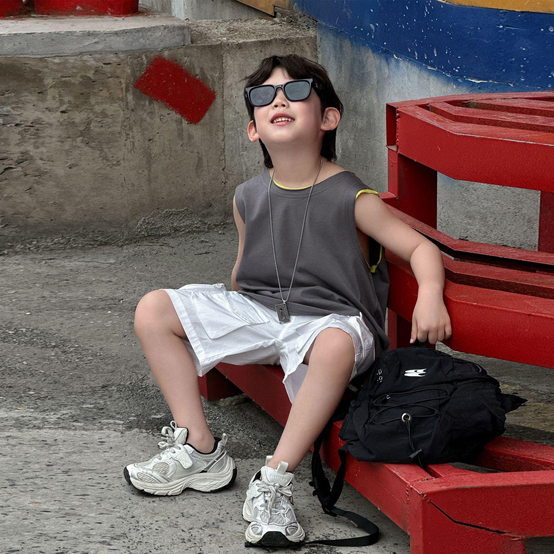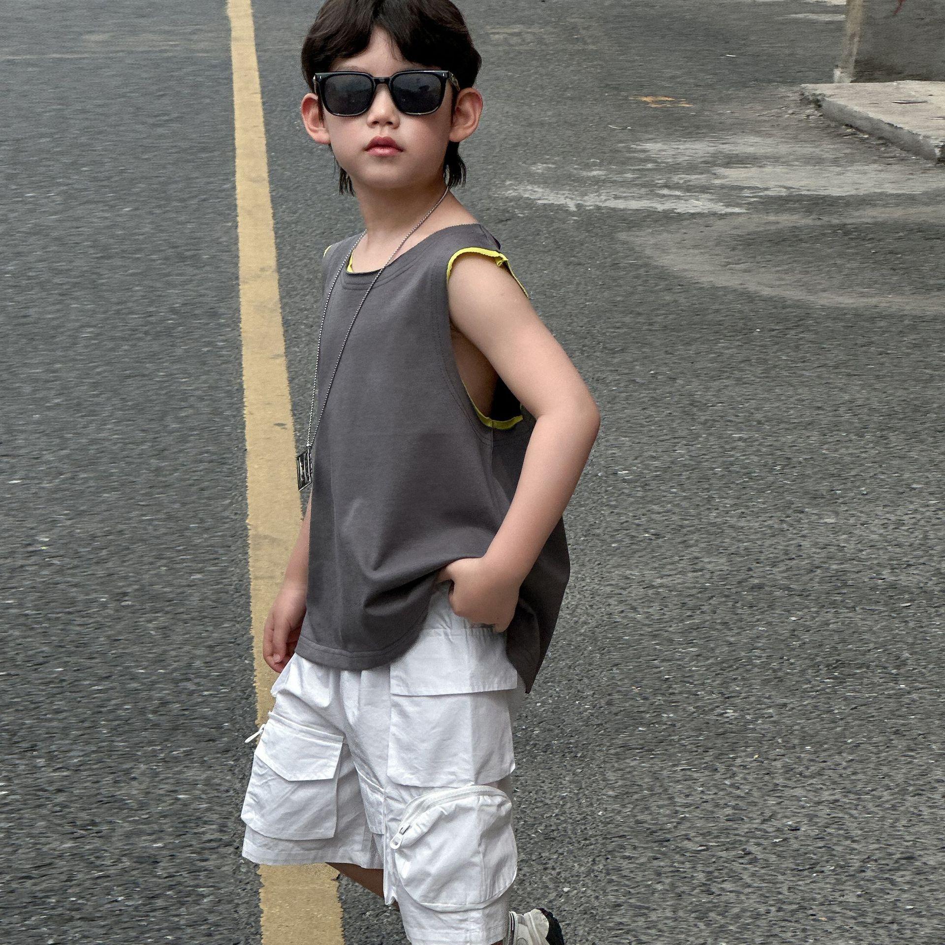 Colete de Verão Solto para Meninos 2025 Verão Novo Estilo Camiseta Regata Fina de Algodão Puro Infantil Roupas Infantis 6