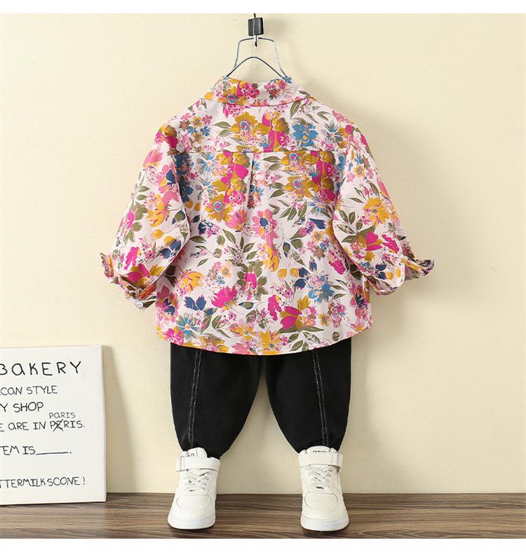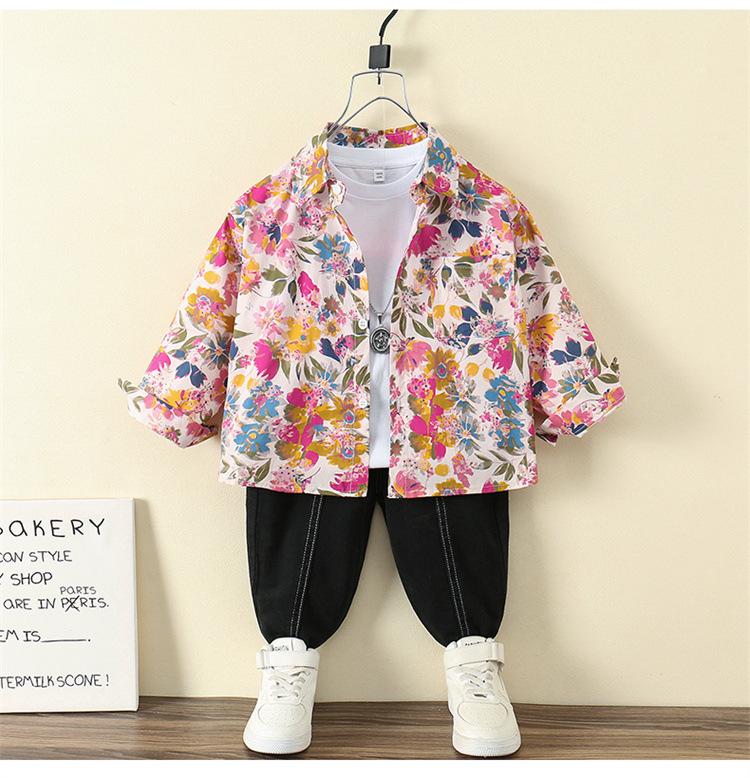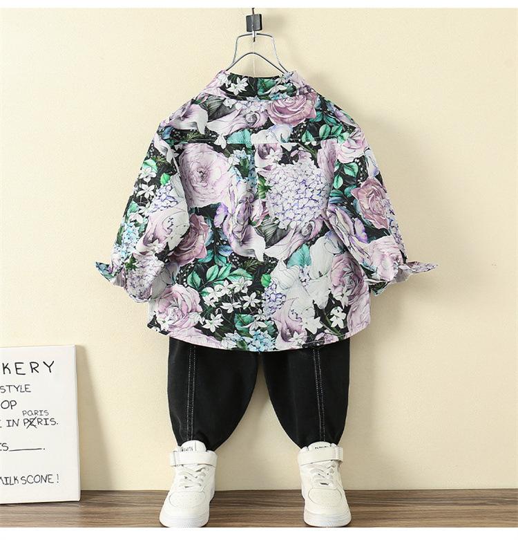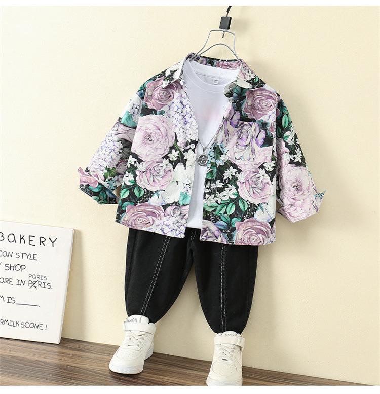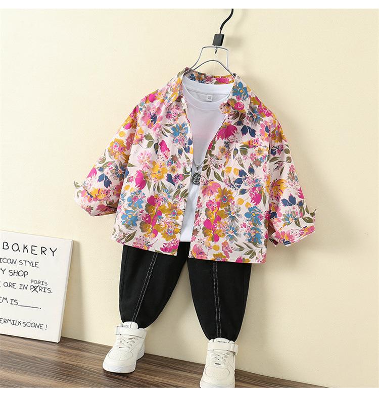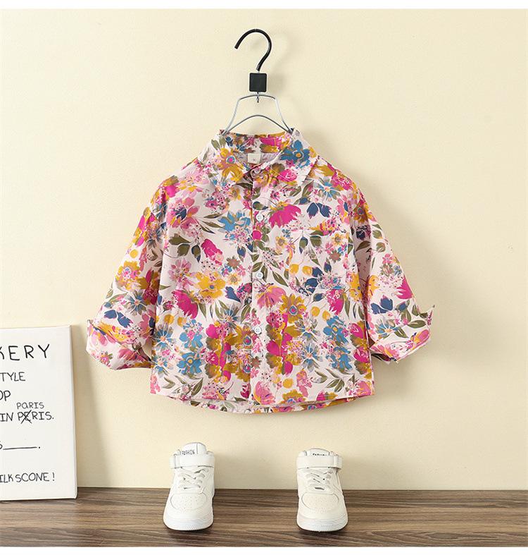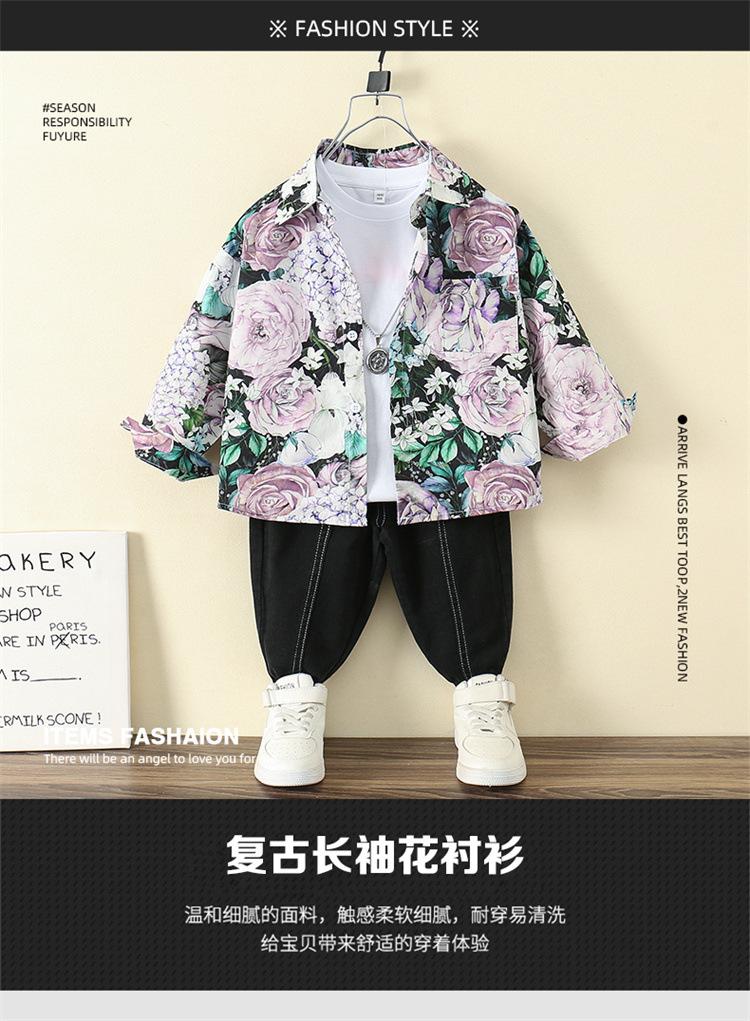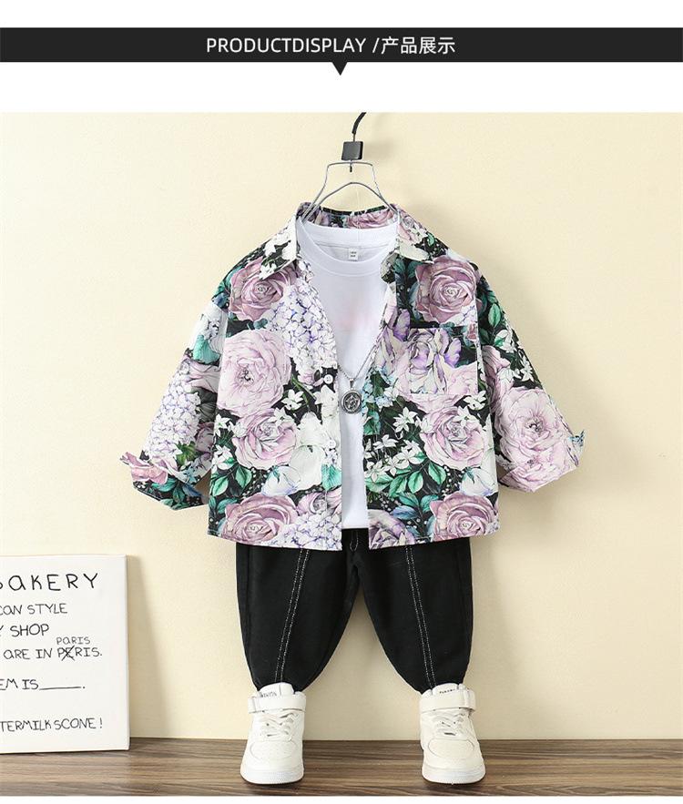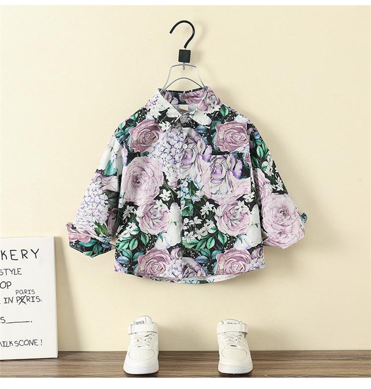 Camisa Floral para Meninos Primavera e Outono 2025 Novo Estilo Ocidental Casaco de Início de Primavera Infantil Roupas Finas de Primavera para Bebê Masculino