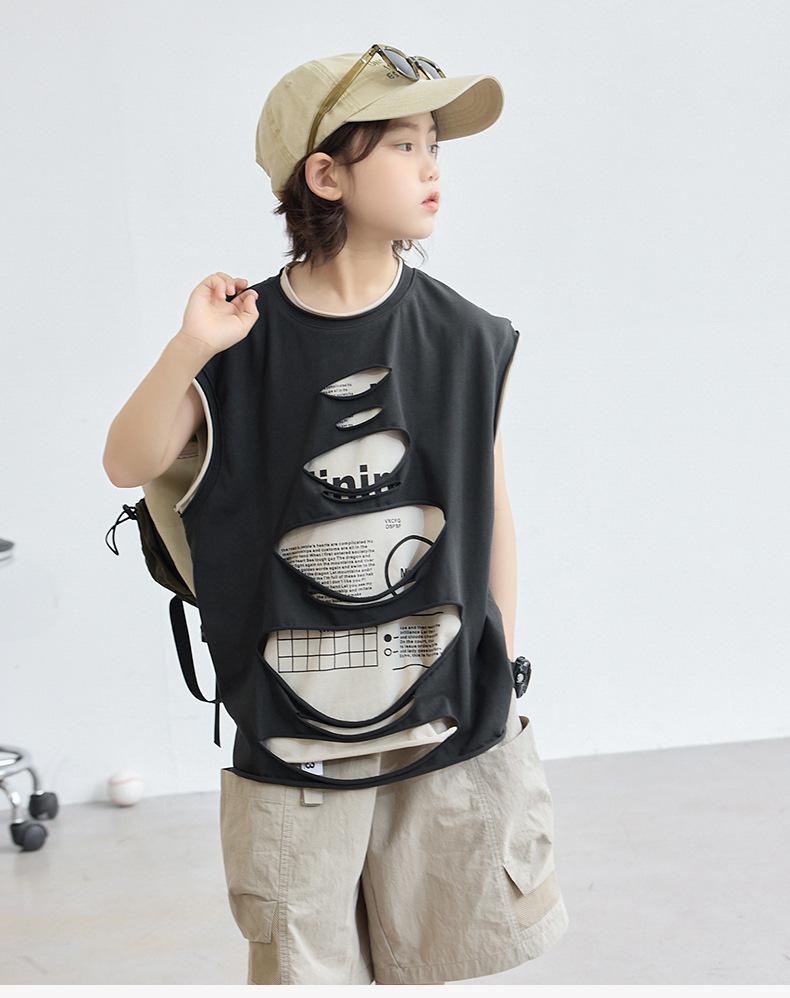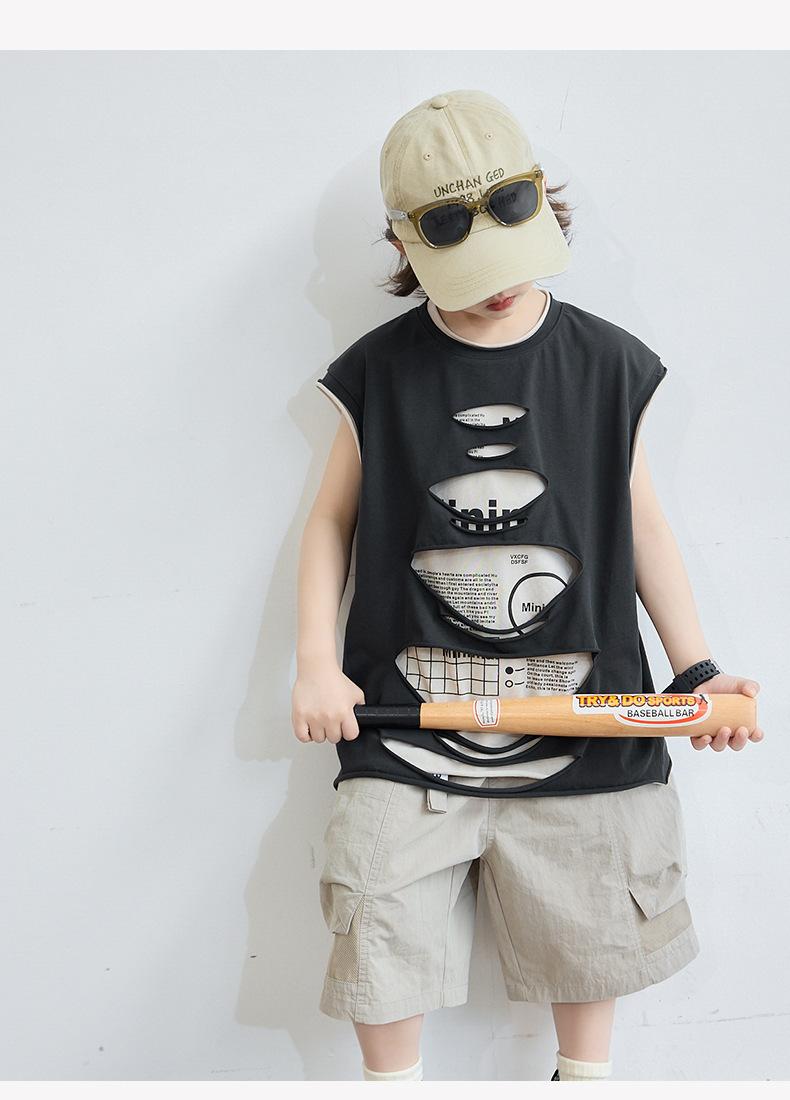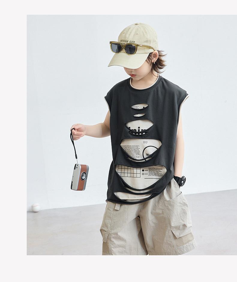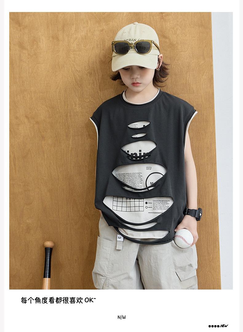 Camiseta Regata Masculina Verão 2025 Novo Estilo Roupa Infantil Camiseta Regata de Verão Infantil Tops Infantis da Moda