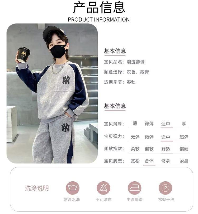 Terno de Outono para Meninos Outono 2023 Novo Infantil Tamanho Grande e Médio Infantil Primavera e Outono Moletons e Roupa Esportiva Moderno, Bonito e Fashion