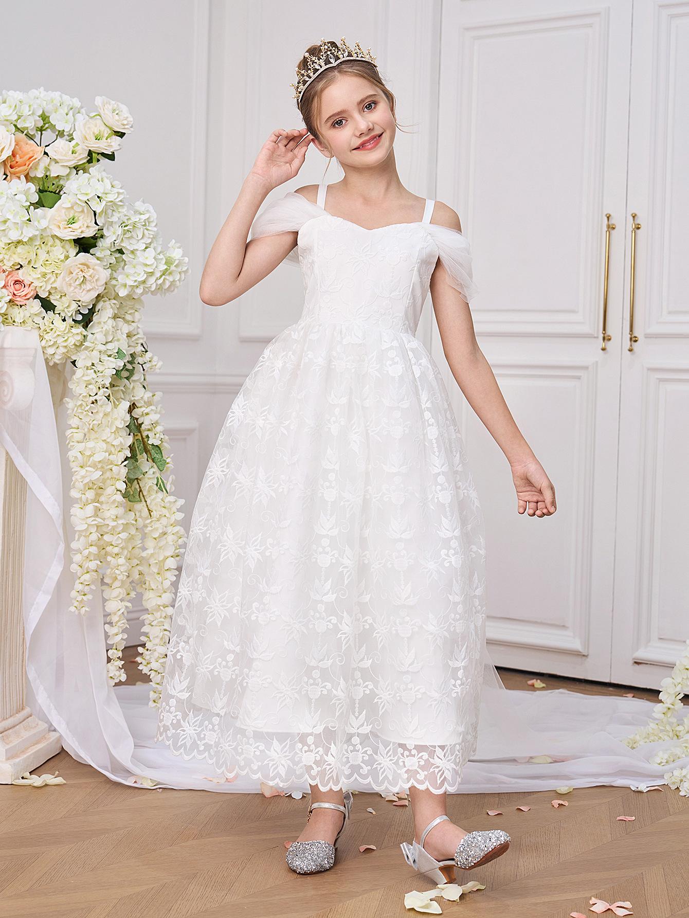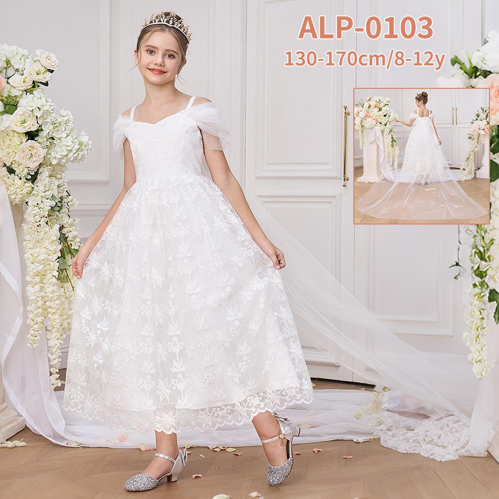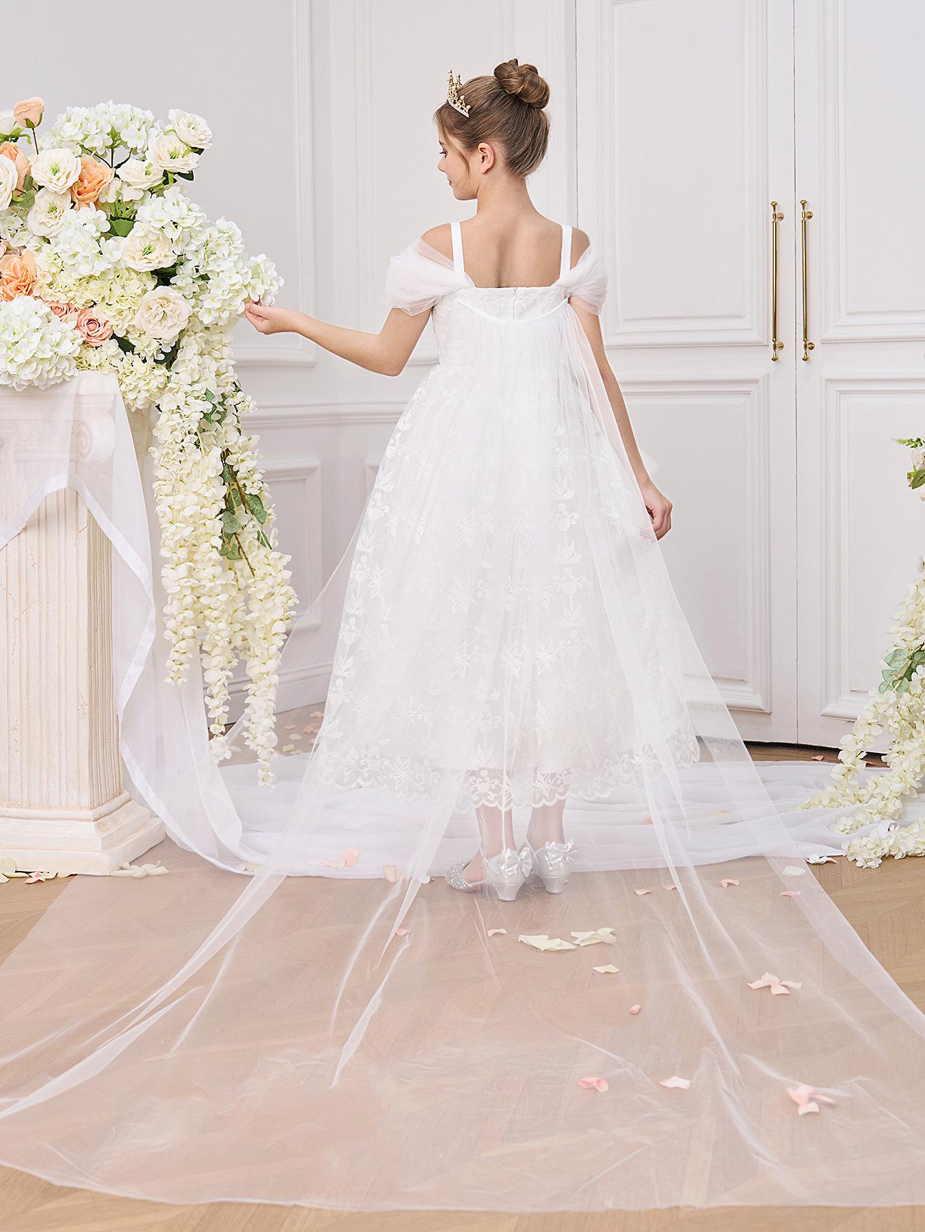 Vestido Infantil Transfronteiriço Vestido de Princesa de Aniversário Vestido de Daminha Gaze Fofa Anfitriã Vestido de Noite Menina Branco Vestido de Casamento