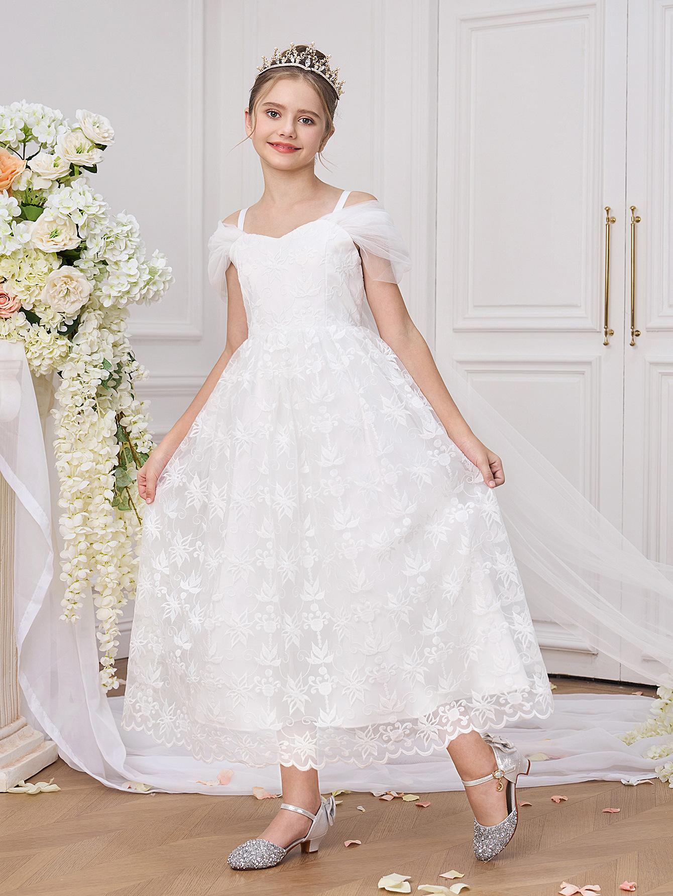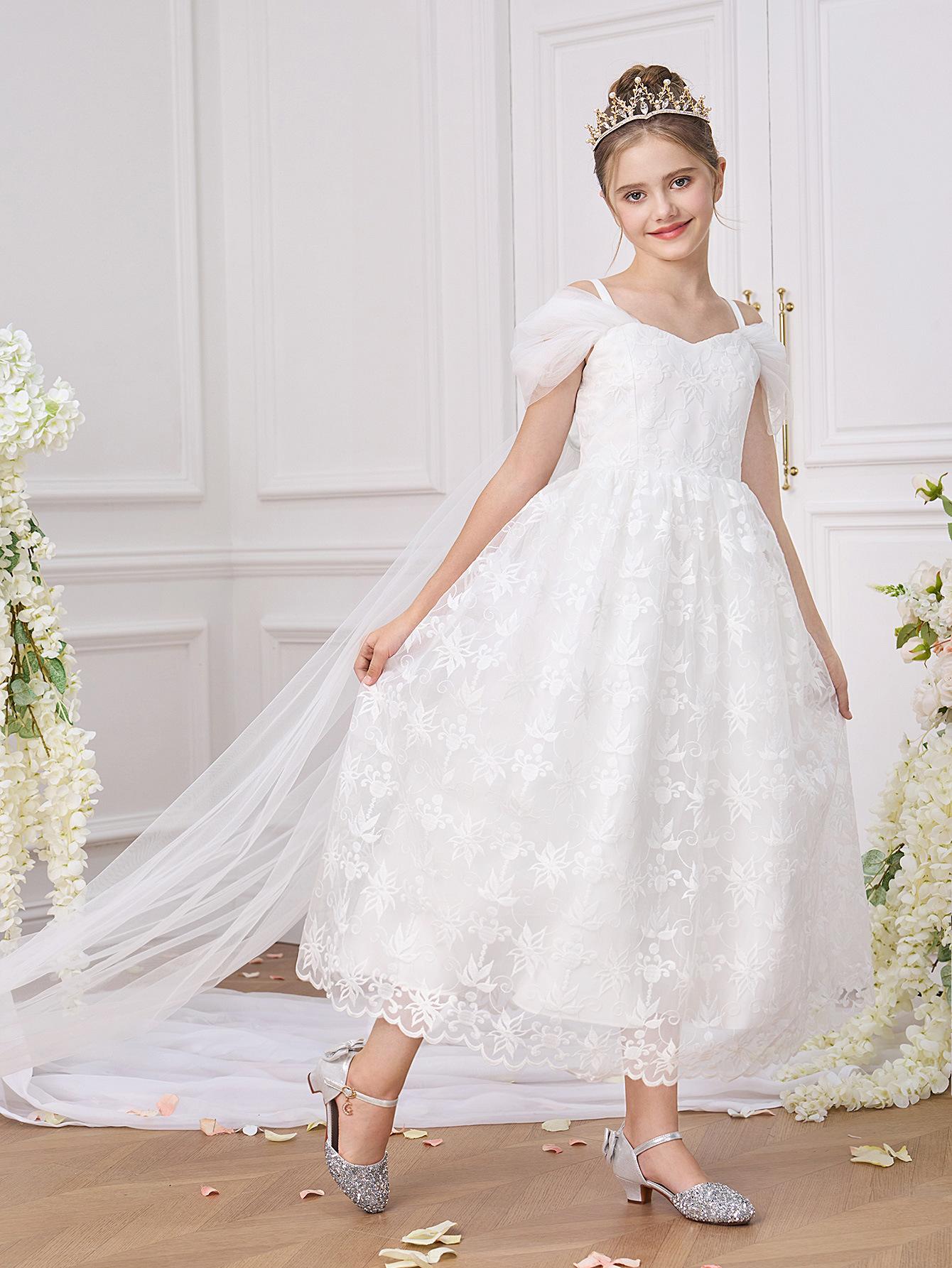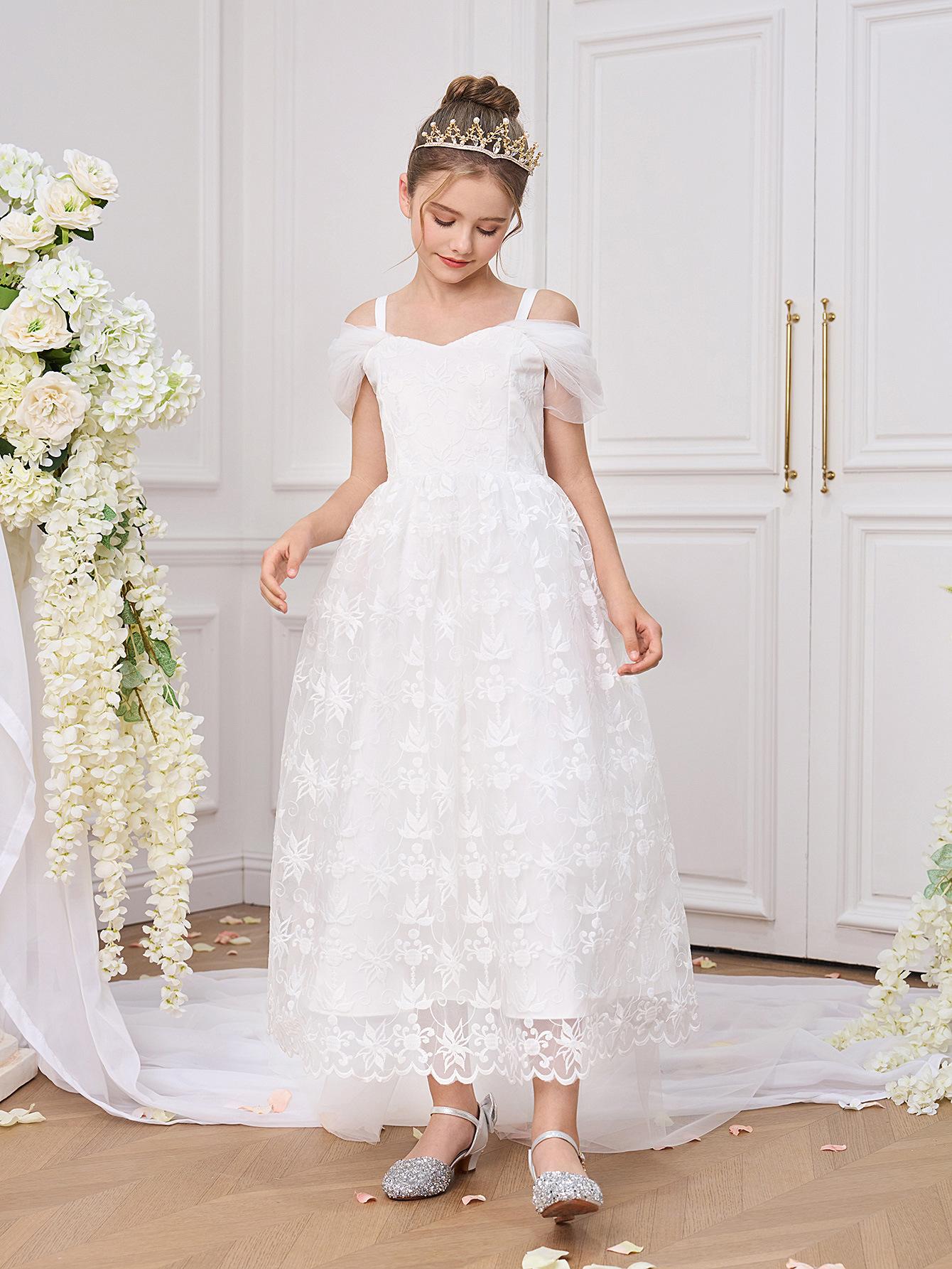 Vestido Infantil Transfronteiriço Vestido de Princesa de Aniversário Vestido de Daminha Gaze Fofa Anfitriã Vestido de Noite Menina Branco Vestido de Casamento