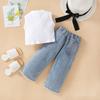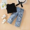 Comércio Exterior Processamento e Customização de Roupas Infantis Conjuntos de Verão para Meninas Regata Cavada Listrada Sem Mangas Jeans Conjunto Infantil Moderno de Duas Peças