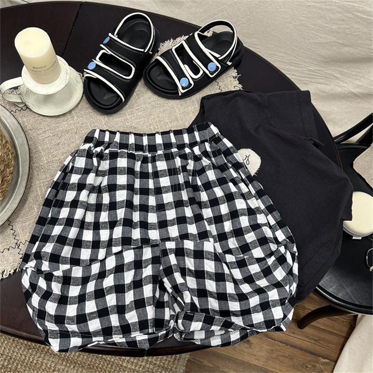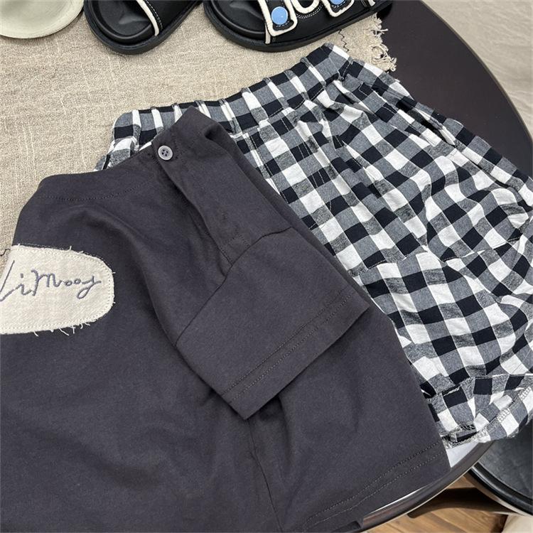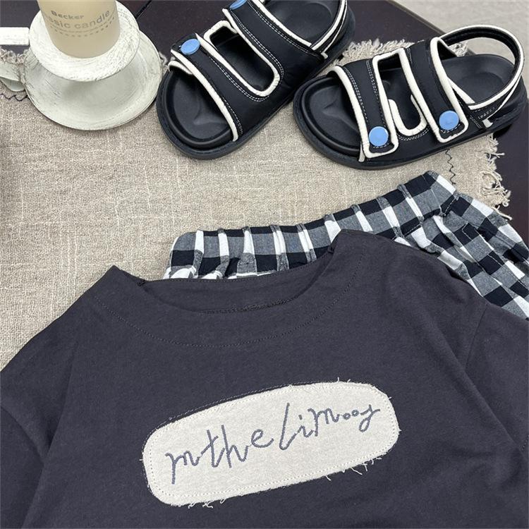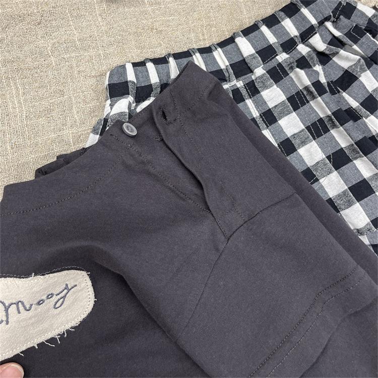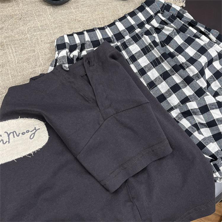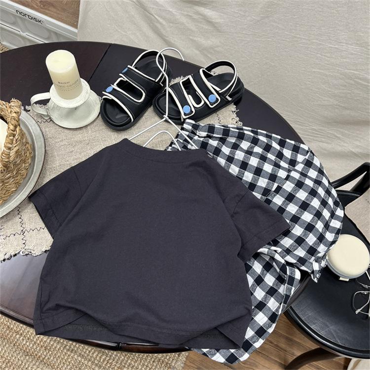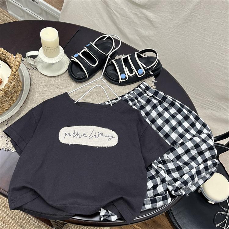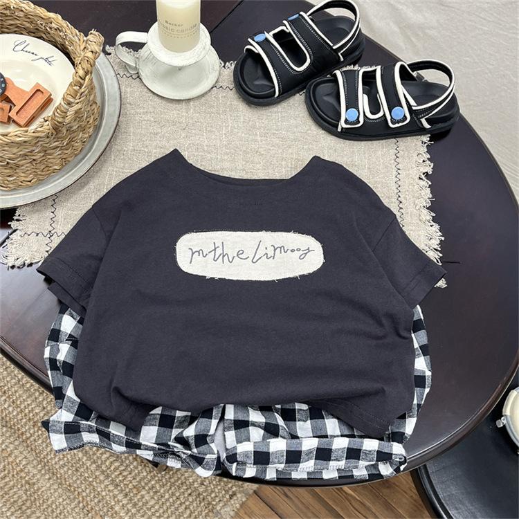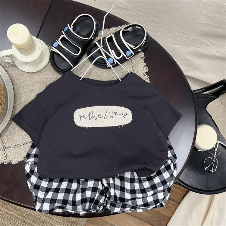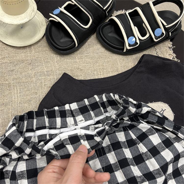 Terno Infantil Verão 2025 Roupas Novas para Bebê Estilo Ocidental Manga Curta Calças Finas de Verão para Crianças Conjunto de Duas Peças