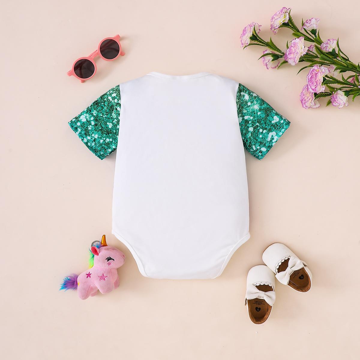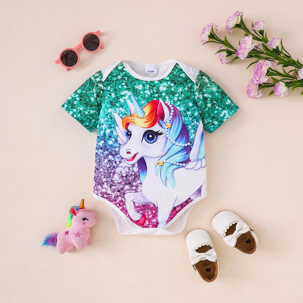 Macacão Triangular Folgado de Manga Curta Estilo Verão Fofo Unicórnio Ins Transfronteiriço para Recém-Nascida