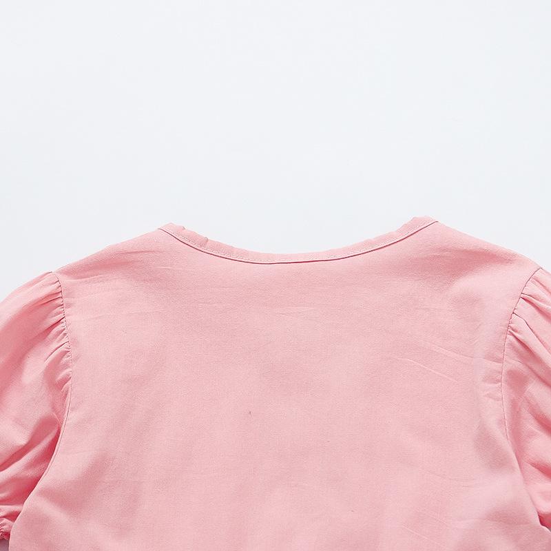 Short sleeve placket lace cherry suit pink