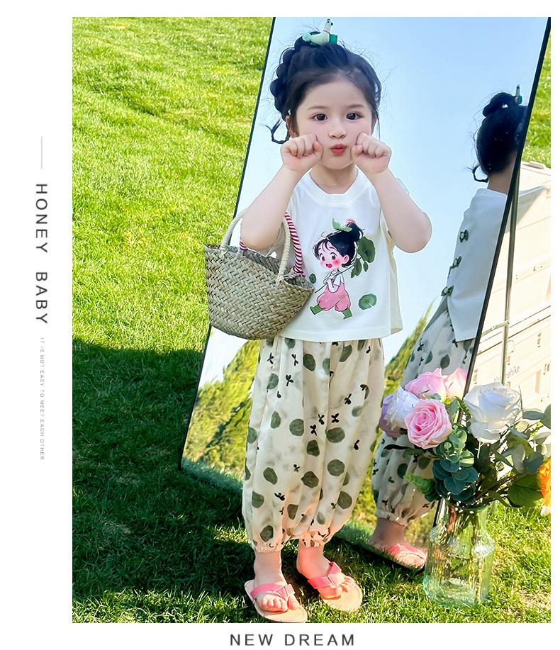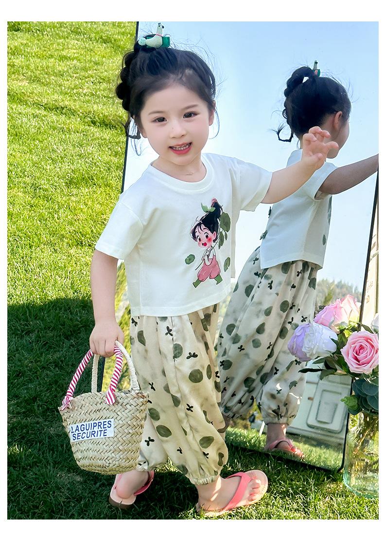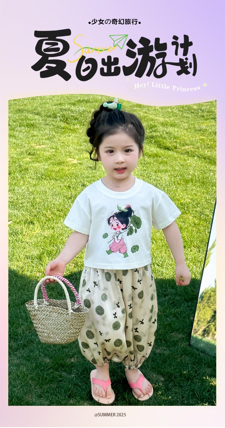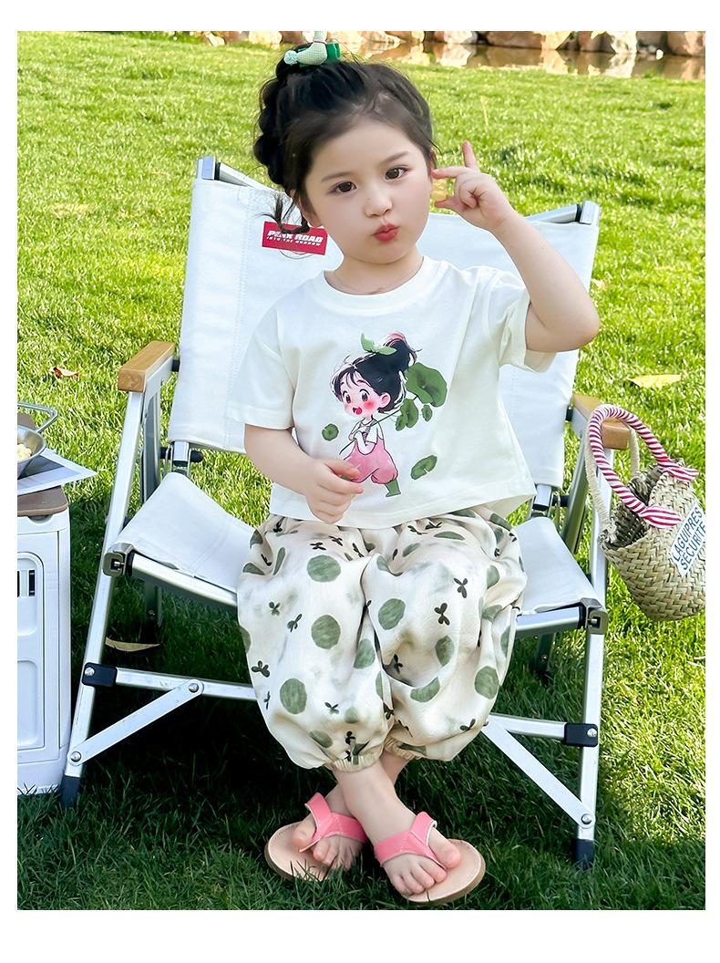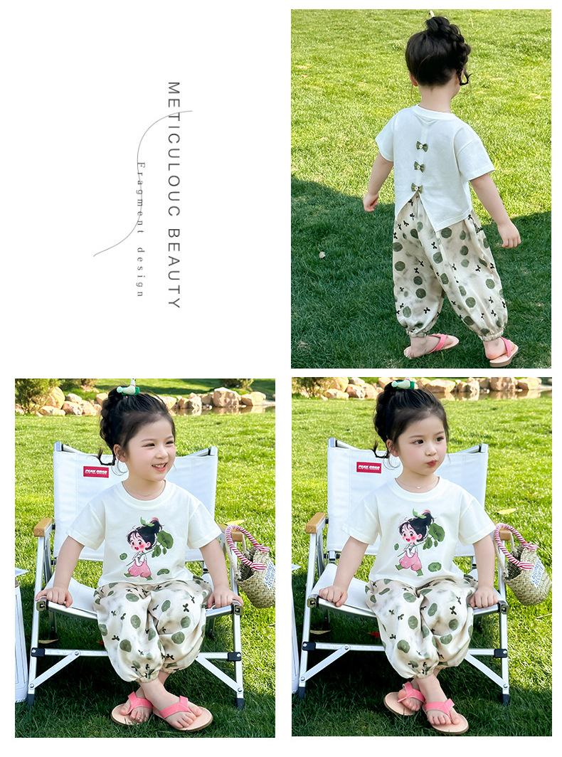 Conjunto Infantil de Verão de Manga Curta com Desenho Animado 2025 Novo Calça Anti-Mosquito para Crianças Conjunto Moderno de Duas Peças Roupa de Verão para Bebê