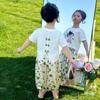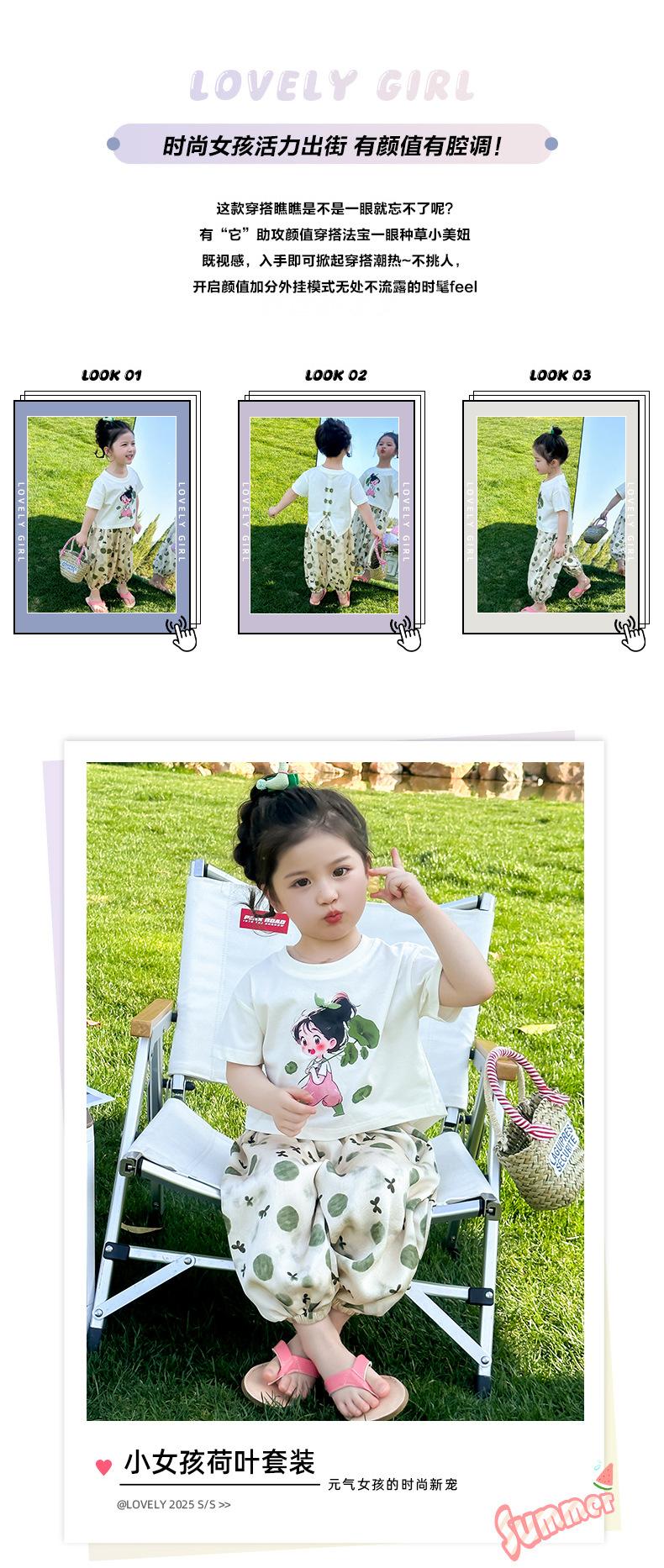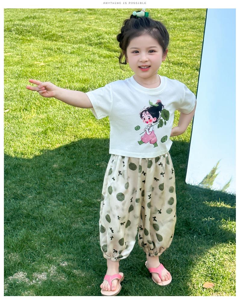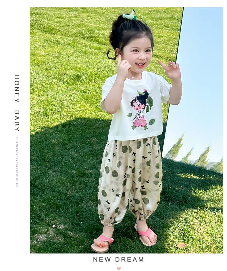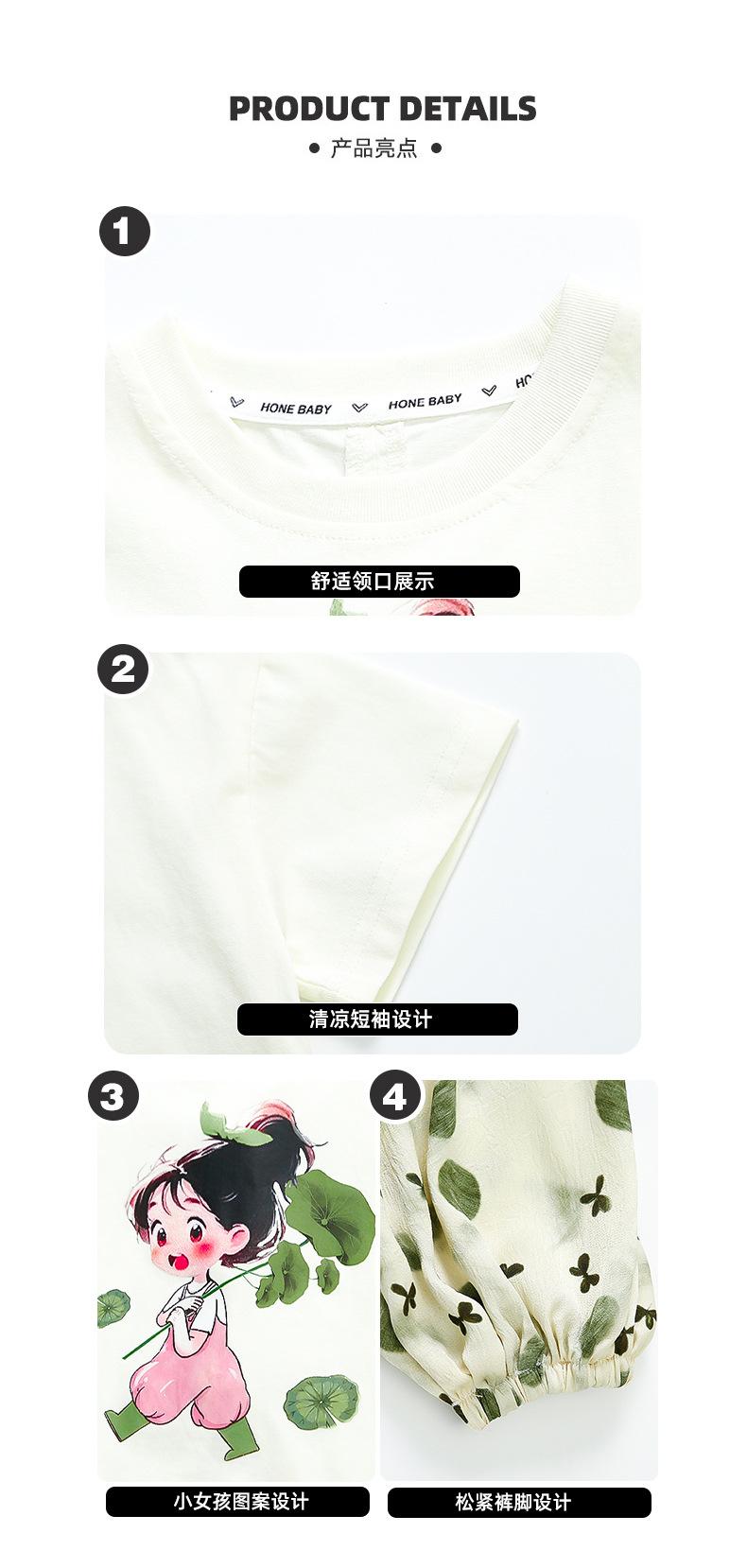 Conjunto Infantil de Verão de Manga Curta com Desenho Animado 2025 Novo Calça Anti-Mosquito para Crianças Conjunto Moderno de Duas Peças Roupa de Verão para Bebê