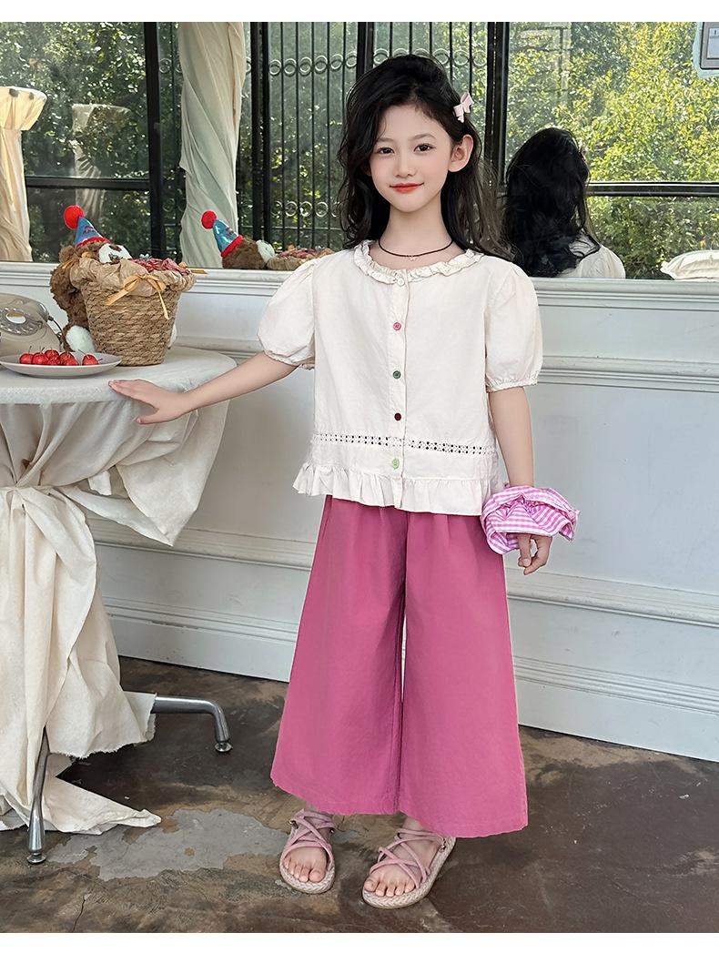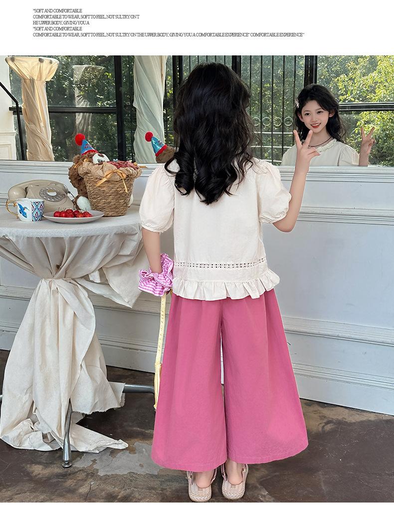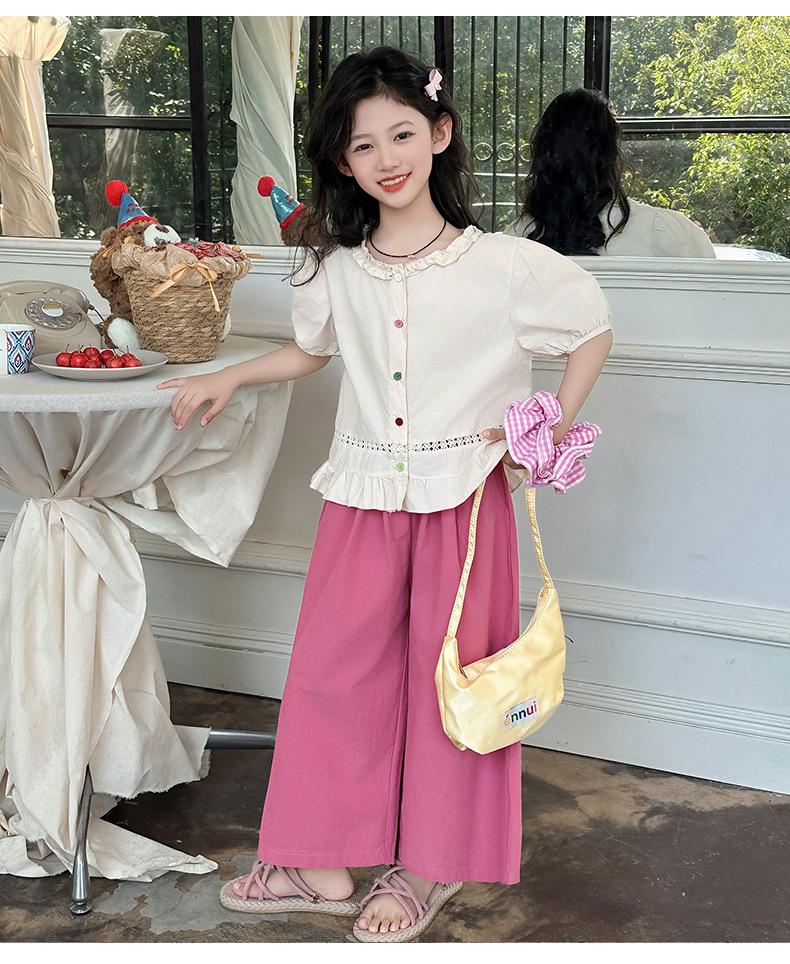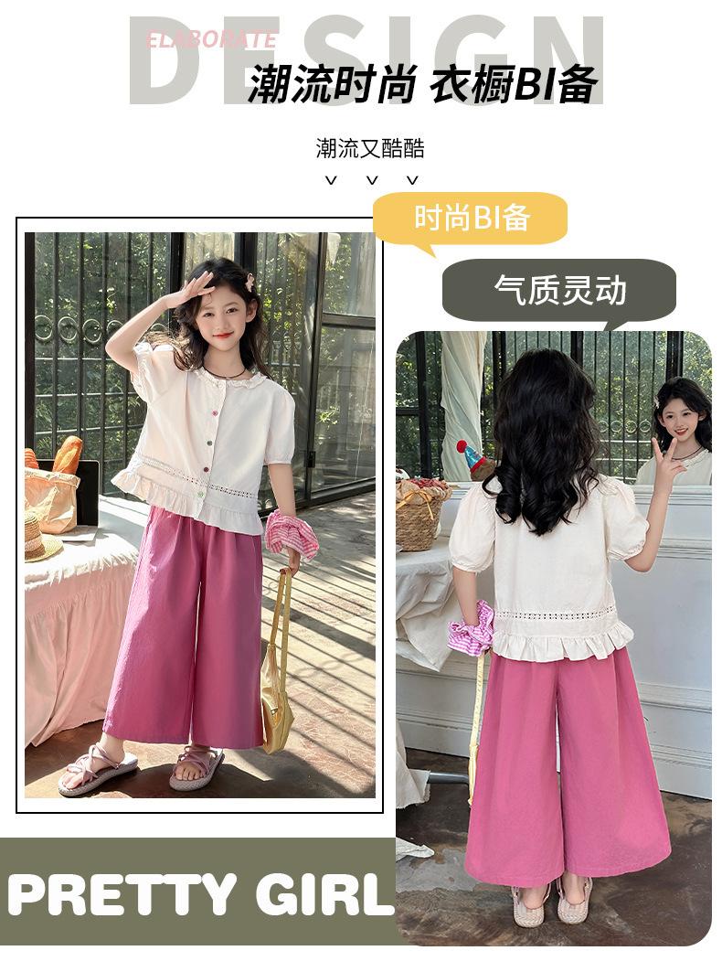 Conjunto de Verão para Meninas 2025 Nova Moda Roupas Infantis Tops de Bebê Calças de Perna Larga Conjunto de Verão de Duas Peças