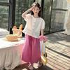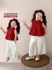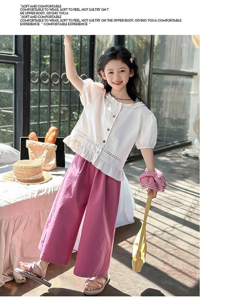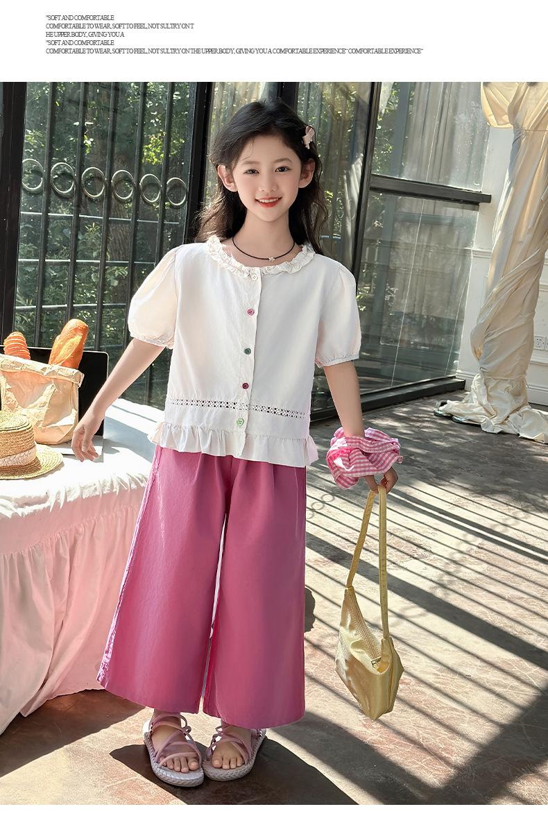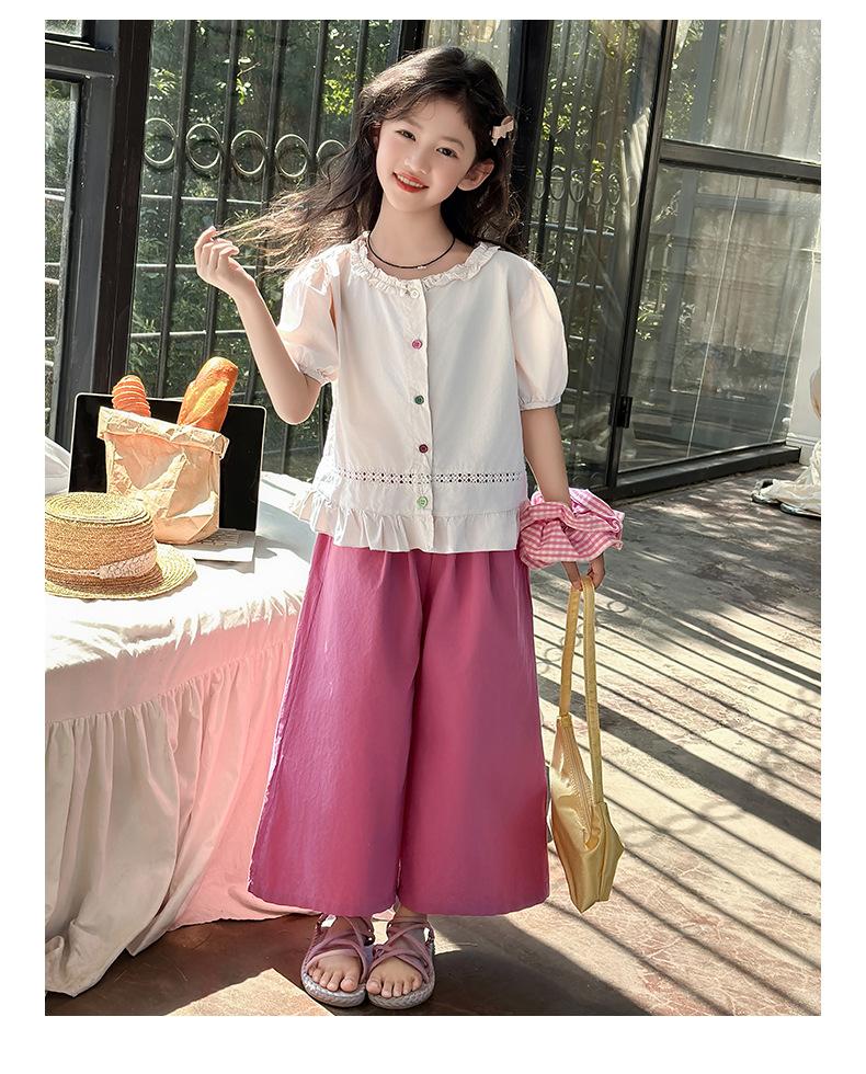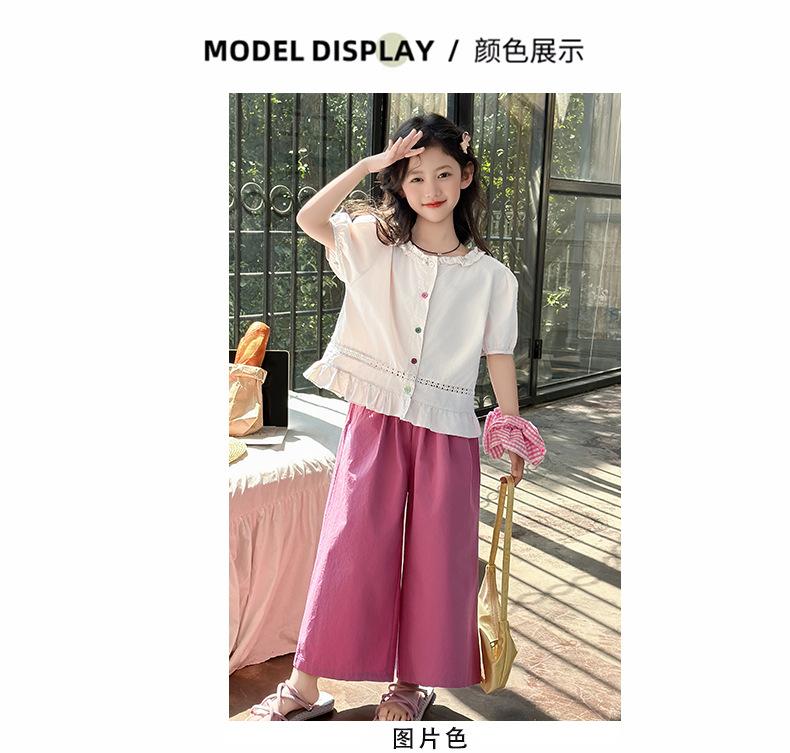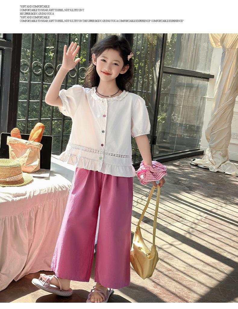 Conjunto de Verão para Meninas 2025 Nova Moda Roupas Infantis Tops de Bebê Calças de Perna Larga Conjunto de Verão de Duas Peças