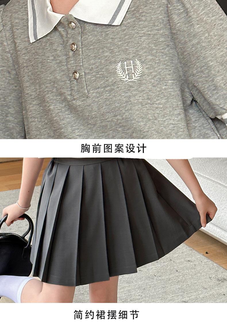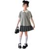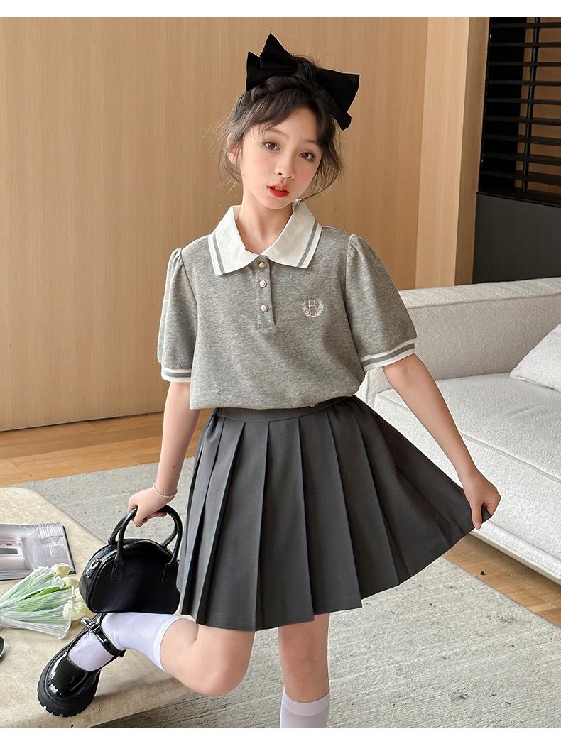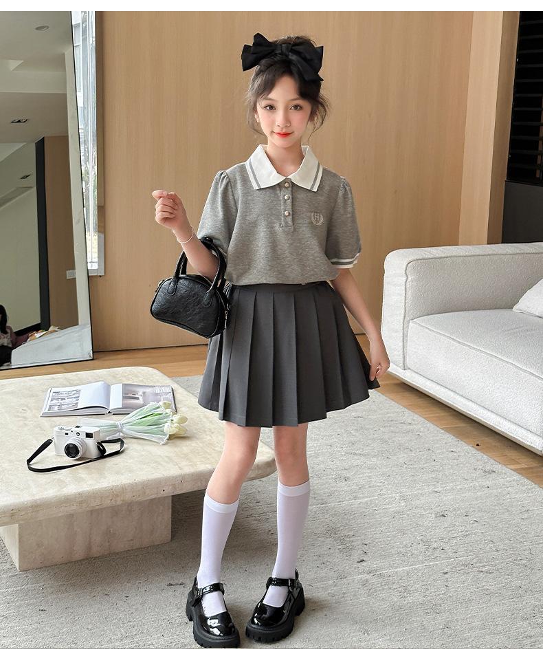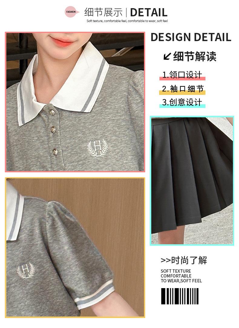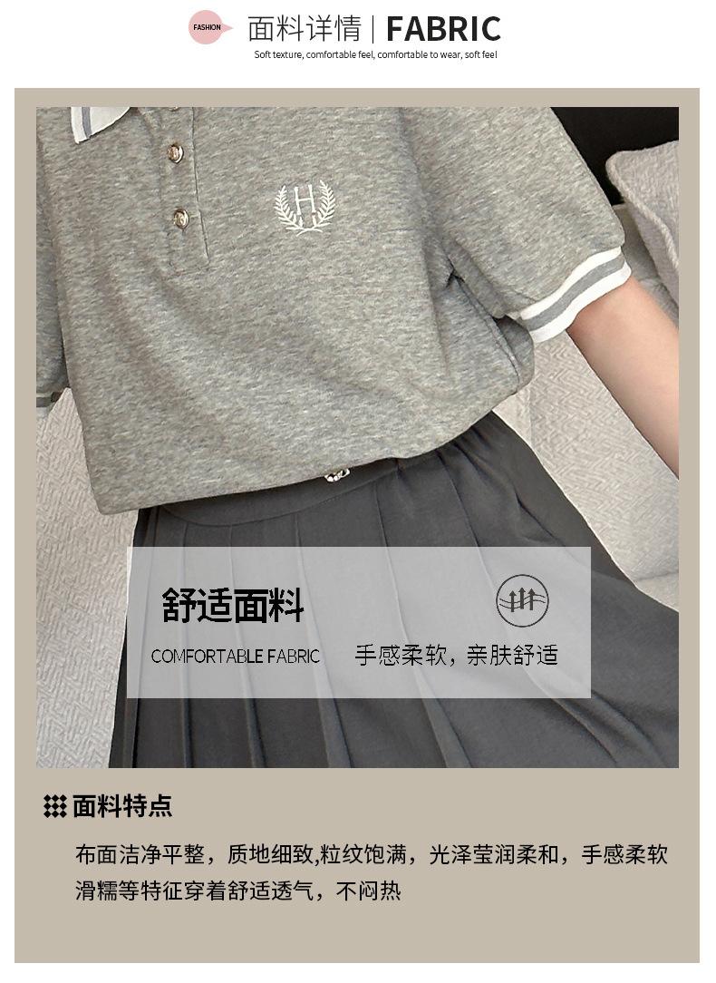 Gray [high quality polo collar short sleeve pleated skirt suit]