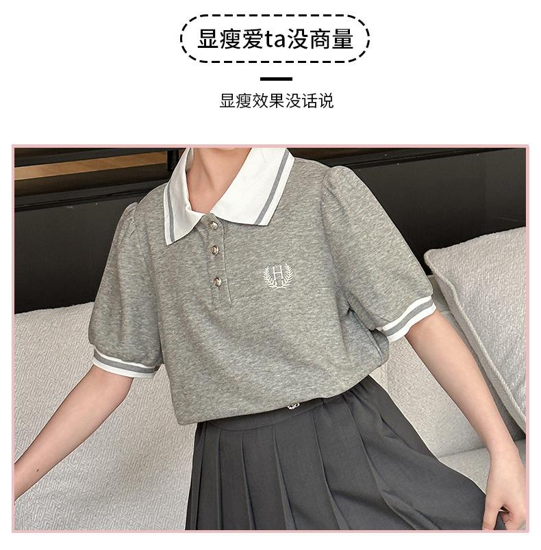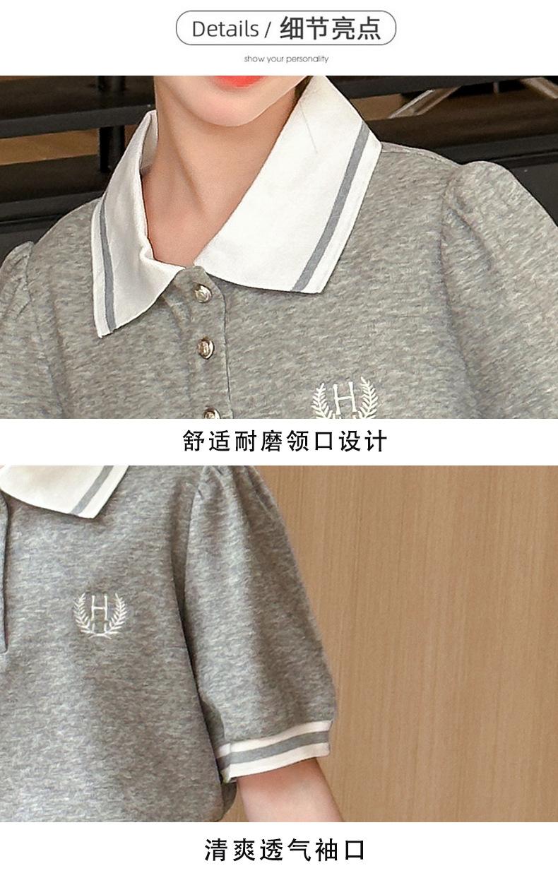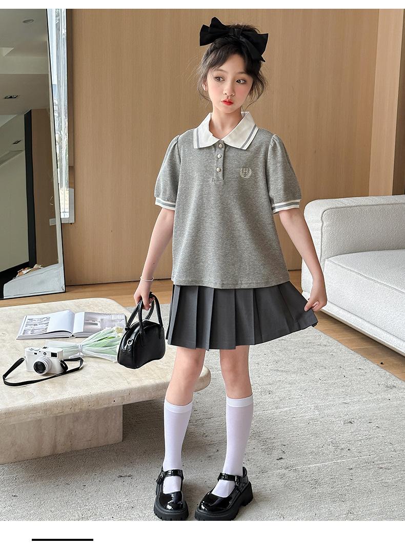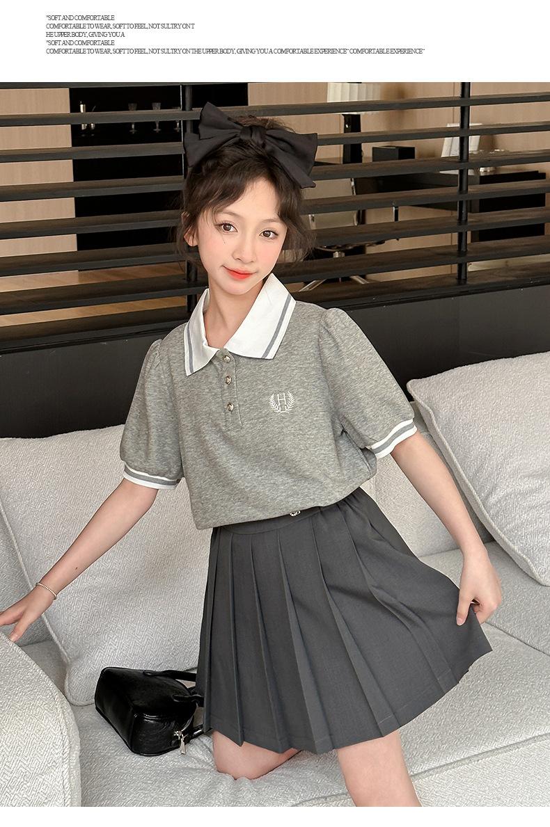 Gray [high quality polo collar short sleeve pleated skirt suit]