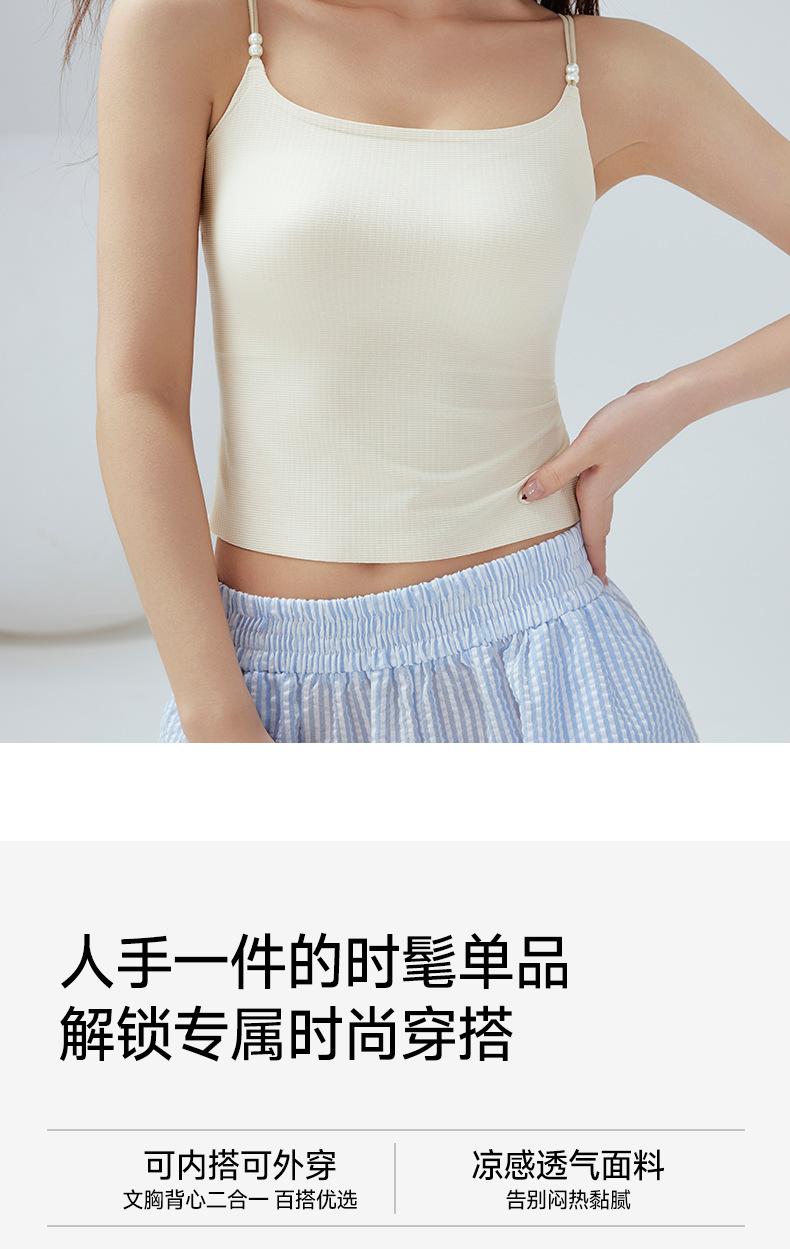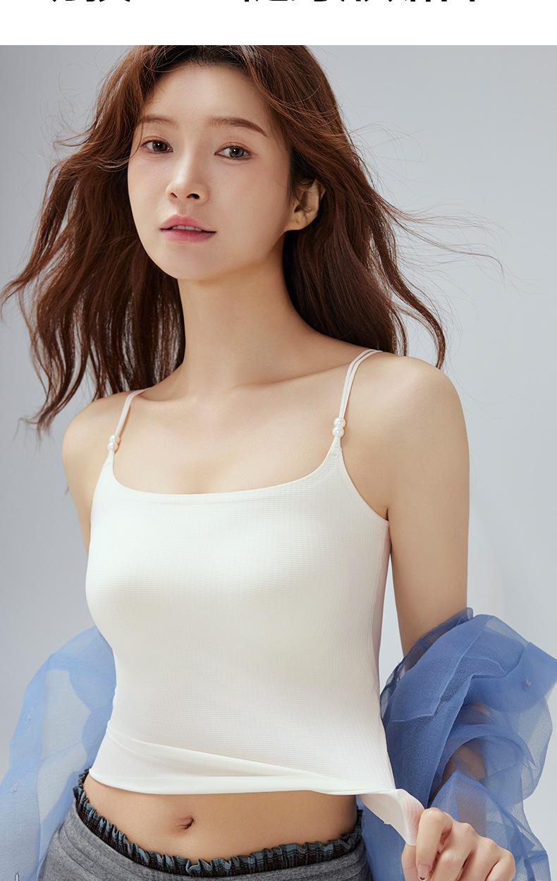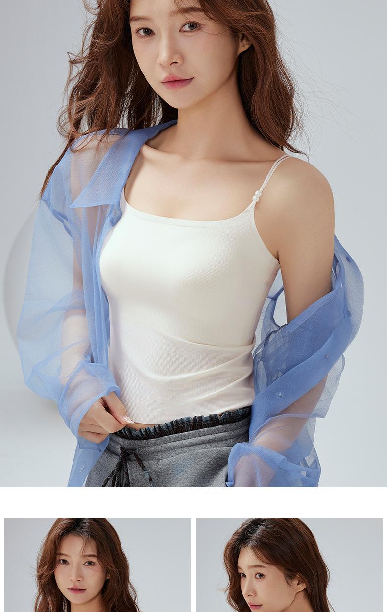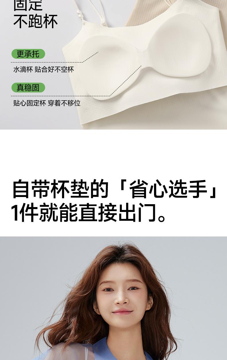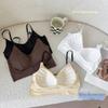Regata Fina de Verão Feminina Sem Aros, Respirável e com Costas Bonitas, Sutiã Cool de Cor Pura com Bojo Fixo