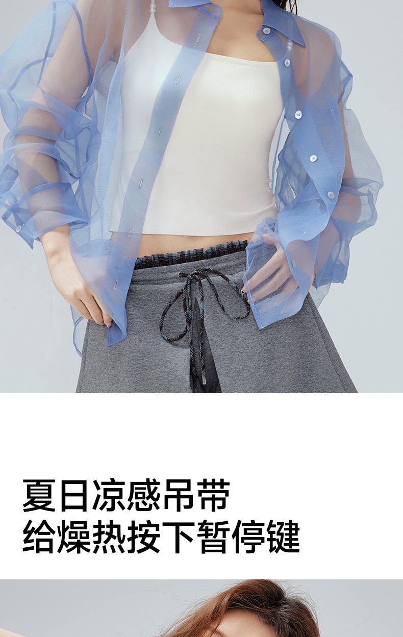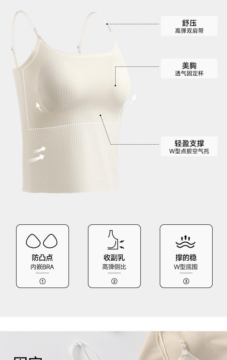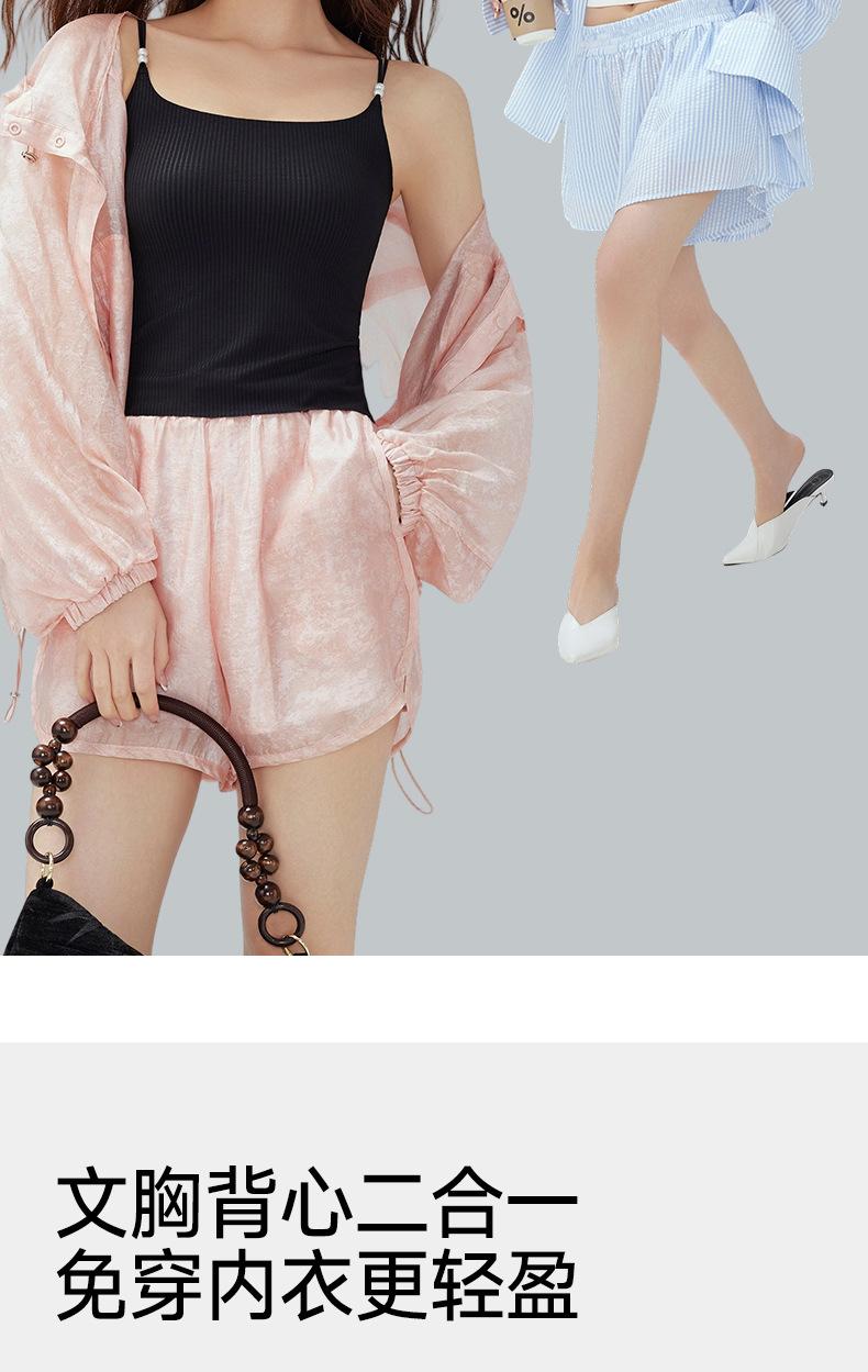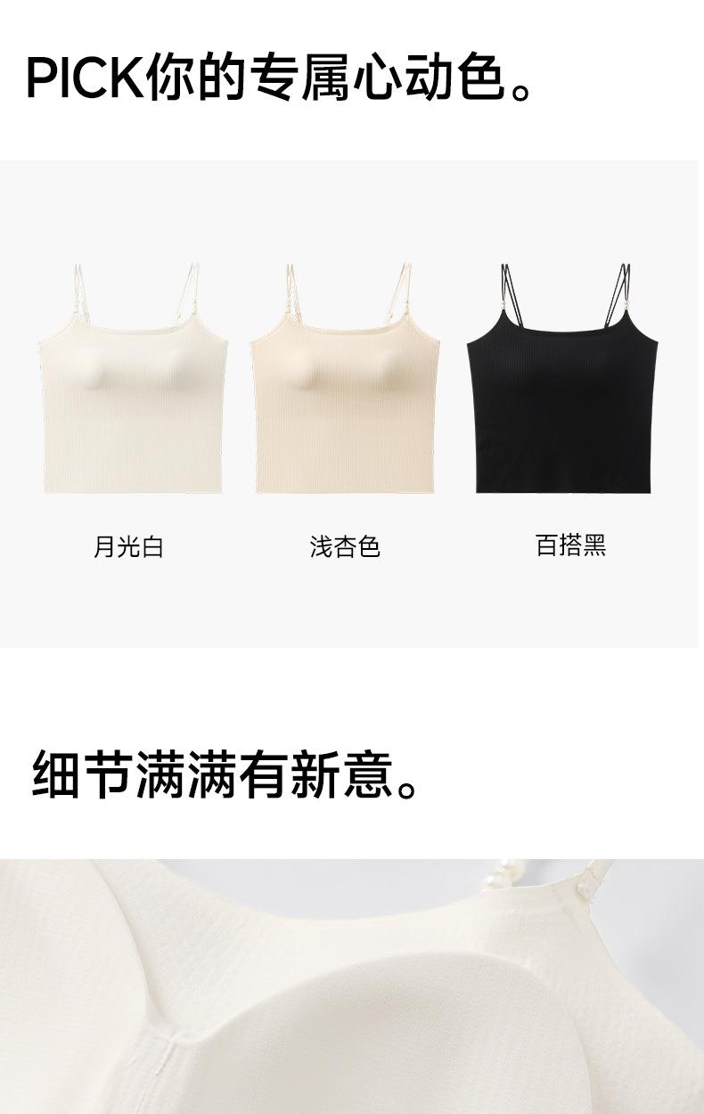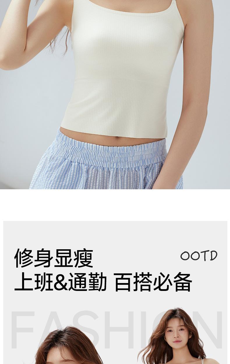 Regata Fina de Verão Feminina Sem Aros, Respirável e com Costas Bonitas, Sutiã Cool de Cor Pura com Bojo Fixo