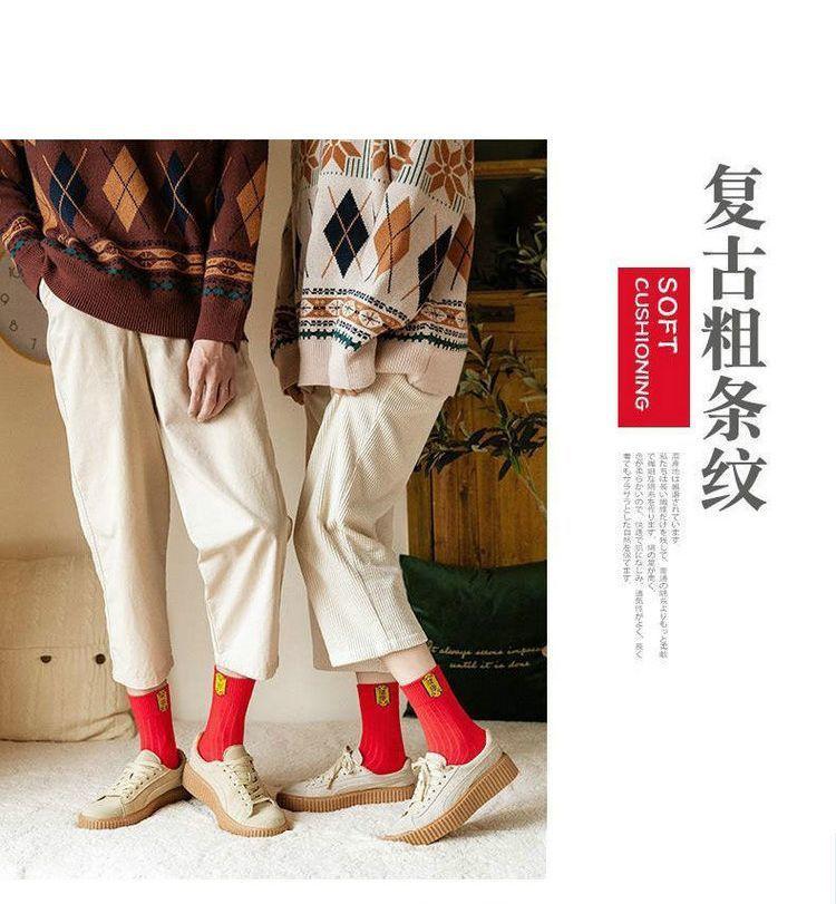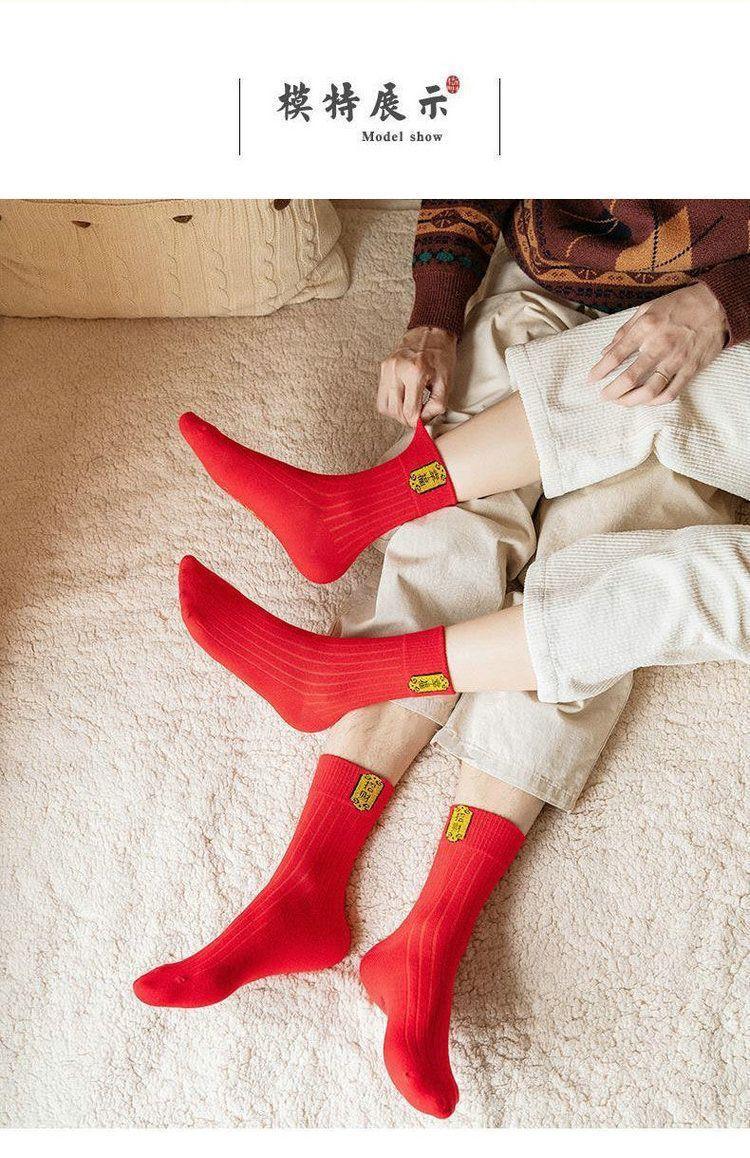 Meias Vermelhas Masculinas Femininas Ano Benming Meias Vermelhas Grandes Outono Inverno Meias Vermelhas Quentes de Meia Panturrilha Casamento Festivo Ano Novo Mudança de Sorte Meias de Casal