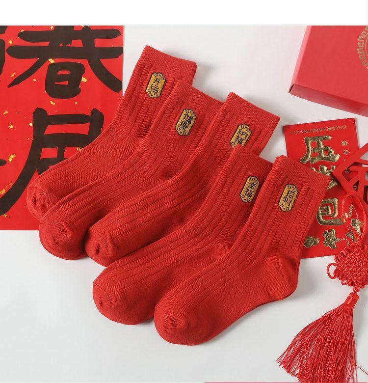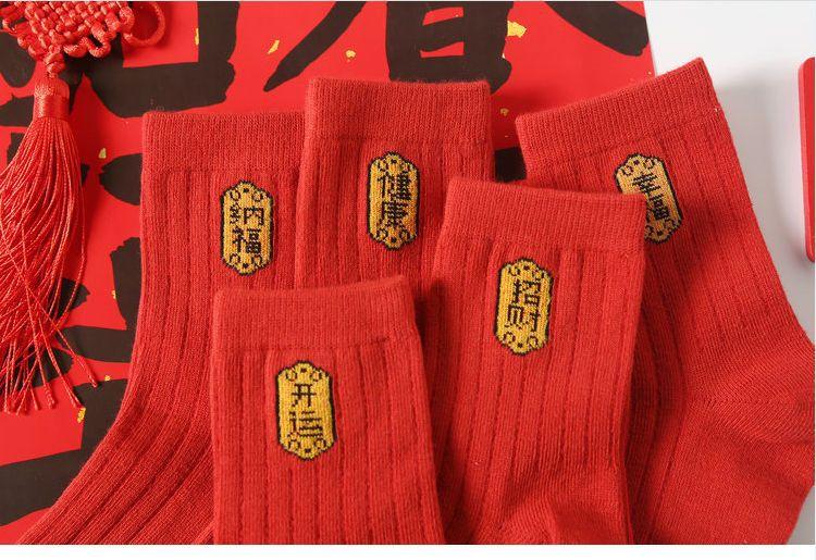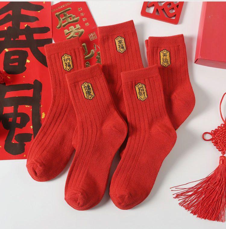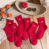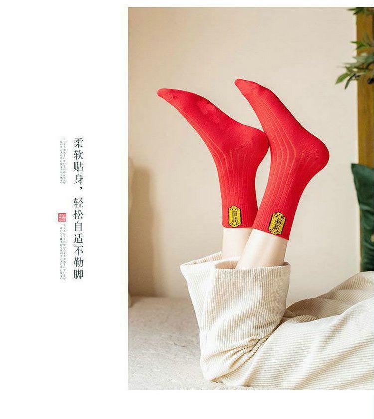 Meias Vermelhas para Homens e Mulheres Ano da Vida Meias Vermelhas Grandes Outono e Inverno Cano Médio Meias Vermelhas Quentes Casamento Festivo Ano Novo Transferência Meias para Amantes